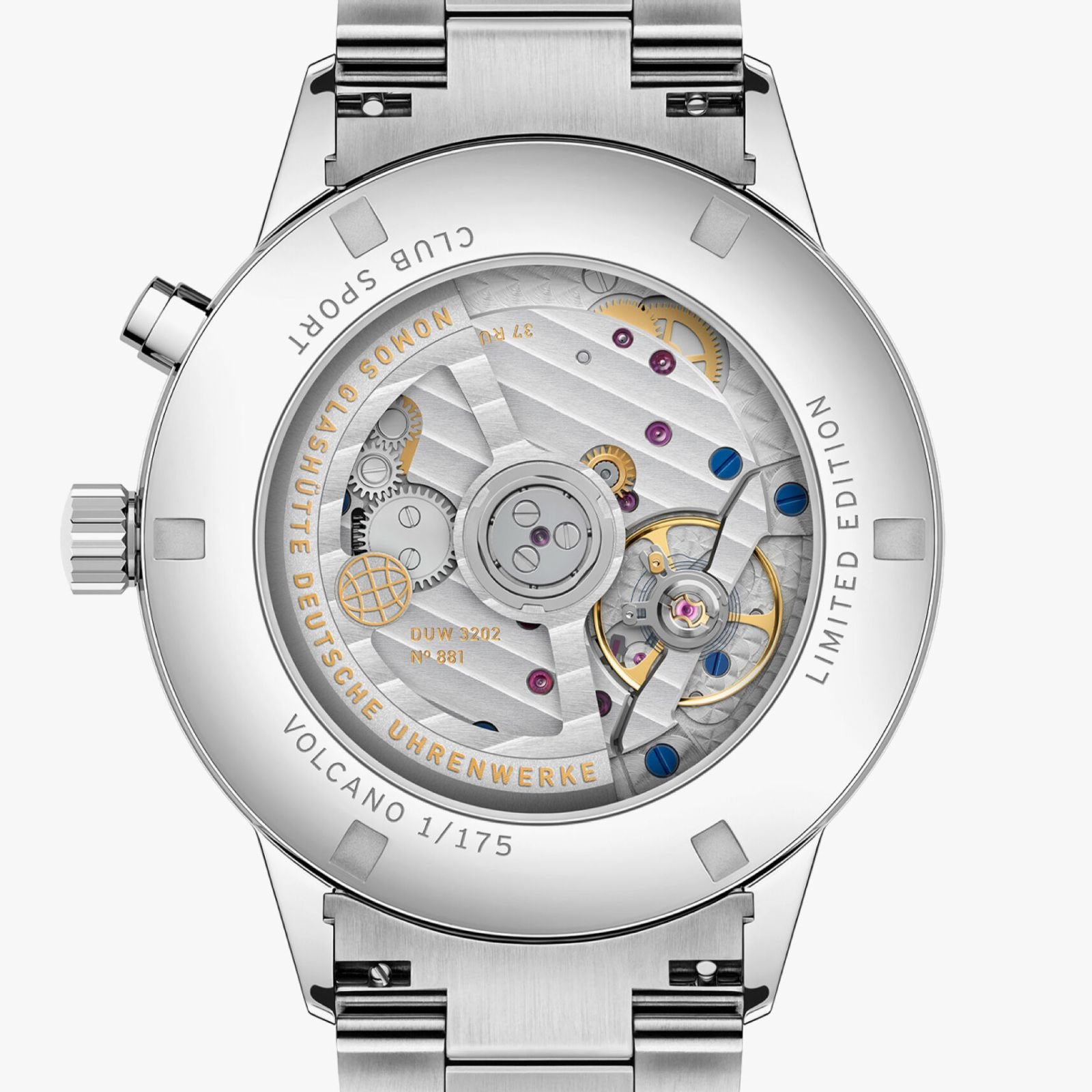 The design of this watch draws its inspiration from the deep anthracite and black of volcanic rock. Accents in blue, red, and silver represent the wealth of minerals contained in cooled lava. The power and splendor of nature transposed onto a dial. This worldtime watch with an automatic caliber is functional and sporty in equal measure. It presents all 24 time zones at a glance and has a 24-hour display for a second time zone. Volcano is limited to 175 pieces—an exclusive and very personal connection with the world.
