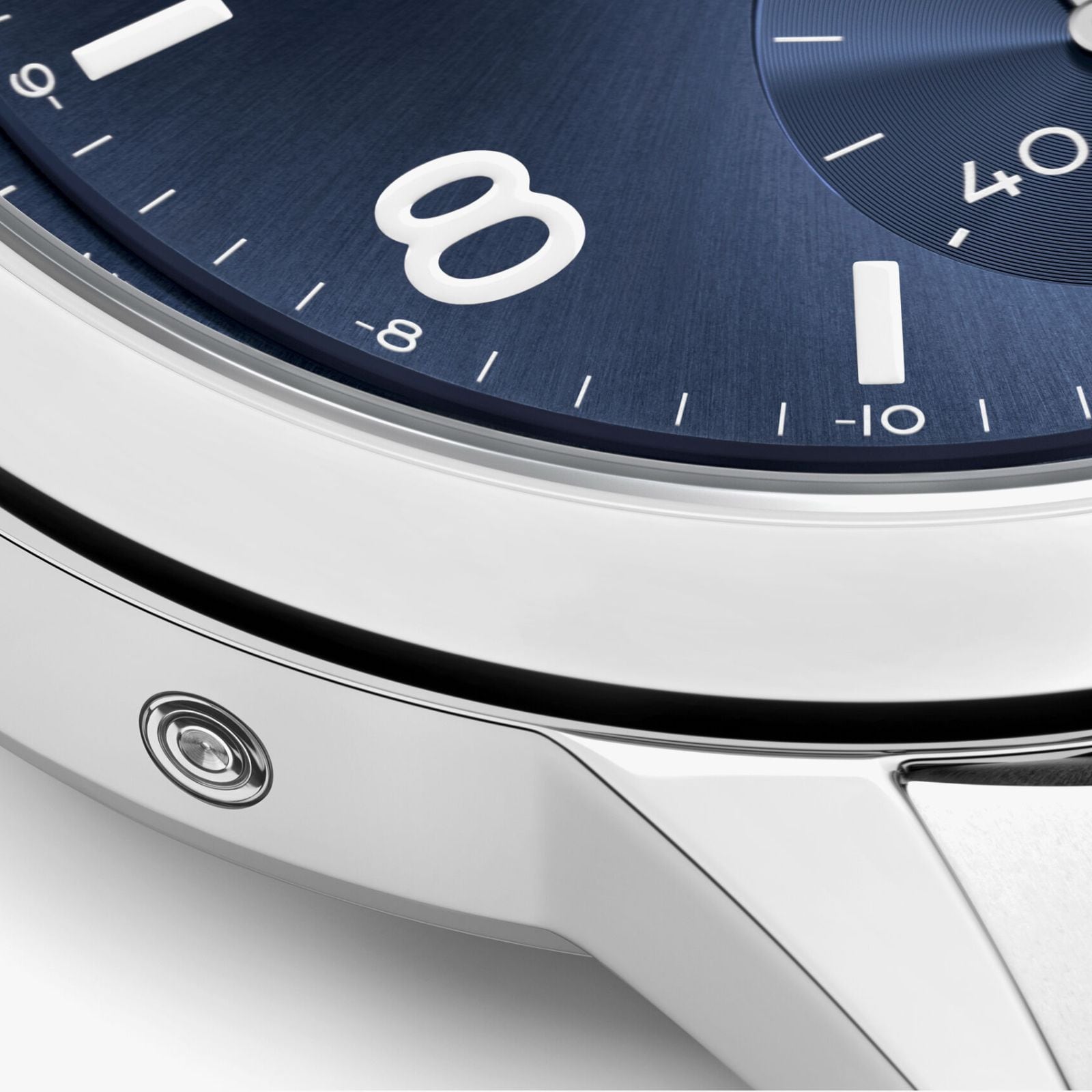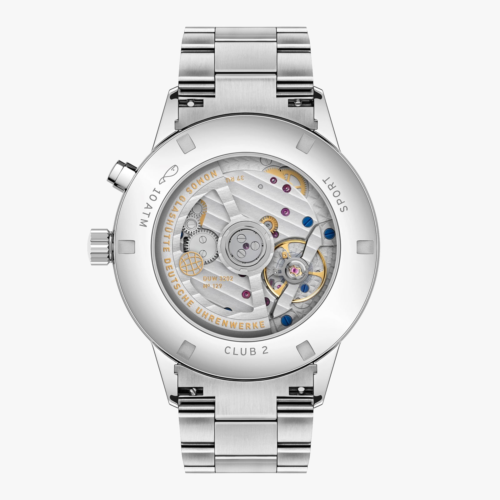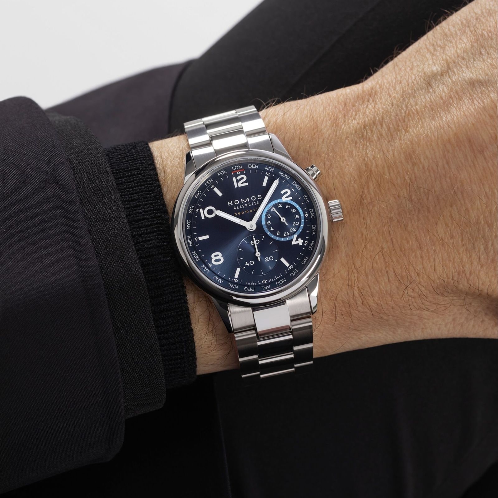 With this watch, you have the world on your wrist—a practical feature for use at home or when traveling. One of the world's thinnest worldtimers, Club Sport neomatik Worldtimer blue shines with its deep blue dial, suitable even for formal occasions. It is also a fully-fledged sports watch: water resistant to 10 atm, robust, and with a luminescent time display for low-light conditions. The worldtime mechanism is easy to read and simple to operate, powered by the innovative DUW 3202 caliber at work inside.