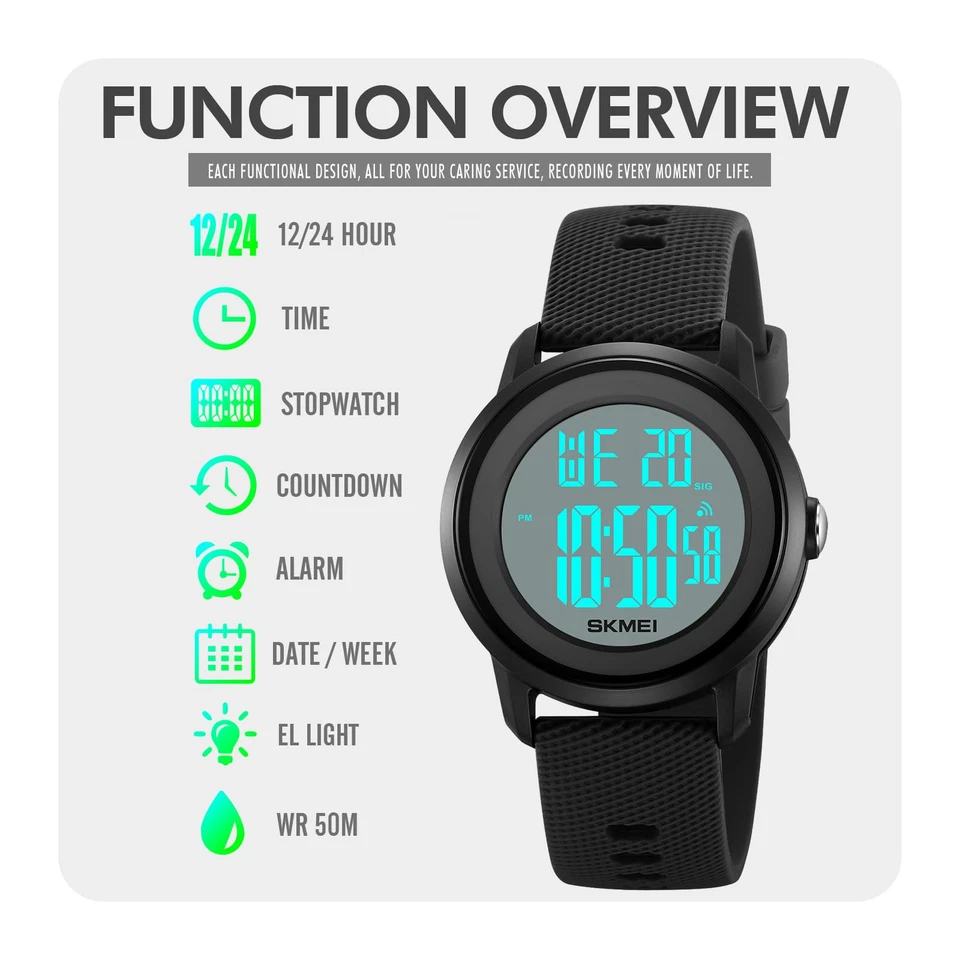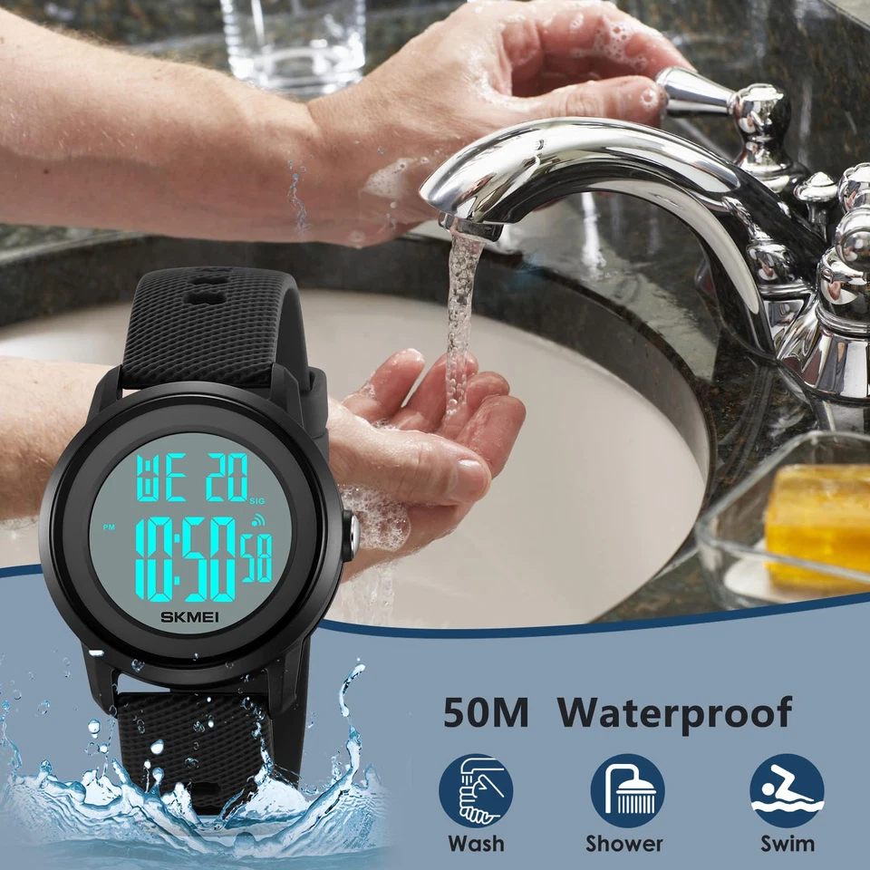 Digital Sports Watch for Women Men Waterproof Stopwatch Rubber Strap Wristwat...