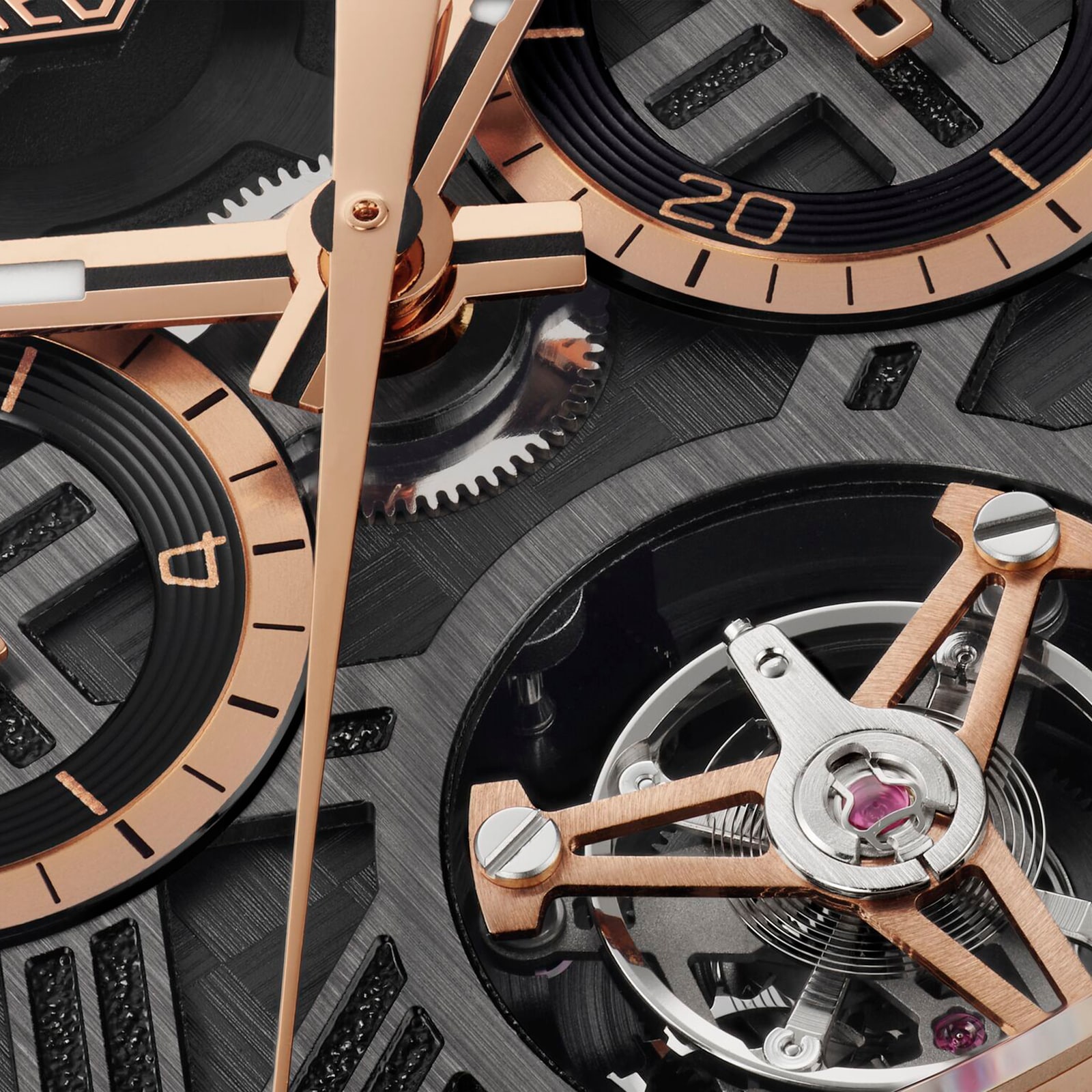 Coupling an 18K 5N solid rose gold case with a black DLC-coated Grade 2 titanium sapphire case back, this TAG Heuer Carrera encapsulates luxury, sports-inspired watchmaking. Its skeleton dial is adorned with superb contrasting 18K 5N rose gold details. At its core, the COSC-certified TH20-09 tourbillon movement symbolizes exceptional precision.
