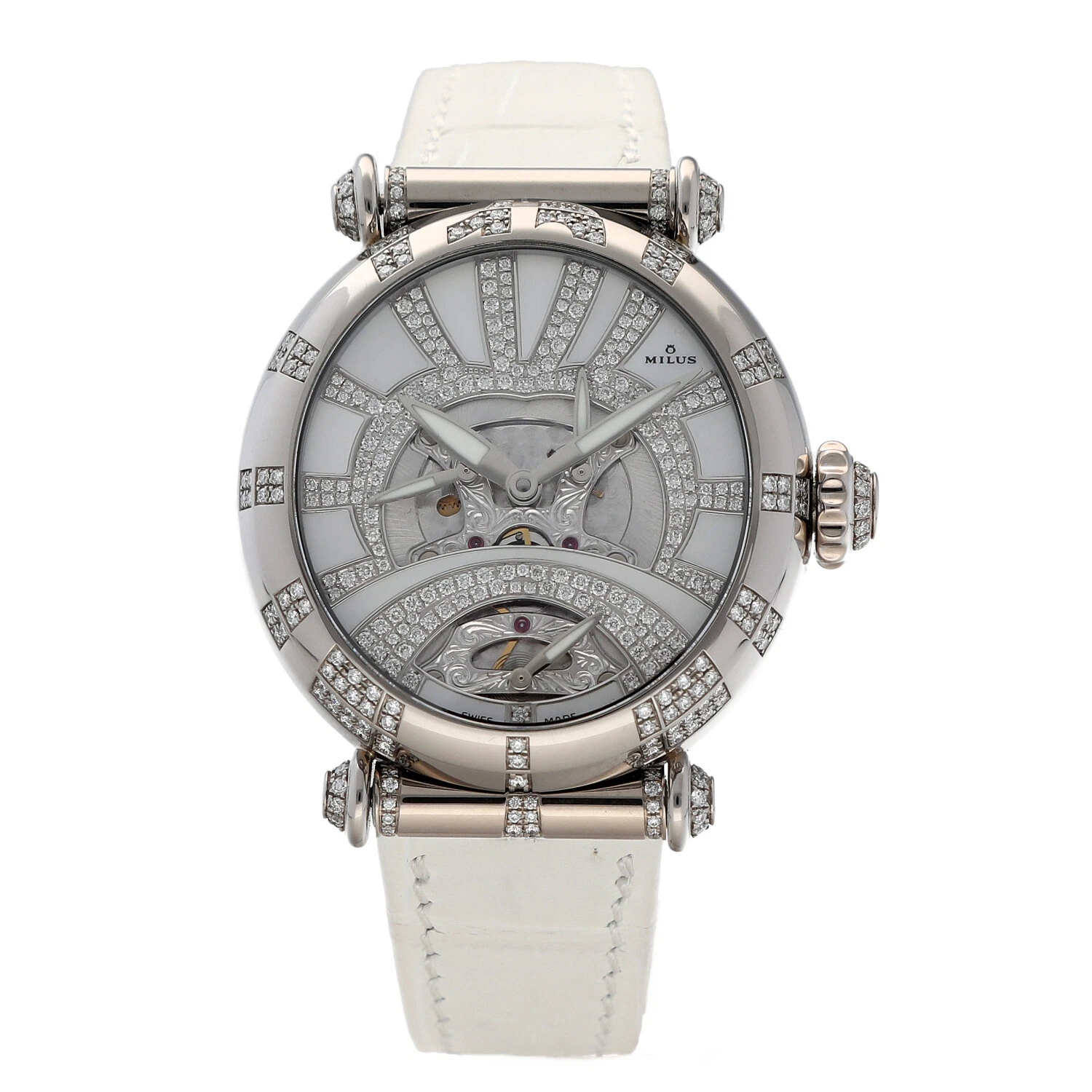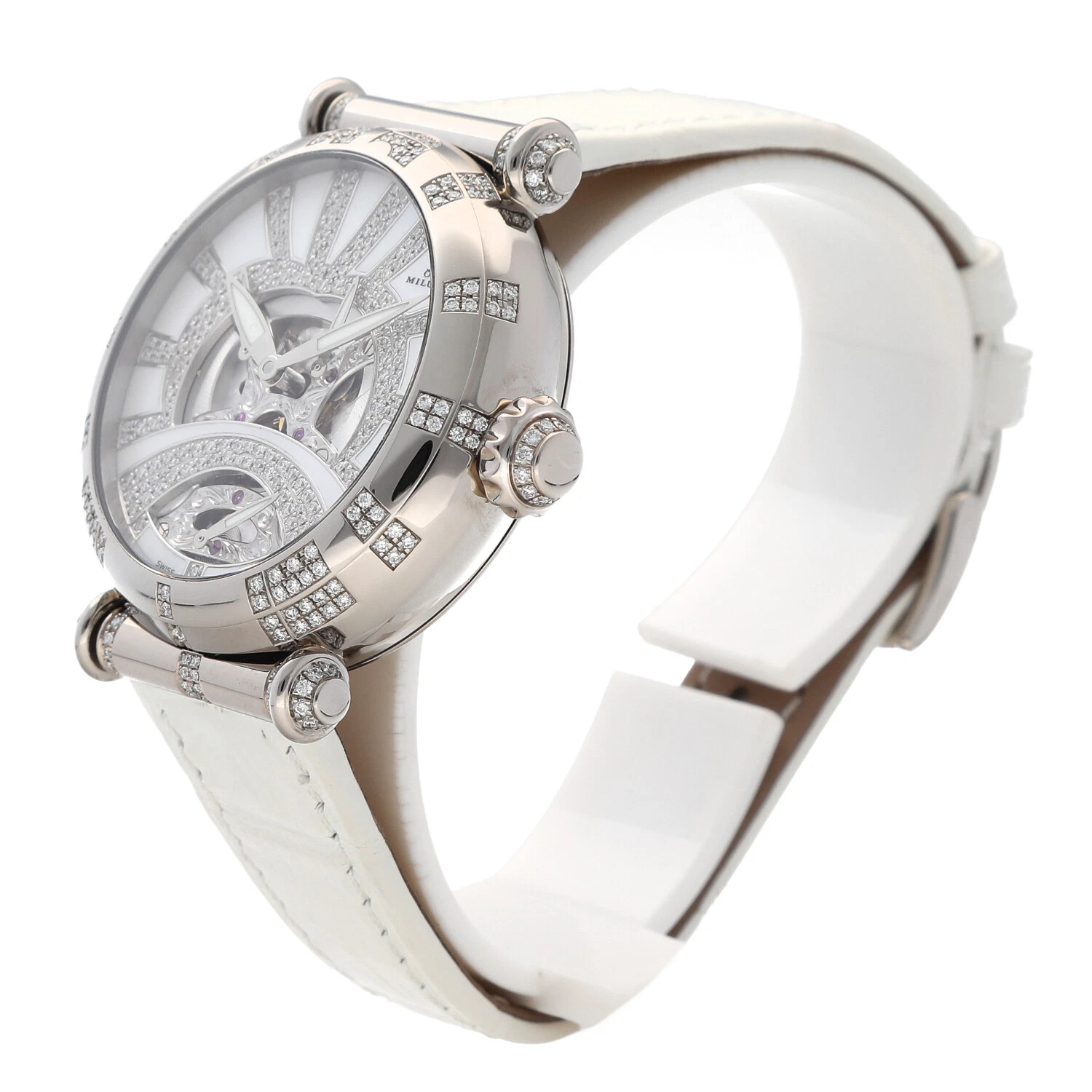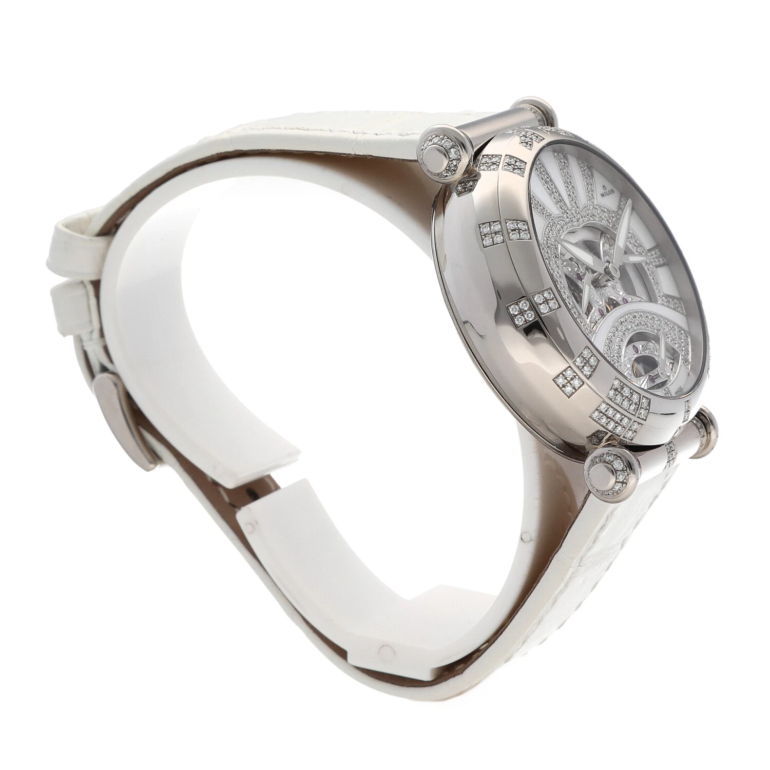Milus Merea MER309 18k White Gold Diamonds White Leather Automatic Women's Watch