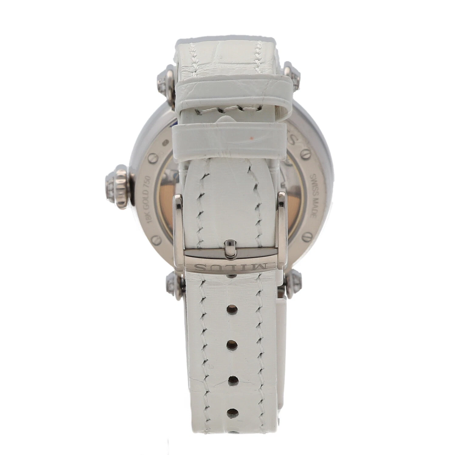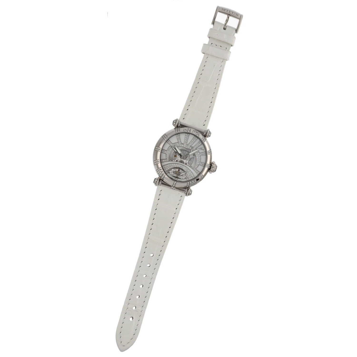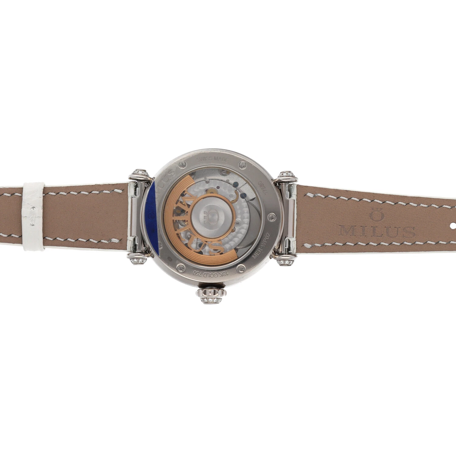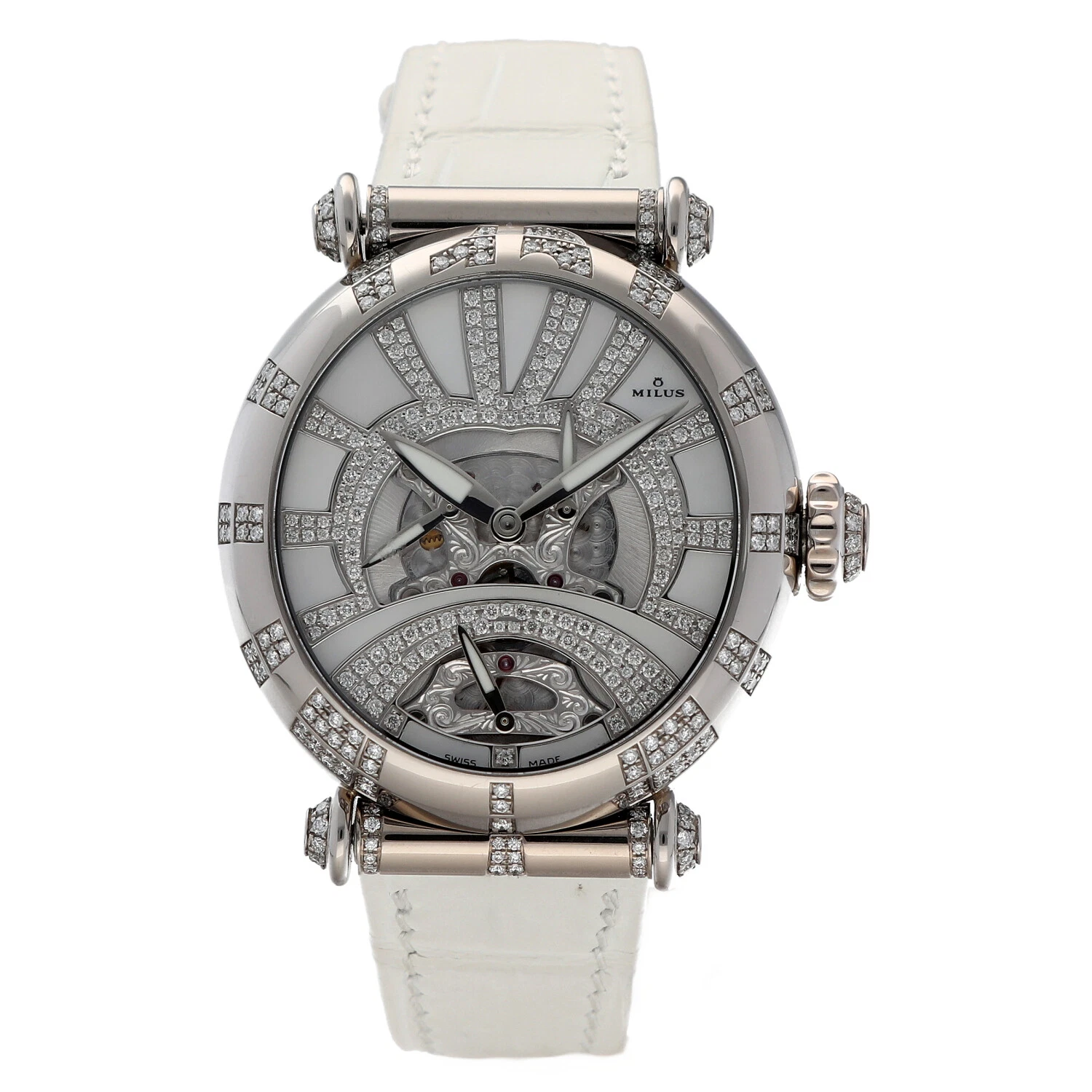 Milus Merea MER309 18k White Gold Diamonds White Leather Automatic Women's Watch