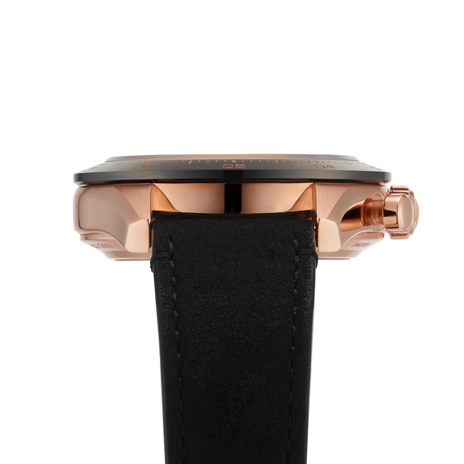 This is a new and unworn watch Bridging the past and present, the Chronomaster collection embodies the brands mastery of automatic, high frequency chronograph movement and the unique design language established over the course of 50 years. The Chronomaster Sport brings together elements of Zeniths most iconic models, including tri-colour dials, pump-style pushers, and a black ceramic bezel, all housed within a 41mm case. Driven by the El Primero 3600, this high performance sporting timepiece is accurate to 1/10th of a second. Housed within an 18K rose gold case and framed by a black ceramic bezel, the white dial makes a bold statement with three counters in varying metallic tones - a 60-minute counter at 6 oclock, 60-second counter at 3 oclock, and small seconds counter at 9 oclock. A black leather strap completes the active aesthetic, while an extended, 60-hour power reserve ensures flawless, uninterrupted performance.
