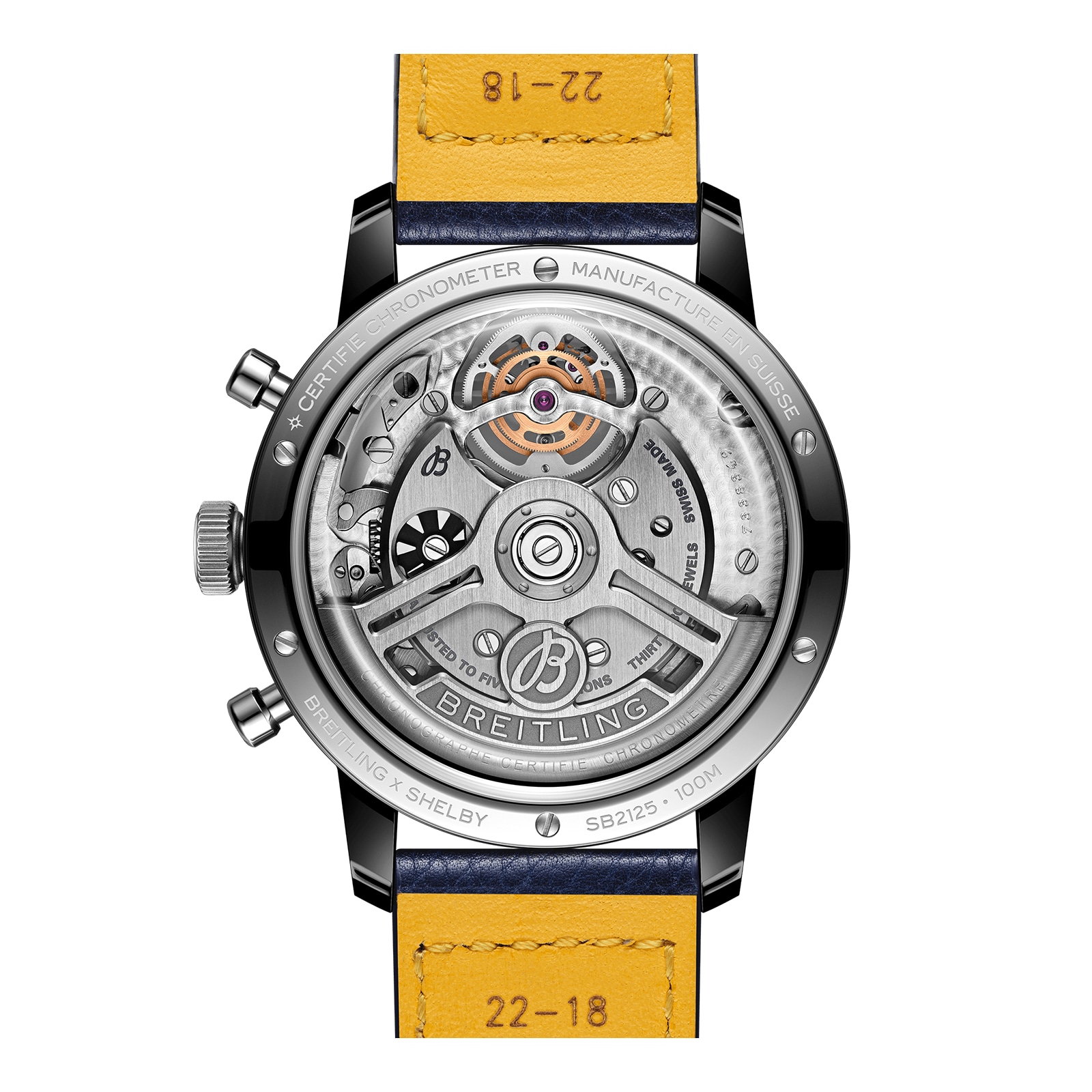 A distinctive celebration of freedom and design, the Top Time collection pays homage to iconic sports cars from the 1960s. Made for performance on the road and track, this collection was designed with young and active professionals in mind. In the early 1960s, Le Mans winner Carroll Shelby imagined a car that combined a small, light British-style chassis, with a strong, reliable, American small-block engine - the best of both worlds. The resulting 1962 Cobra was an instant success amongst sportscar fans and racers alike and today remains cherished by collectors. This Top Time Shelby Cobra model features the colours of the classic car, as well as a perforated leather racing strap, speed-measuring tachymeter scale, and 'squircle' sub-dials which provide a nod to the gauges on vintage dashboards. This striking model pairs a 44mm black ceramic case with a perforated, navy leather racing strap. p> The racing blue dial features a tachymeter scale to measure speed, 'squircle' sub-dials inspired by the gauges on vintage dashboards, and slender baton hour markers. Under the bonnet, the exceptional Chronograph Tourbillon B21 movement from La Joux-Perret provides power, precision, and a 55-hour power reserve.