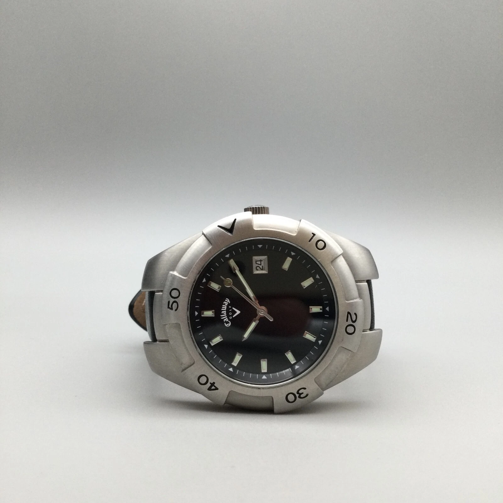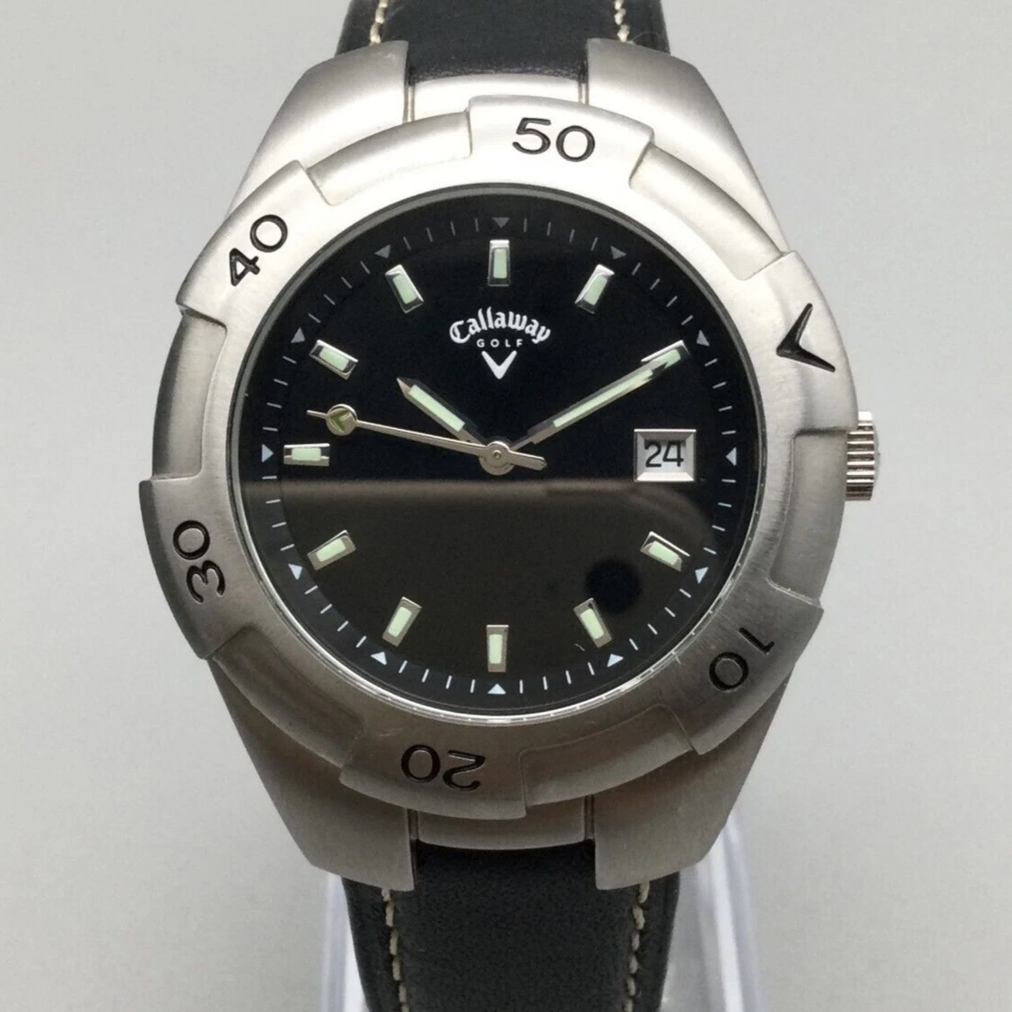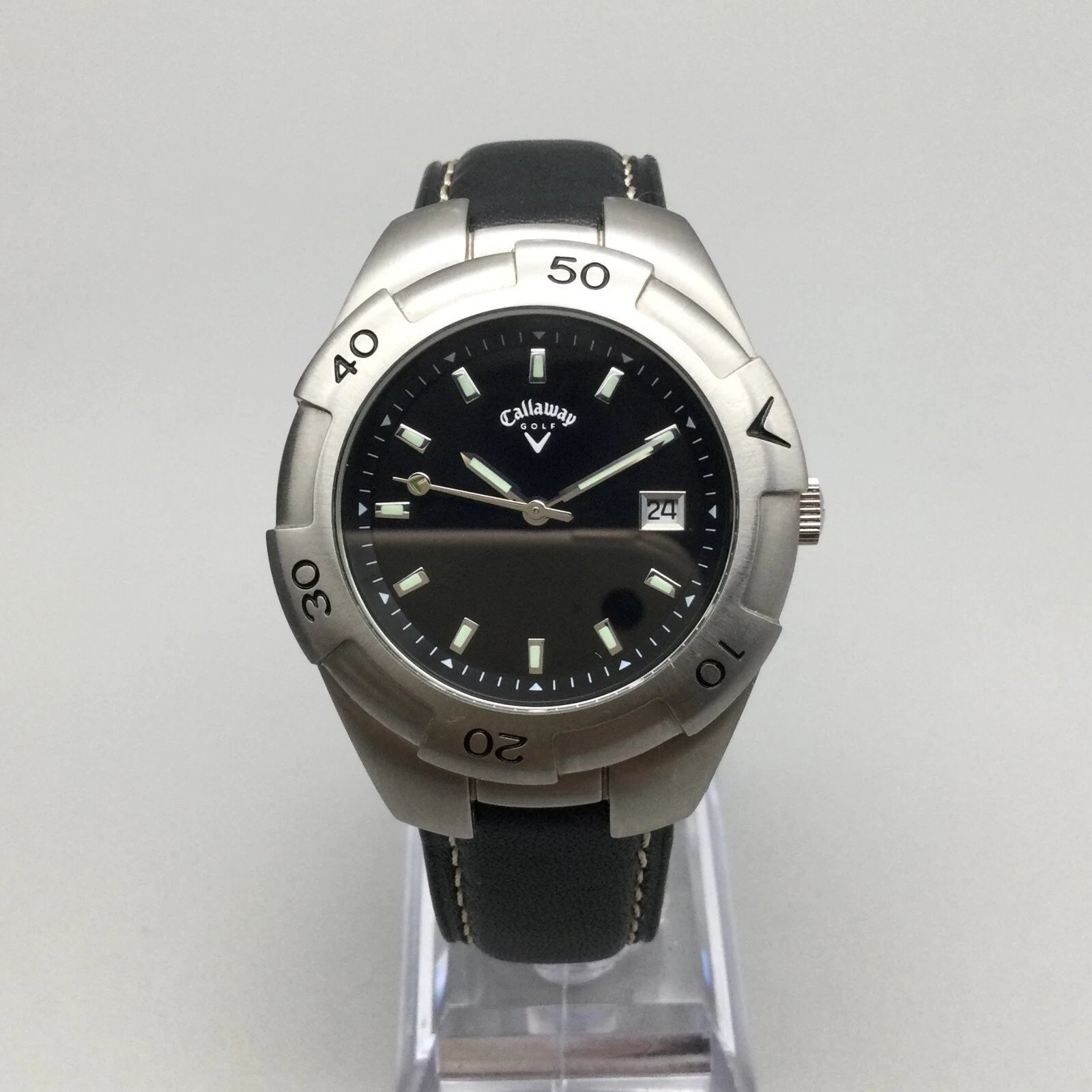 Callaway Golf Watch Men 39mm Silver Tone Black Dial Date CY2002 New Battery