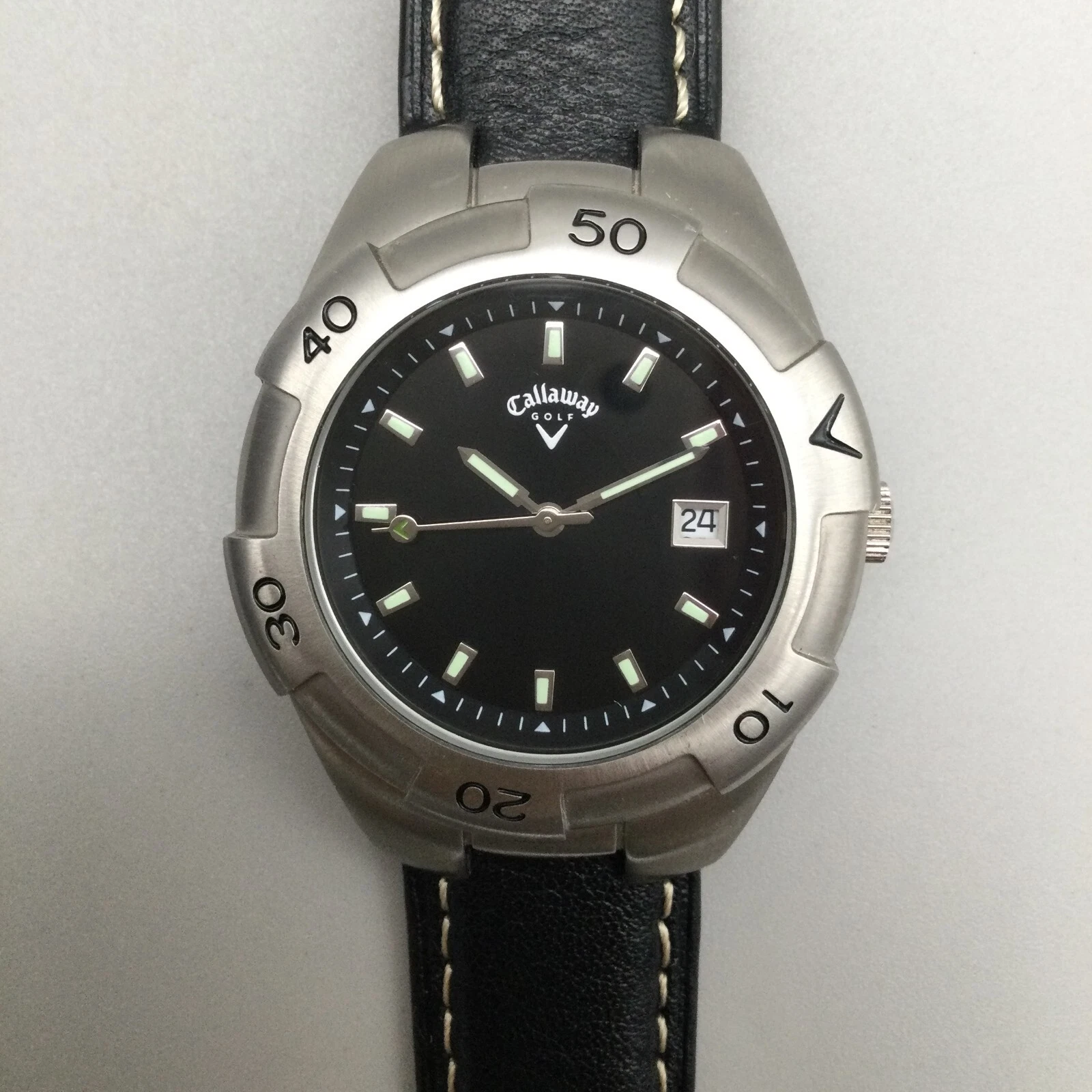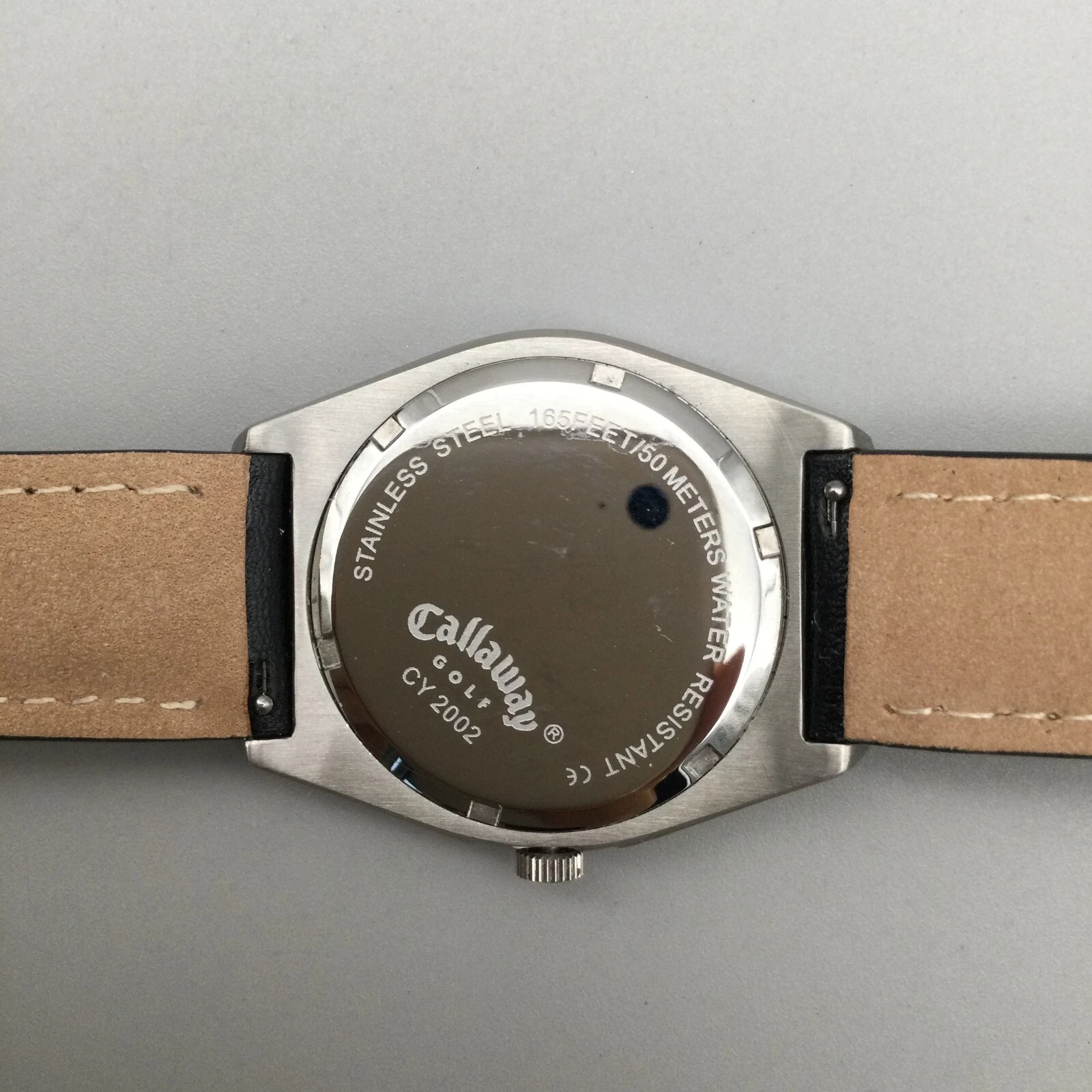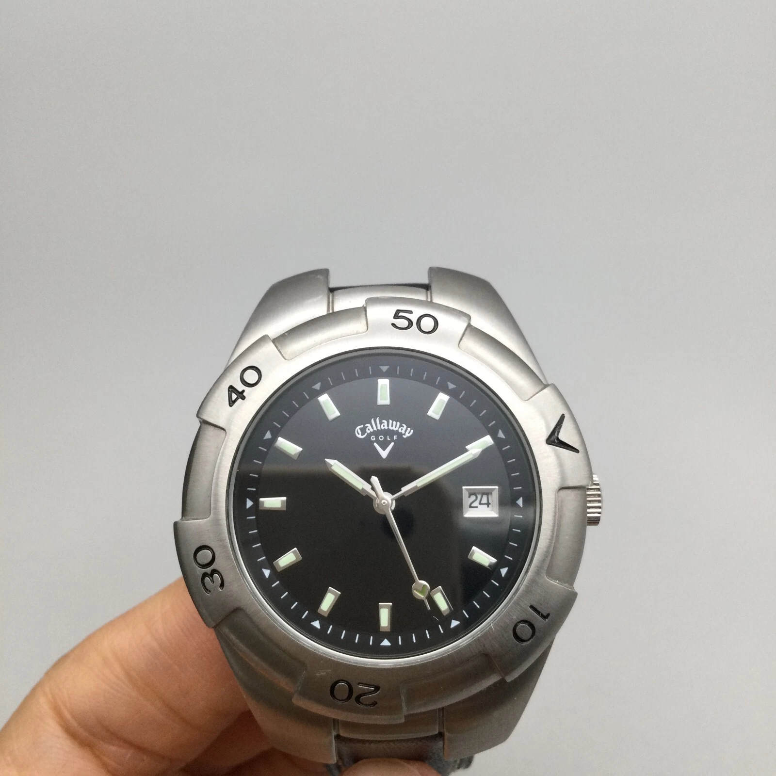 Callaway Golf Watch Men 39mm Silver Tone Black Dial Date CY2002 New Battery