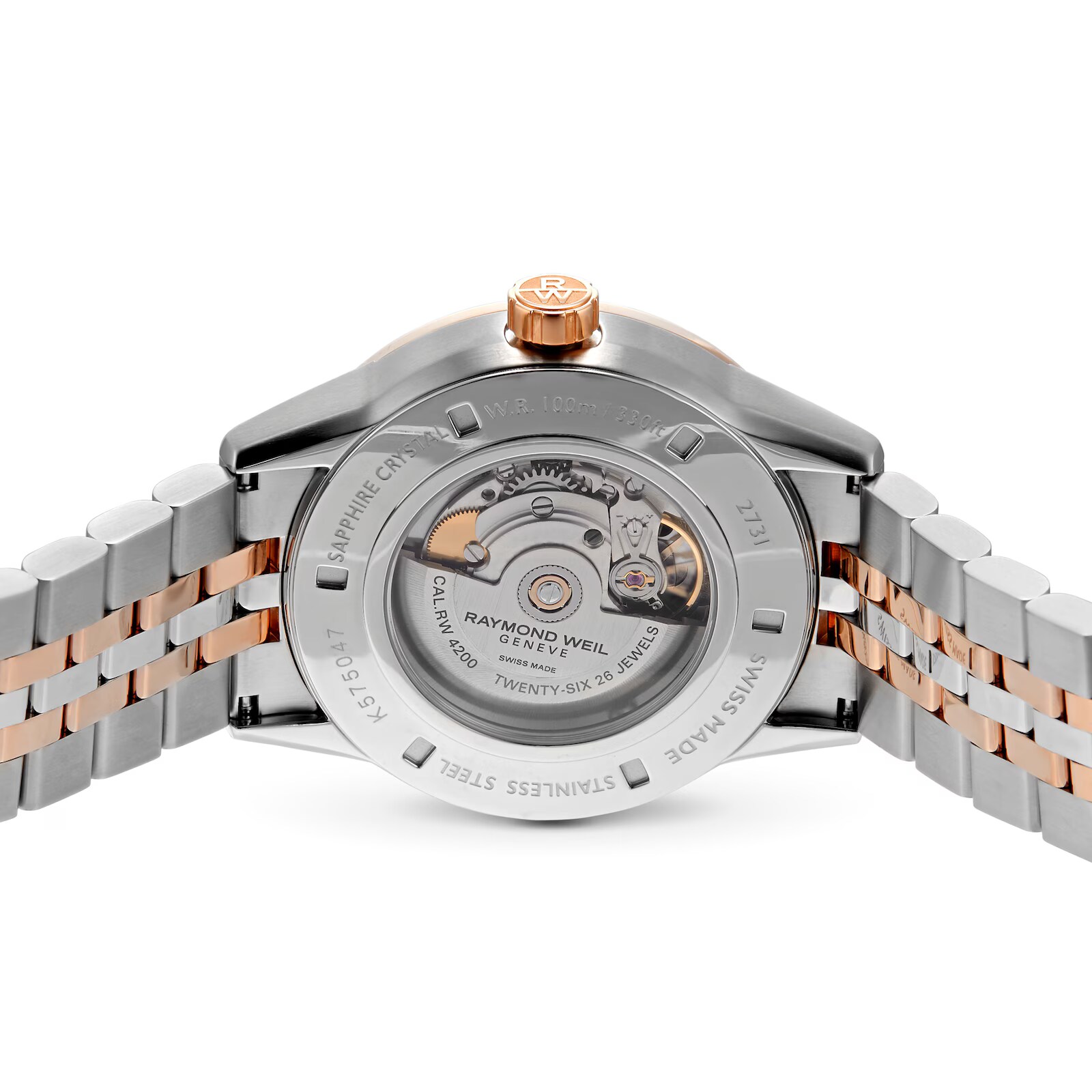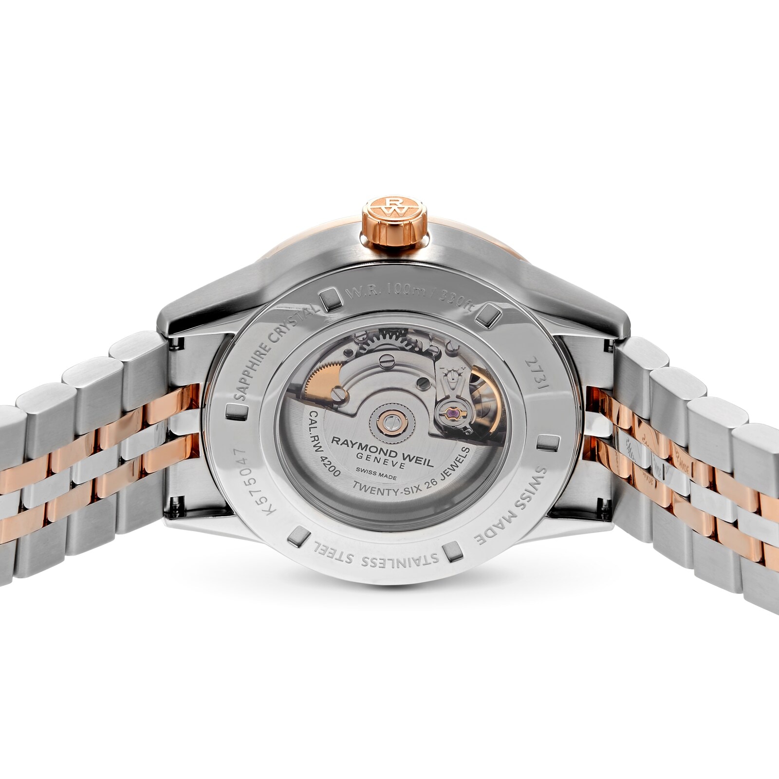This is new and unworn Watch. This Raymond Weil Freelancer watch opens it's heart to you. The beauty of the dial and visible balance wheel is highlighted by the rose gold hands and indexes. This Freelancer will impress elegant women who love to assert their style.