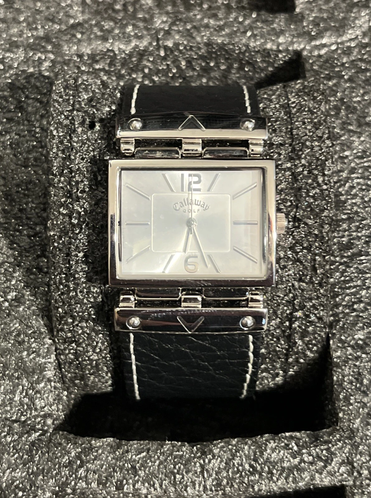 Callaway Golf Women FMDCY207 Silver Dial Black Leather Quartz Watch Rare Unique
