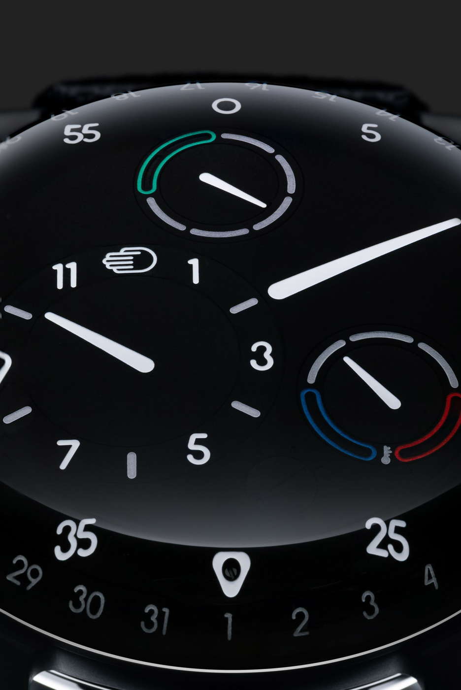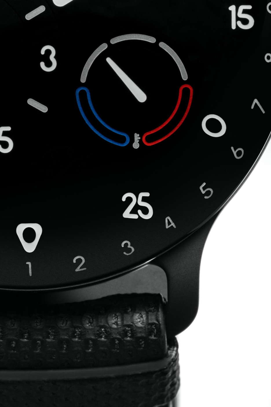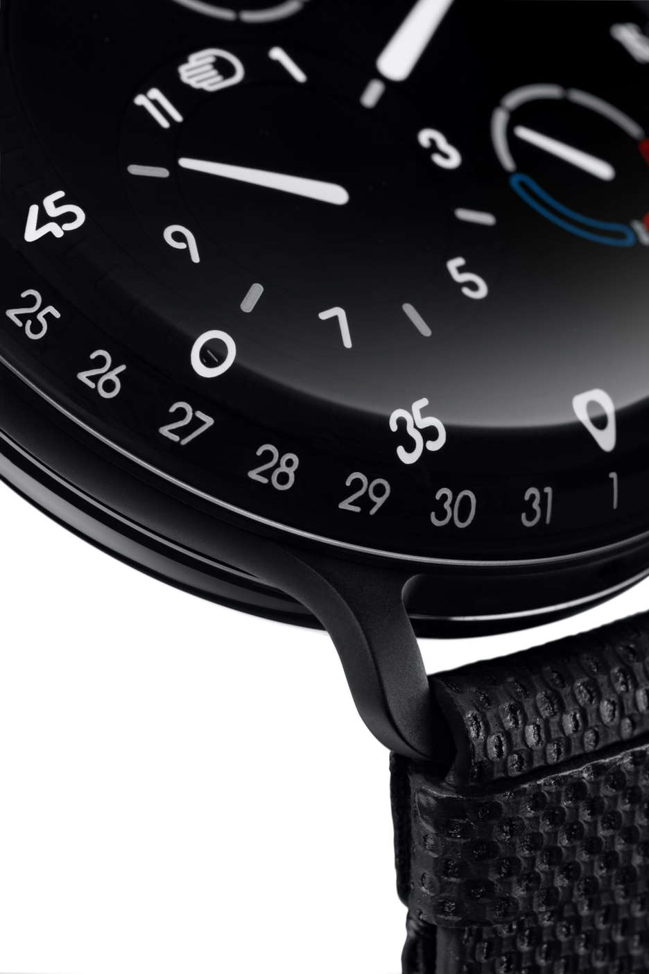 Meet the TYPE 3 BB2, honored with the ‘Best of the Best’ distinction at the 2024 Red Dot Design Award, often considered the Oscars of product design. This edition enhances the hyper-minimal design of the TYPE 3 with a striking black finish, where the dark hue and oil-filled chamber render the space between the discs nearly invisible, creating a mesmerizing effect when the dial moves. Benoît Mintiens, Founder of Ressence, describes the nearly pitch-black TYPE 3 BB2 as showcasing the magic of flush rotating discs, which act like a mechanical screen, tricking the viewer’s senses. The watch features an edge-to-edge sapphire crystal, resembling a sleek dark pebble, and a matt black DLC-coated titanium case that contrasts subtly with the glossy sapphire. Building on the limited 2022 TYPE 3 BBB’s reduced color palette, the TYPE 3 BB2 primarily uses white and light grey inscriptions with touches of primary colors on weekends and oil temperature indicators. Originally launched in 2013 as the first oil-filled mechanical watch, the TYPE 3 offers exceptional readability from any angle by eliminating light refraction. It also remains easily readable in low light, thanks to Grade A Super-LumiNova®. To maintain performance despite temperature fluctuations, Ressence developed the Bellows System, a self-regulating pressure-balance mechanism graphically represented by a temperature gauge on the dial. The TYPE 3 BB2 joins the TYPE 3 Black, White, and Eucalyptus Green in Ressence’s innovative lineup.