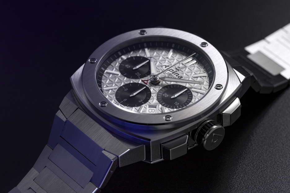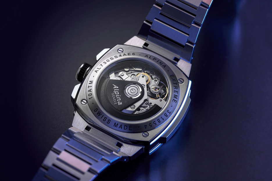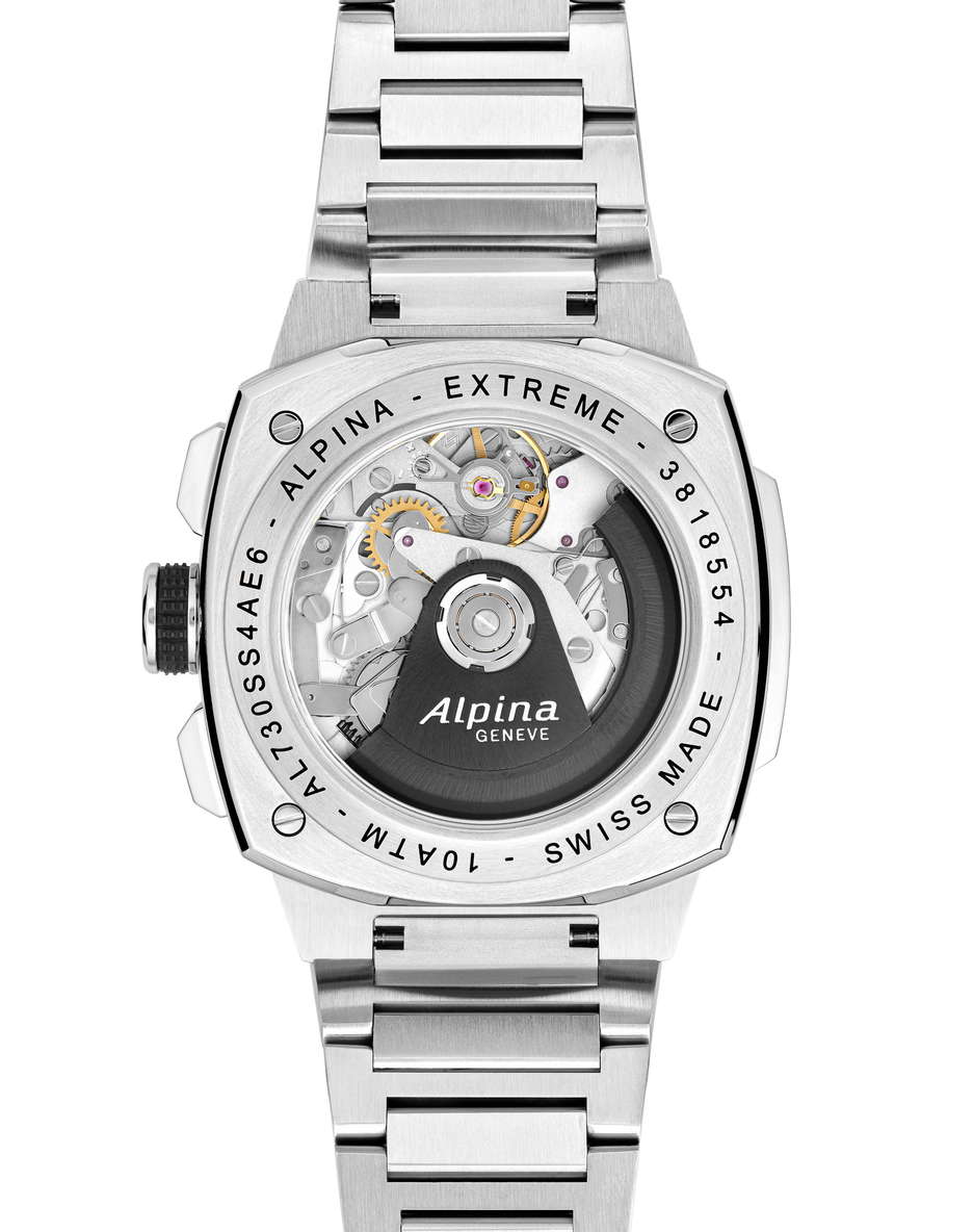 The Alpiner Extreme Chronograph Automatic makes a striking return to Alpina’s collection, marking the brand’s expansion in Manhattan with Citizen’s inaugural multi-brand store on Fifth Avenue. This watch, in a bold 41-millimeter stainless steel case, offers a modern twist on a classic design, available in both blue and grey dials. It features a trio of sub-dials and a date window, all matched with a steel bracelet that seamlessly blends with the bezel and case. Alpina has outdone itself with the latest addition to the Alpiner Extreme Automatic series. This chronograph is a testament to Alpina’s legacy since 1883, embodying a no-compromise attitude and a dedication to functionality. Its design draws from the ‘cushion’ format, offering a robust presence on the wrist. The dial features an easy-to-read layout with luminous coatings for enhanced visibility and a distinctive triangular pattern. Underneath the surface, the AL-730 automatic calibre powers the watch, visible through a sapphire crystal case back and with a generous 62-hour power reserve. In sum, this Alpiner Extreme Chronograph Automatic is a testament to Alpina’s rich heritage and craftsmanship, designed for the adventurer in every wearer. It is both water-resistant and robust, a true timepiece that’s ready for any challenge.