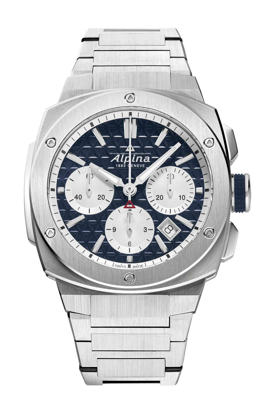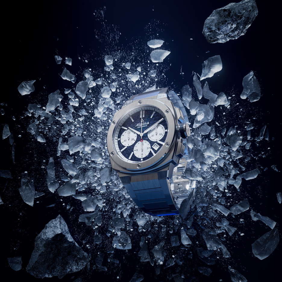 The Alpiner Extreme Chronograph Automatic makes a striking return to Alpina’s collection, marking the brand’s expansion in Manhattan with Citizen’s inaugural multi-brand store on Fifth Avenue. This watch, in a bold 41-millimeter stainless steel case, offers a modern twist on a classic design, available in both blue and grey dials. It features a trio of sub-dials and a date window, all matched with a steel bracelet that seamlessly blends with the bezel and case. Alpina has outdone itself with the latest addition to the Alpiner Extreme Automatic series. This chronograph is a testament to Alpina’s legacy since 1883, embodying a no-compromise attitude and a dedication to functionality. Its design draws from the ‘cushion’ format, offering a robust presence on the wrist. The dial features an easy-to-read layout with luminous coatings for enhanced visibility and a distinctive triangular pattern. Underneath the surface, the AL-730 automatic calibre powers the watch, visible through a sapphire crystal case back and with a generous 62-hour power reserve. In sum, this Alpiner Extreme Chronograph Automatic is a testament to Alpina’s rich heritage and craftsmanship, designed for the adventurer in every wearer. It is both water-resistant and robust, a true timepiece that’s ready for any challenge.