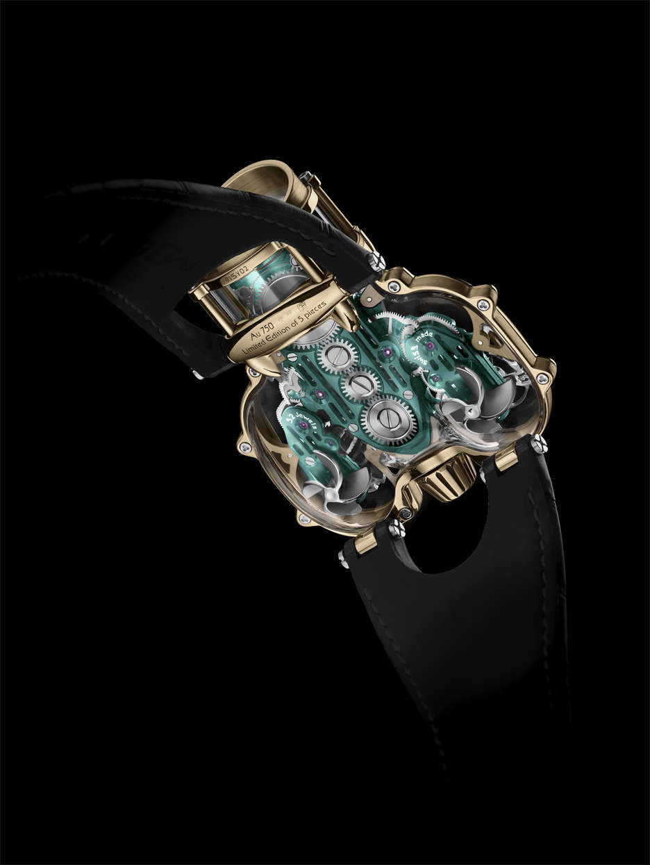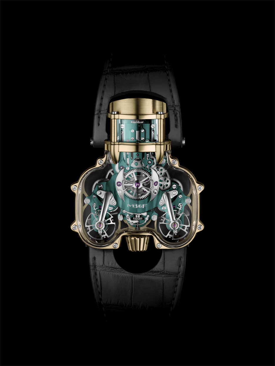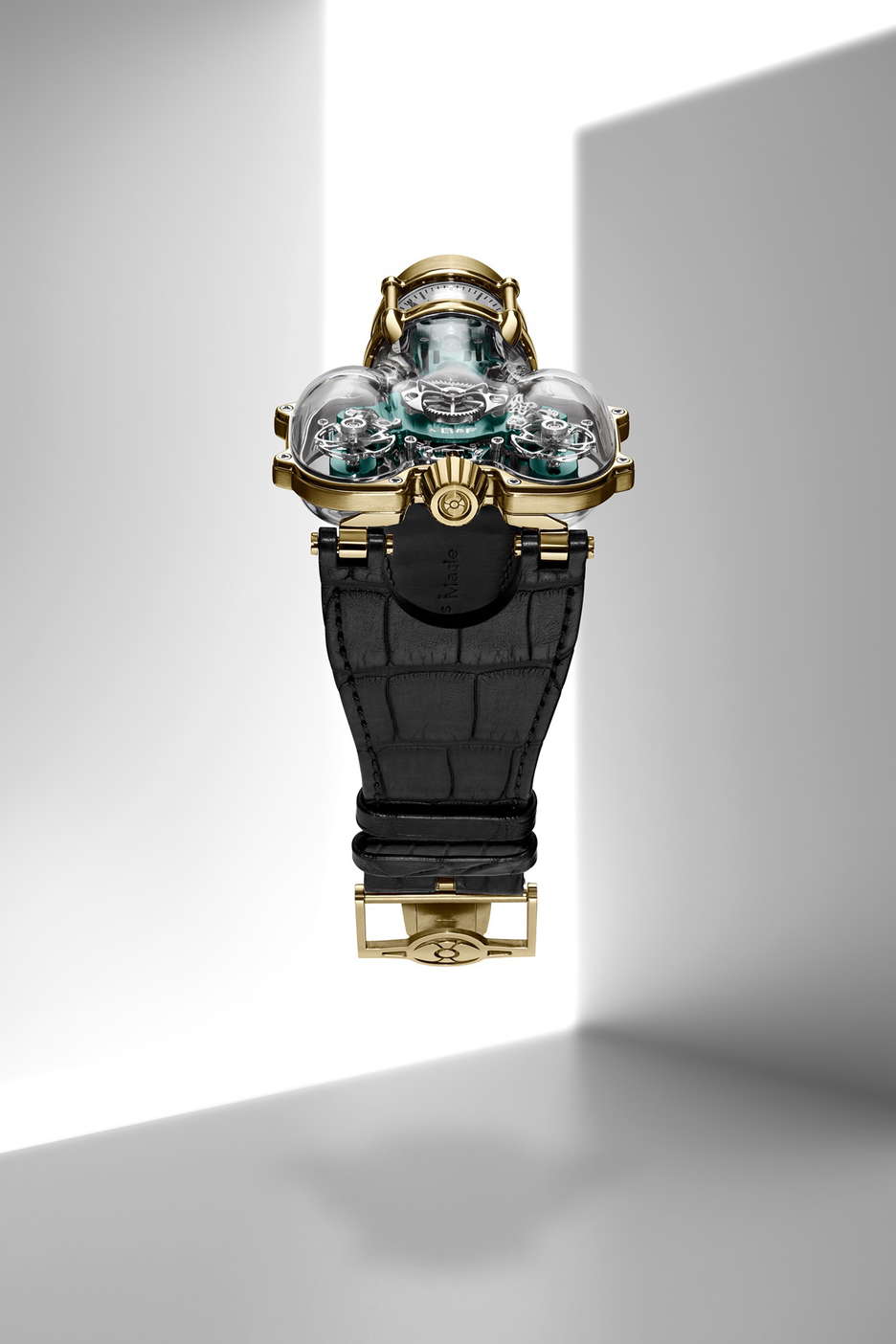 MB&F HM9-SV Yellow Gold Green 57 x 47mm-Sapphire, Yellow Gold-Manual Winding