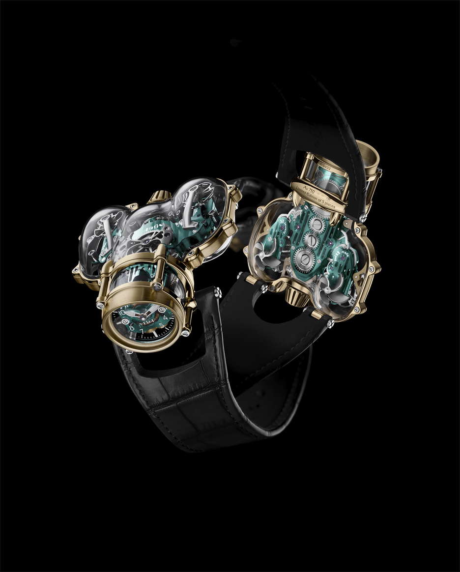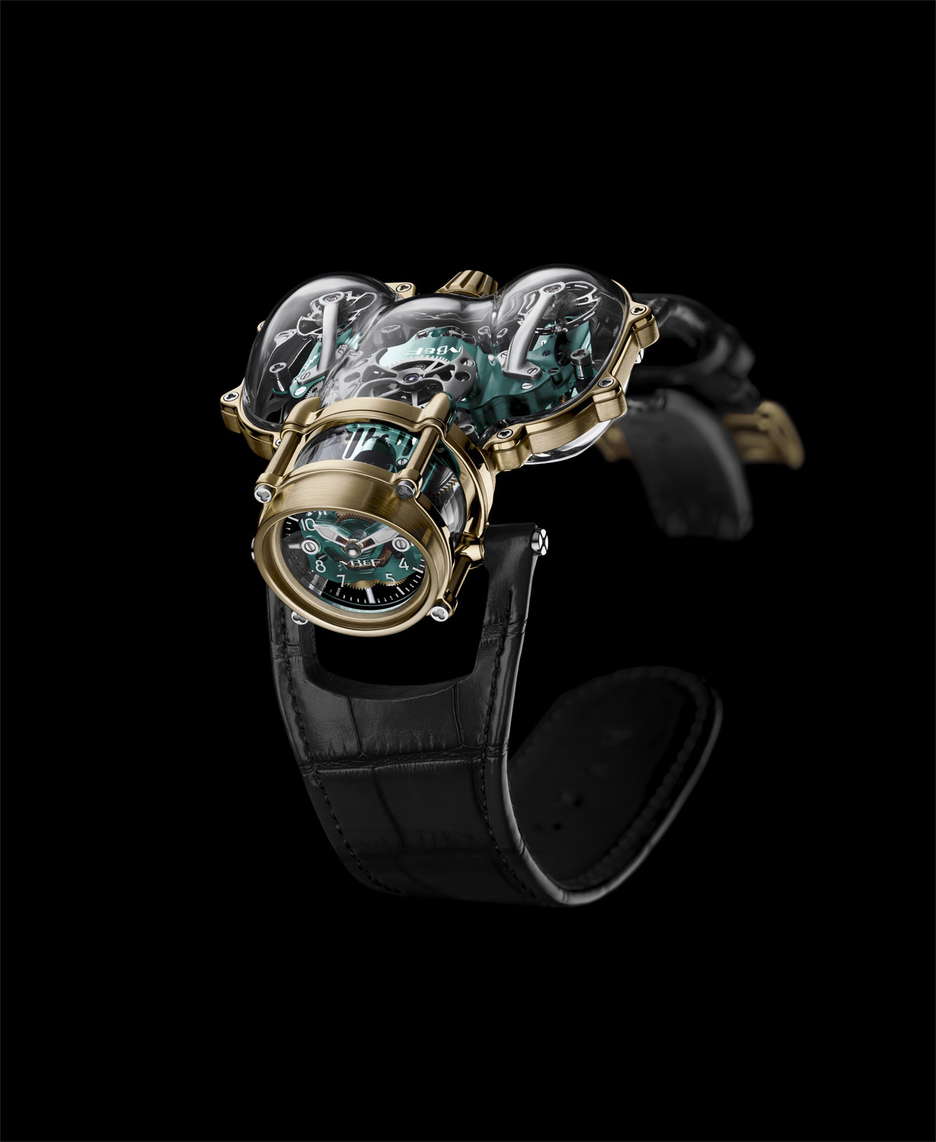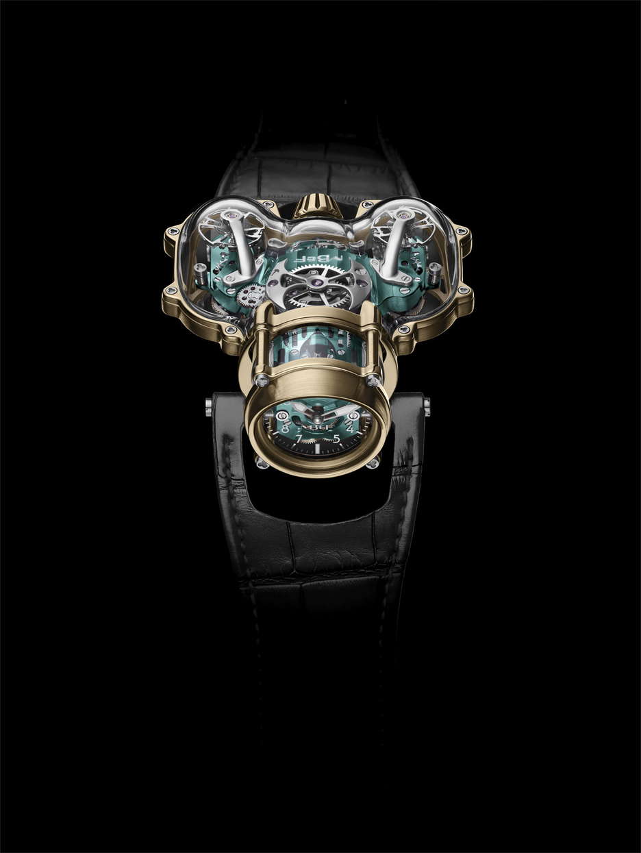 MB&F HM9-SV Yellow Gold Green 57 x 47mm-Sapphire, Yellow Gold-Manual Winding