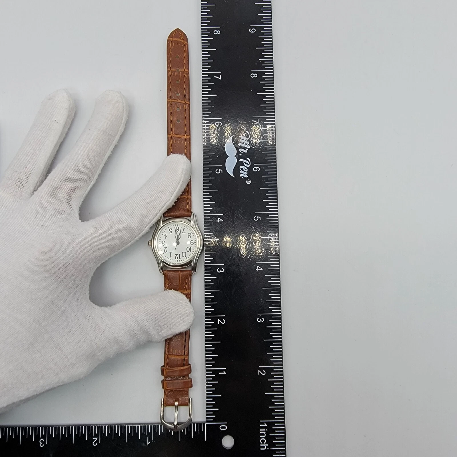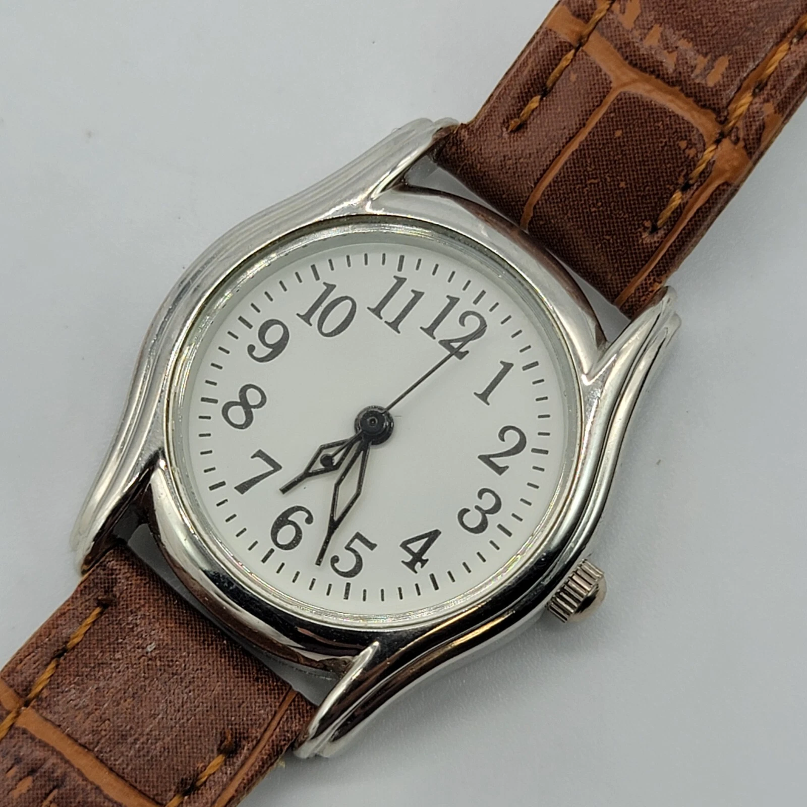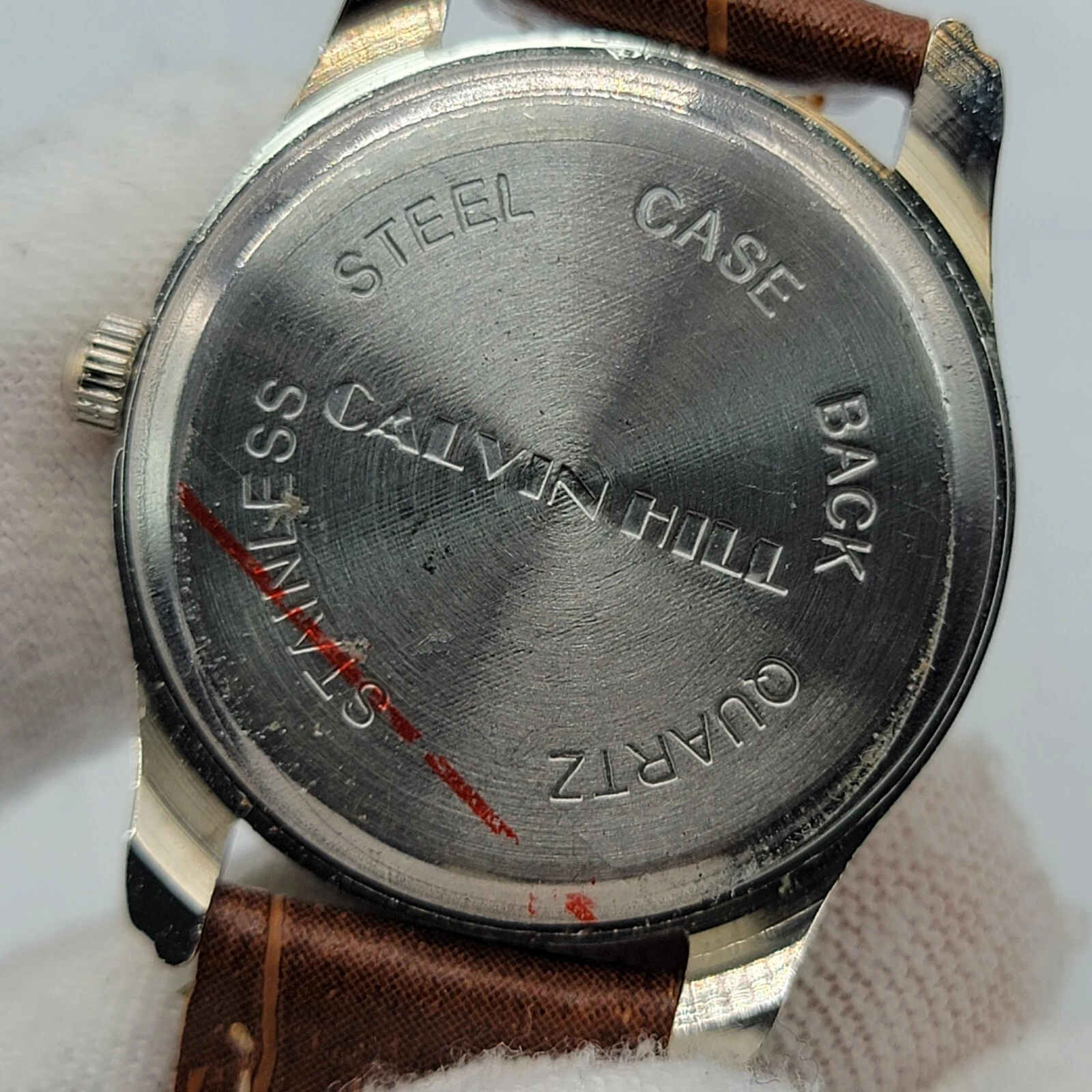 Calvin Hill Women Watch 26mm Silver Tone Brown Leather Band New Battery *