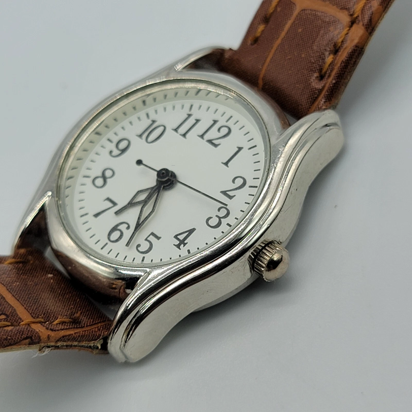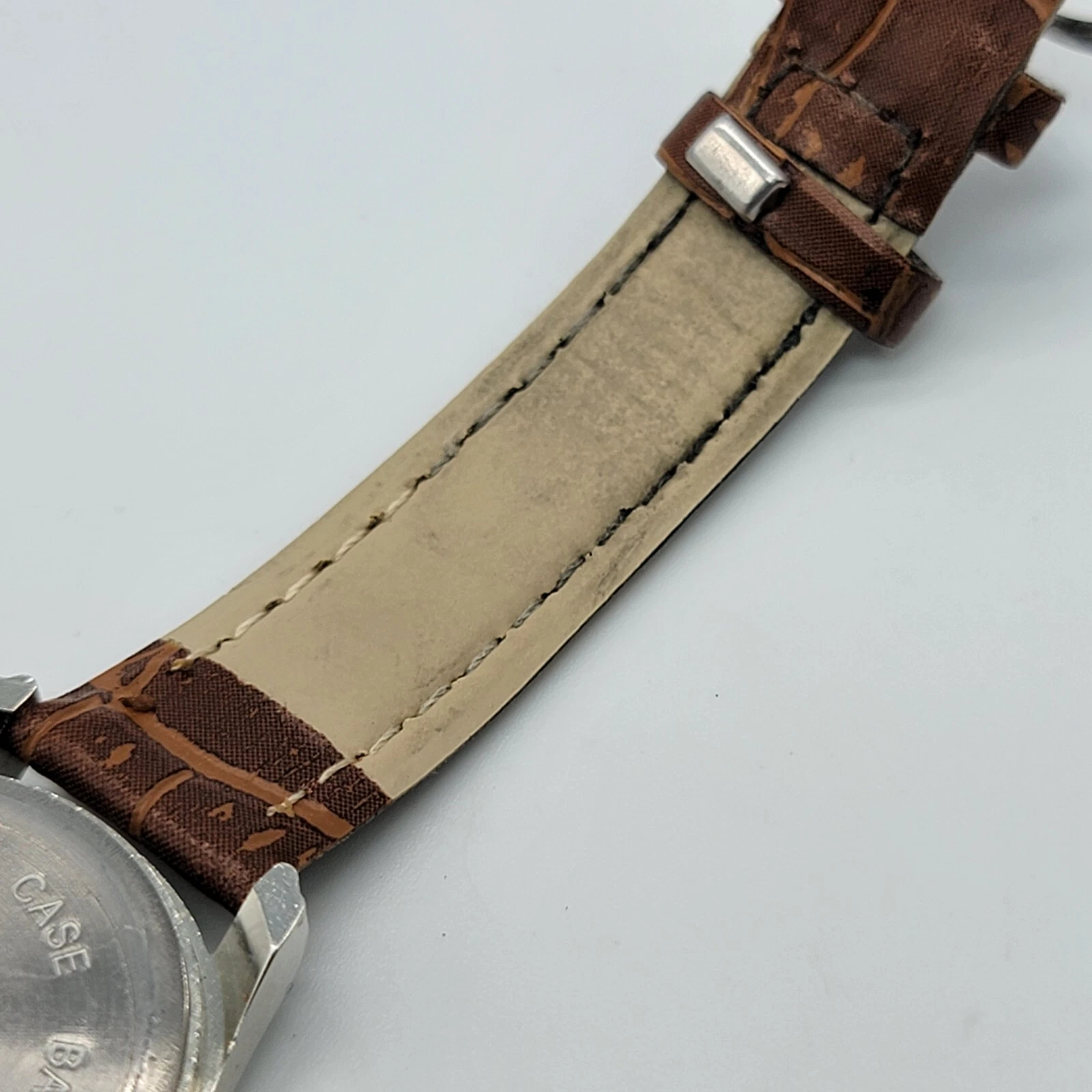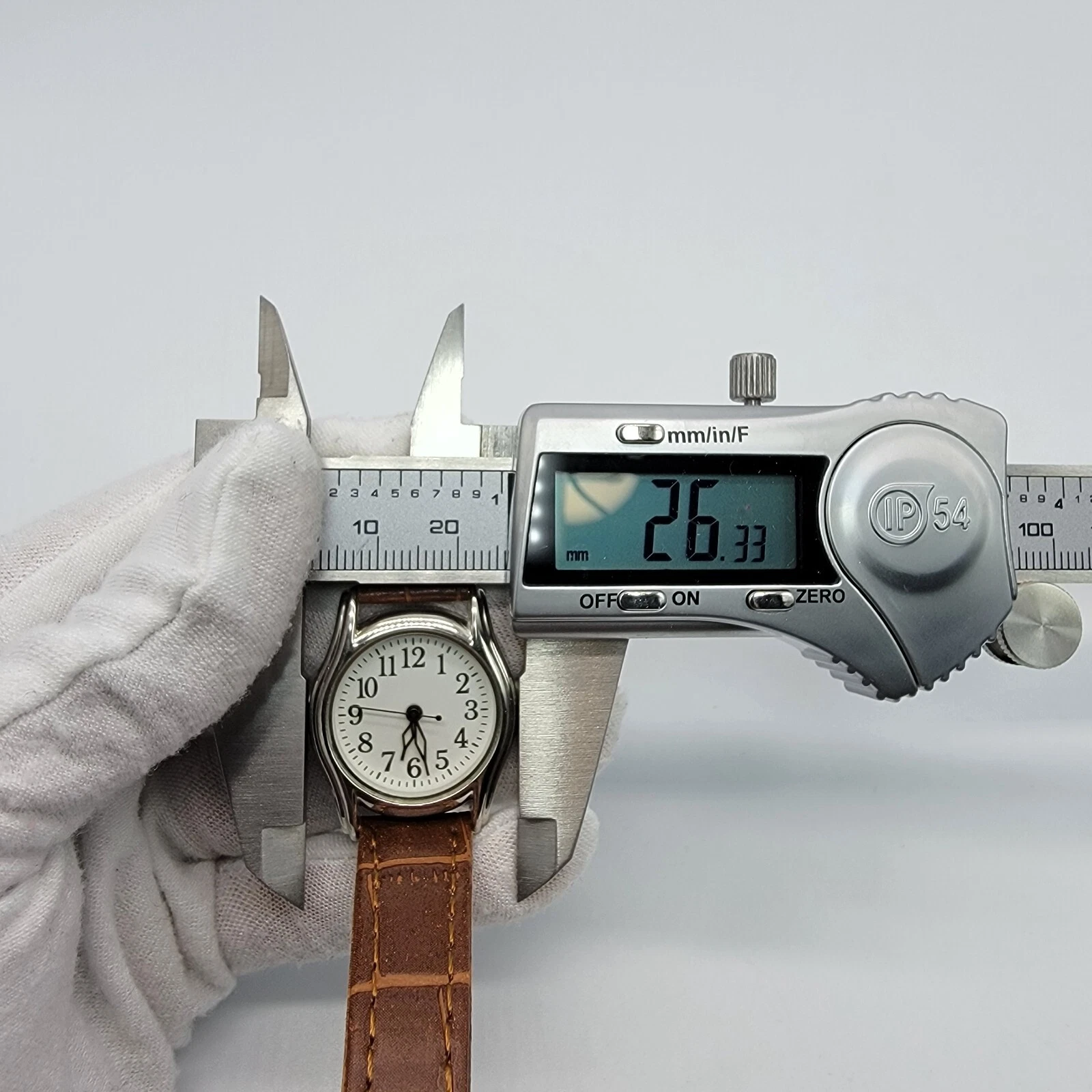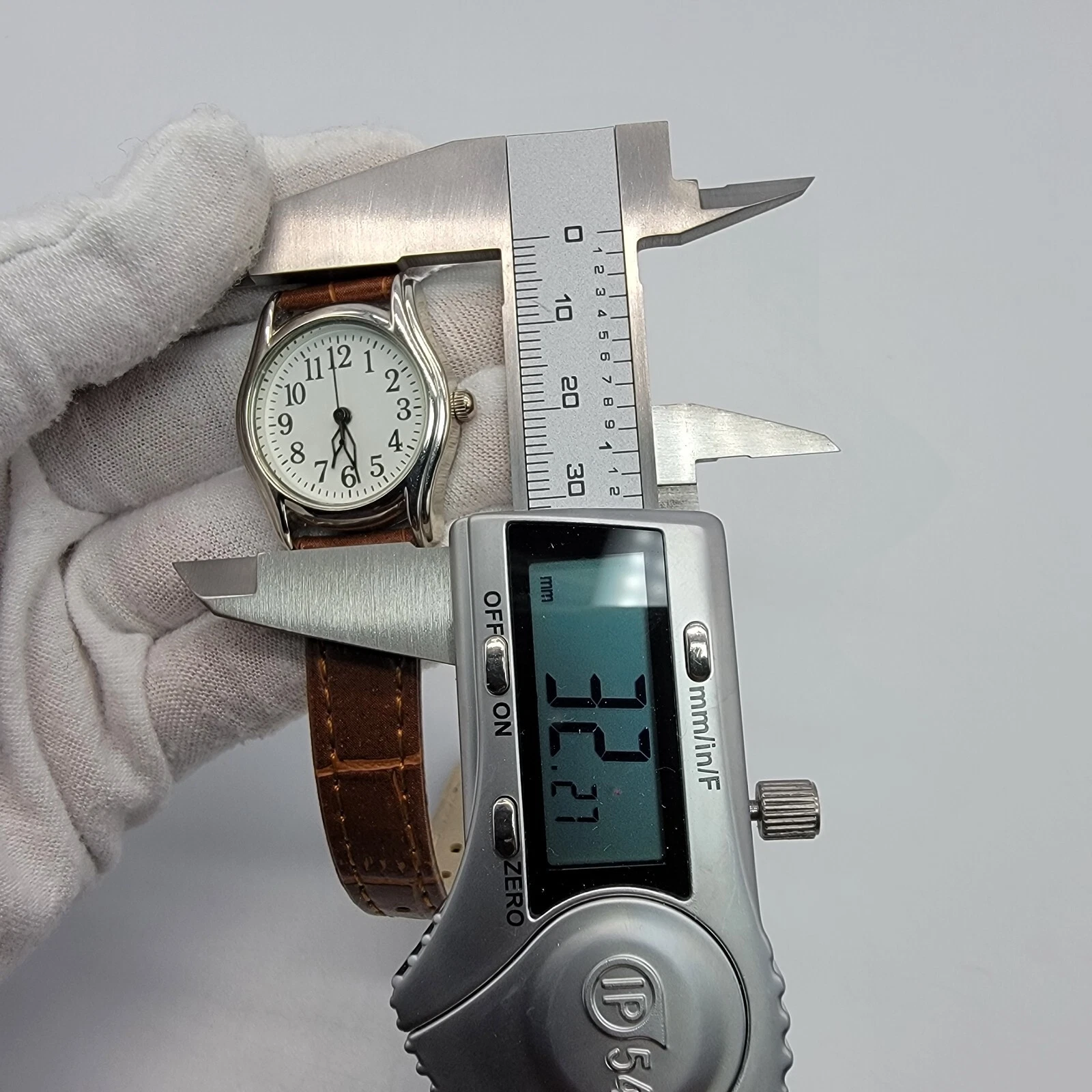 Calvin Hill Women Watch 26mm Silver Tone Brown Leather Band New Battery *