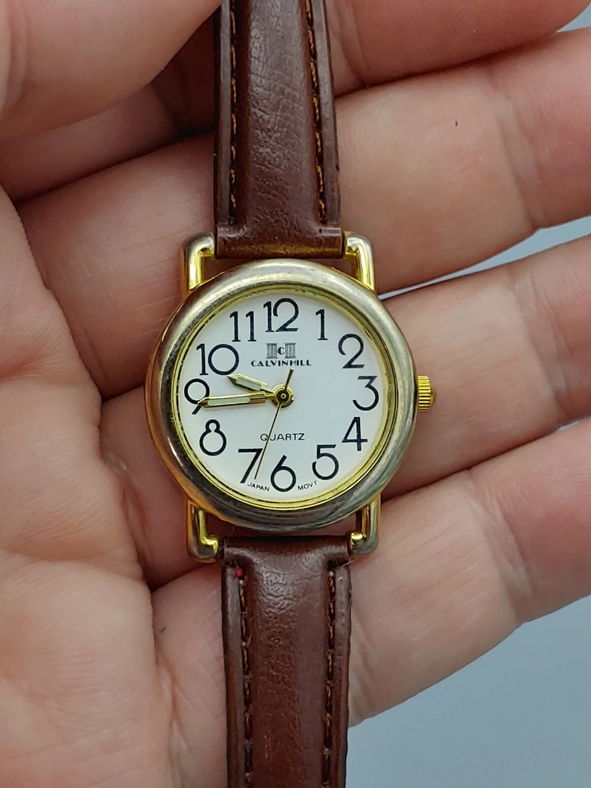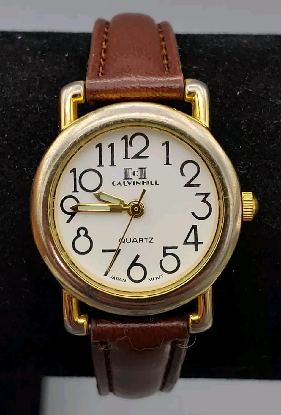 Vintage Calvin Hill Women's Quartz Watch 26mm Gold Tone Case New Battery