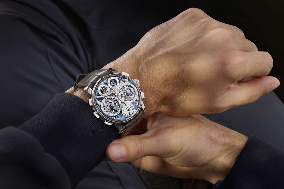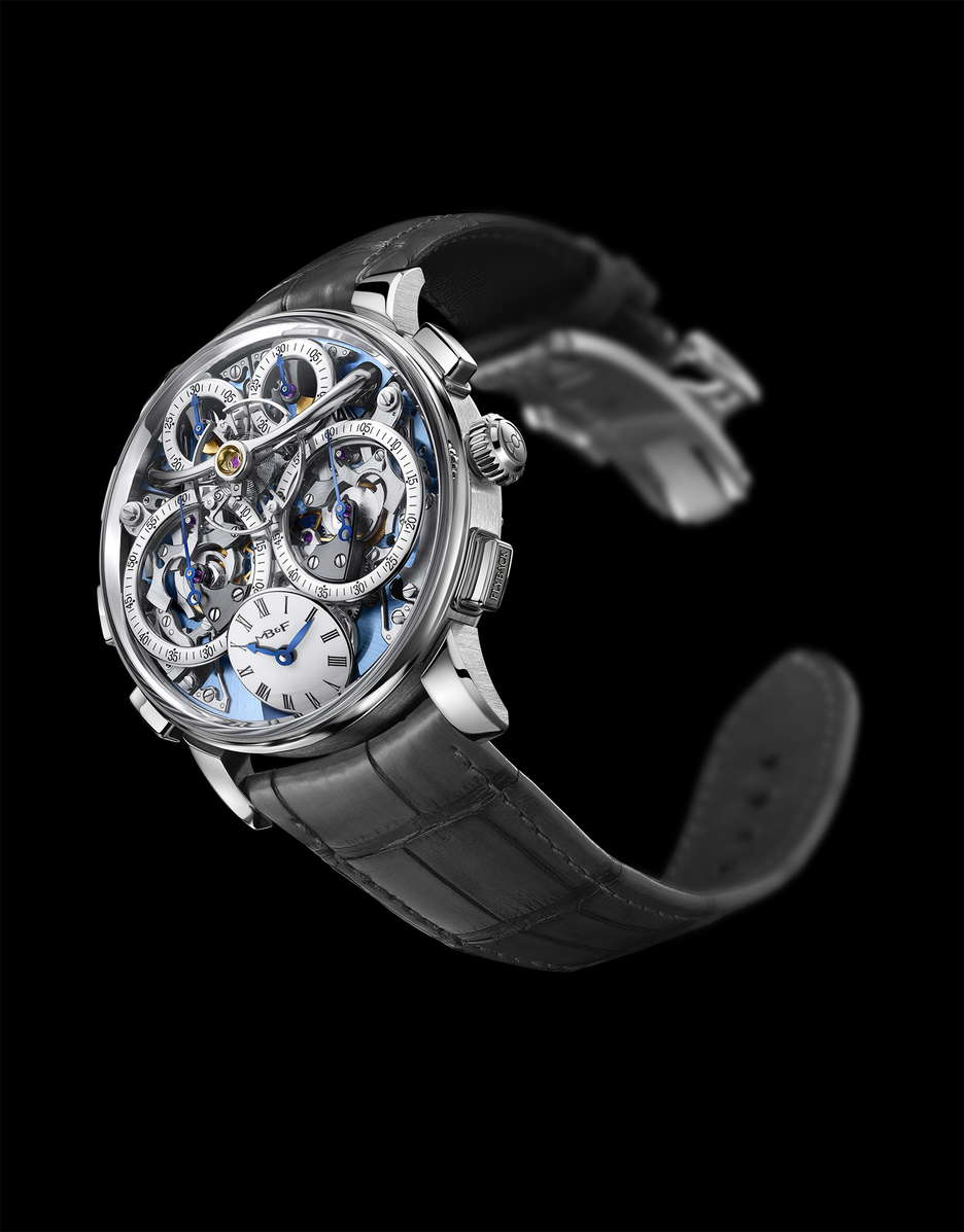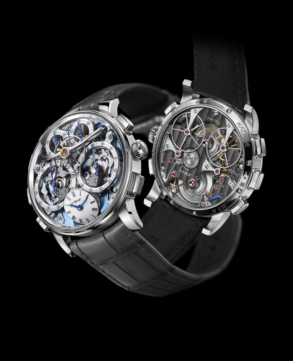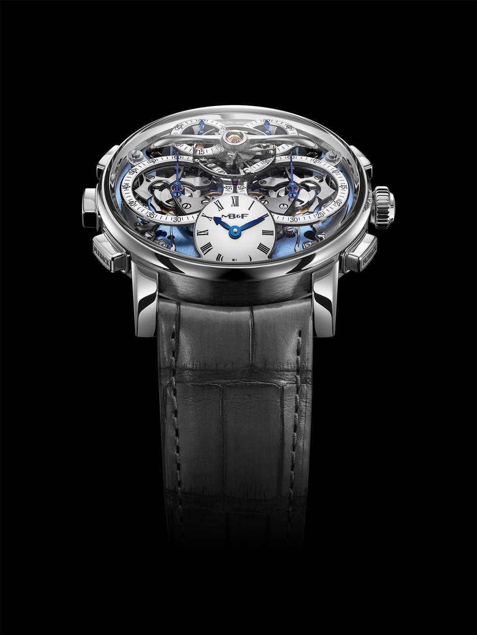 In 2022, MB&F introduced the Legacy Machine Sequential EVO, a revolutionary twin chronograph. The LM Sequential EVO won the prestigious GPHG ‘Aiguille d’Or’ award in the same year. The new LM Sequential Flyback Platinum’s standout feature is its flyback function, which McDonnell initially included in the prototype but required extensive development to perfect. After two years of testing and refinement, the LM Sequential Flyback Platinum has been released. The watch maintains the same layout as its predecessor, with two independent chronographs that can be started, stopped, and reset independently. It also includes a fifth pusher, the Twinverter, which controls both chronographs simultaneously. This pusher allows for various timing modes: Independent Mode, Simultaneous or Split-Second Mode, Cumulative Mode, Sequential Mode (Lap-Timer Mode) and Flyback Mode, which was originally developed for pilots. This mode allows for accurate timing of multiple legs in a journey with a single press of the reset pusher.