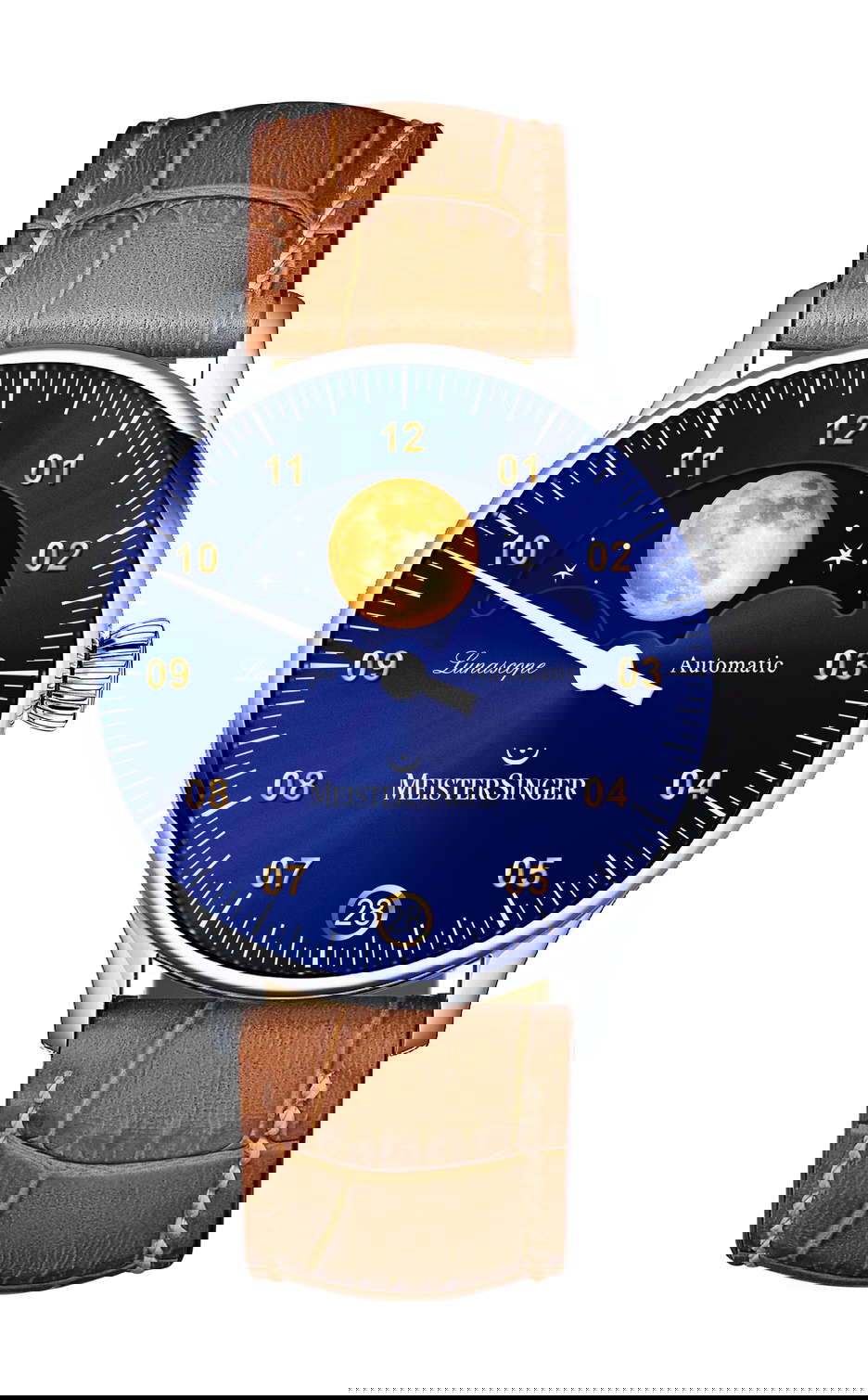 MeisterSinger Lunascope Sunburst Blue Gold 40mm-Stainless Steel-Automatic Winding