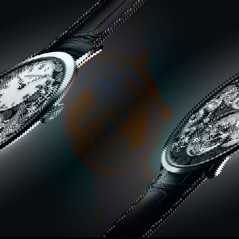 Arnold & Son Ultrathin Tourbillon Red Gold Dragon & Phoenix Marcassite 42mm-Red Gold-Manual Winding