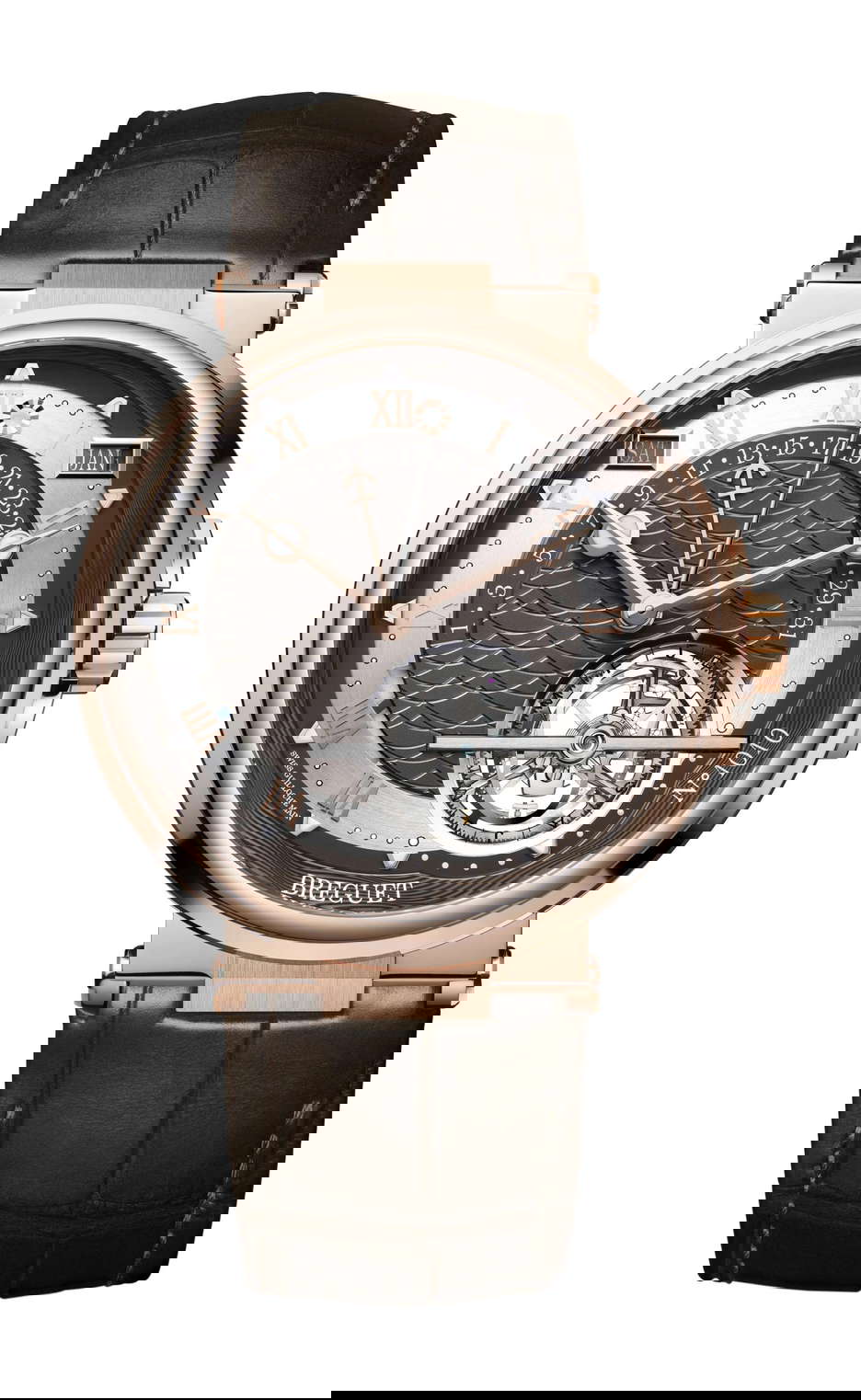 Functions:date,day,hours,minutes,month,perpetual calendar,power reserve,power reserve indicator,retrograde,seconds,small seconds,tourbillon