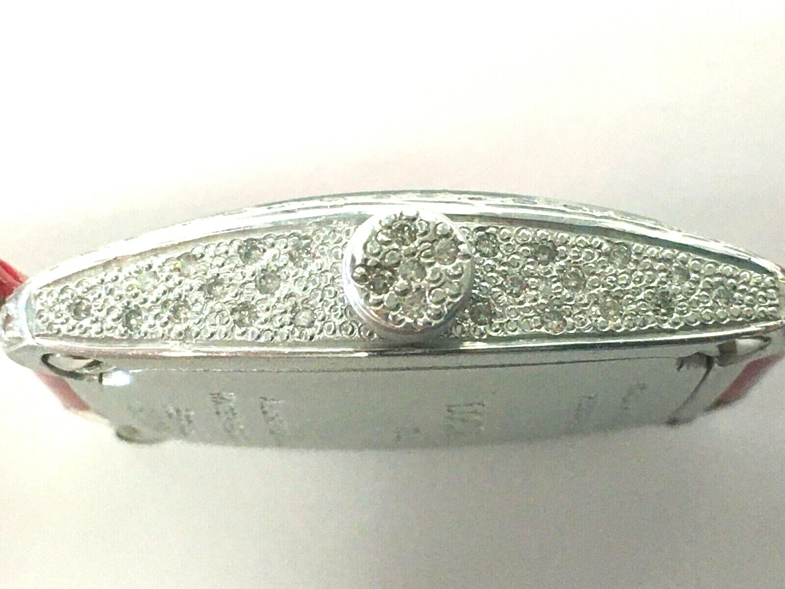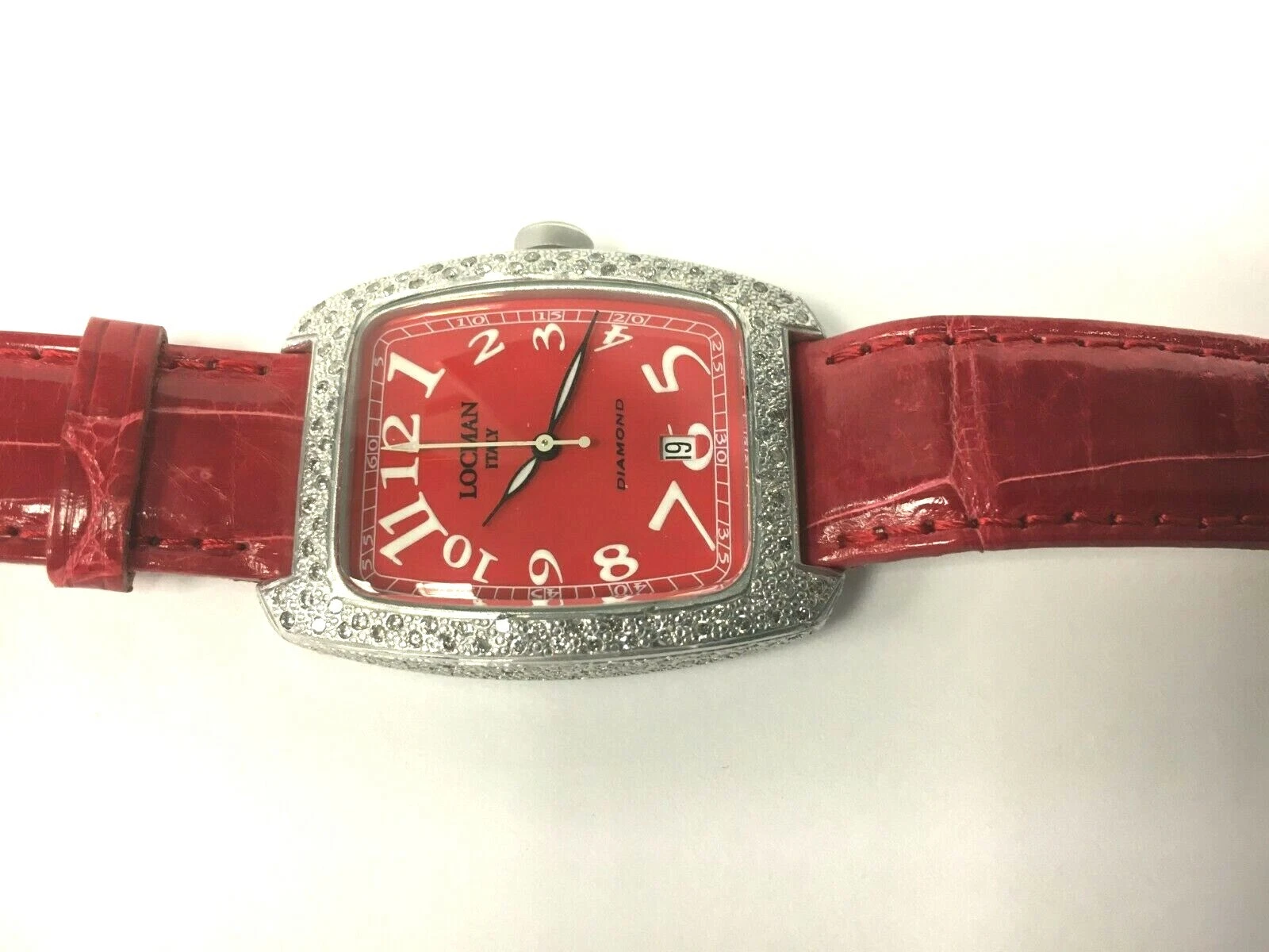 Locman Ladies Diamond Pave Aluminum Case Watch Red Dial, Date, Red Leather Strap