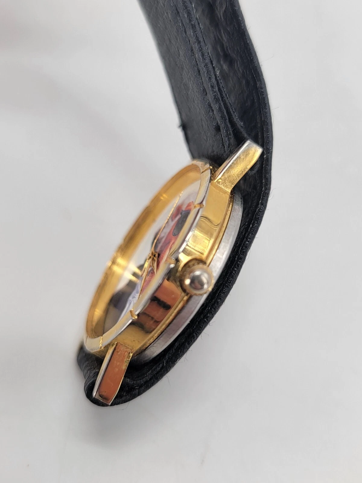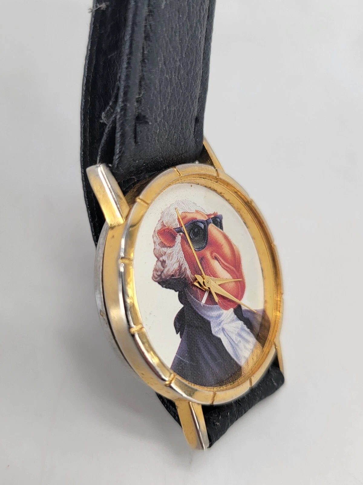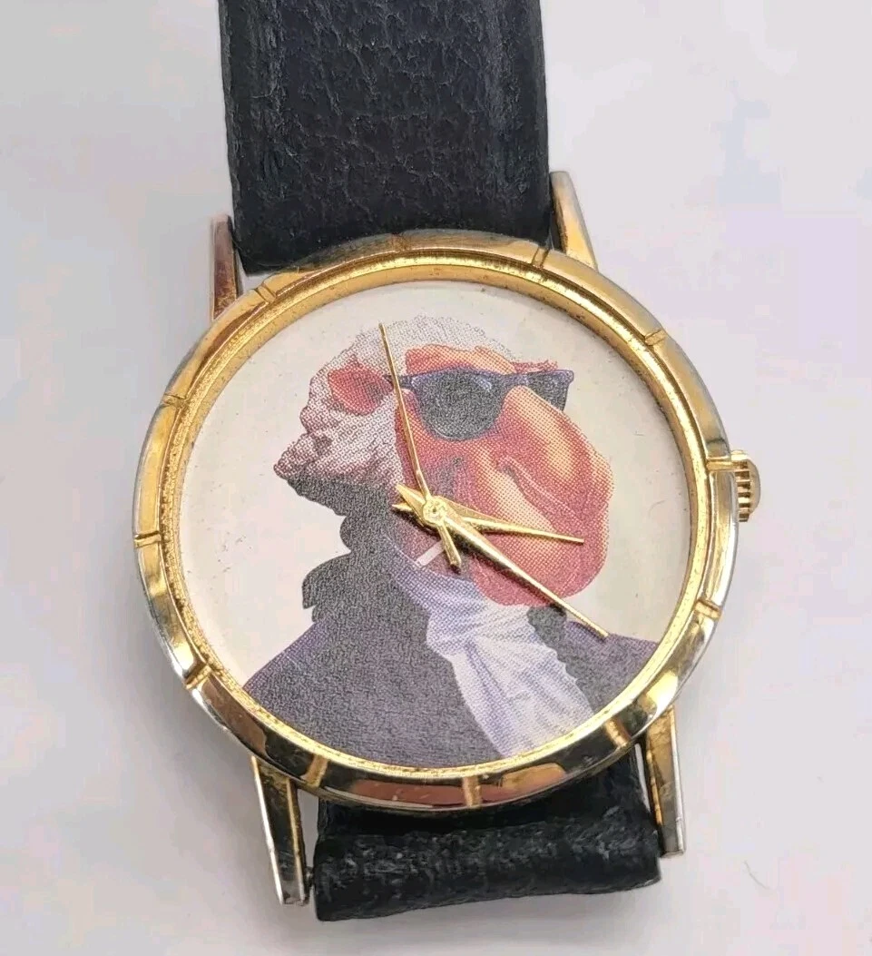 Vintage Joe Camel Club Watch Unisex Gold Tone With Black Leather Band No Glass