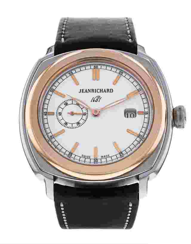 This JeanRichard 1681 60330-56-132 has a white baton dial and a leather strap. This JeanRichard has undergone a thorough inspection of water resistance, accuracy, functionality and condition to determine the level of reconditioning required to meet our strict standards. It has also been referenced against technical documents and manufacturer records where available to ensure authenticity and a clean history. All our watches have a 24-month warranty for your peace of mind.