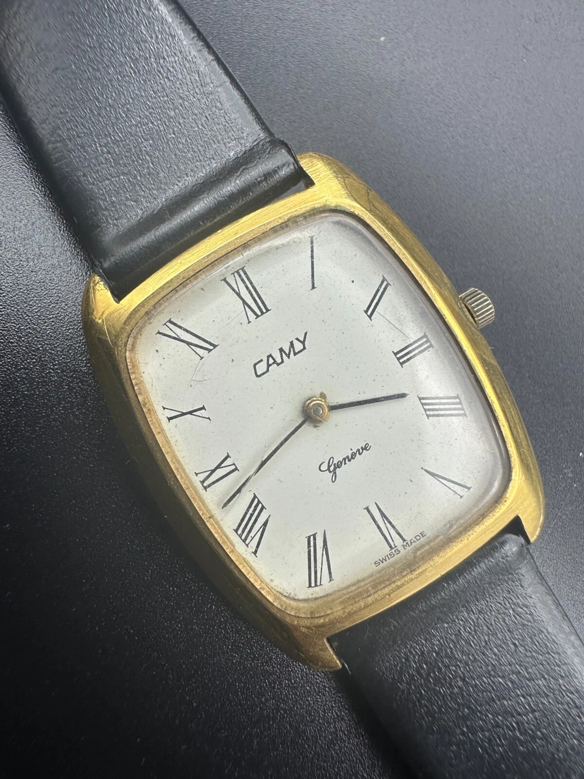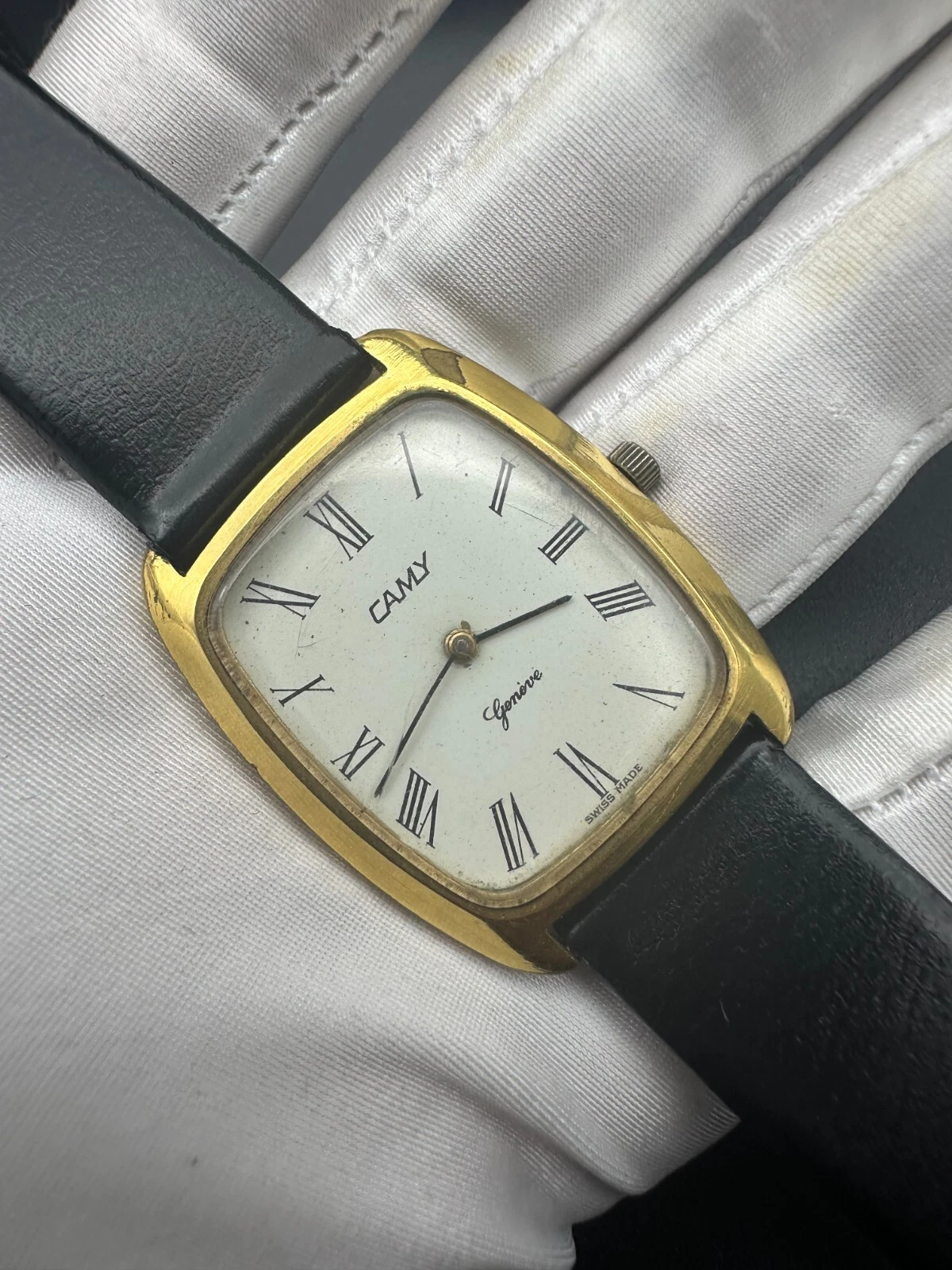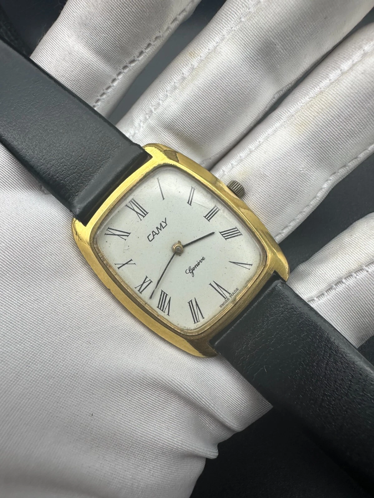 Vintage Rare CAMY GENEVE Swiss Manual GENUINE 60`s Gold Plated Case Tank Watch