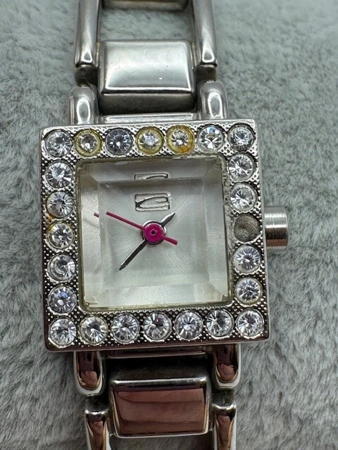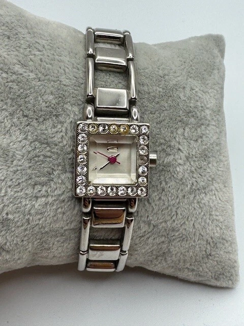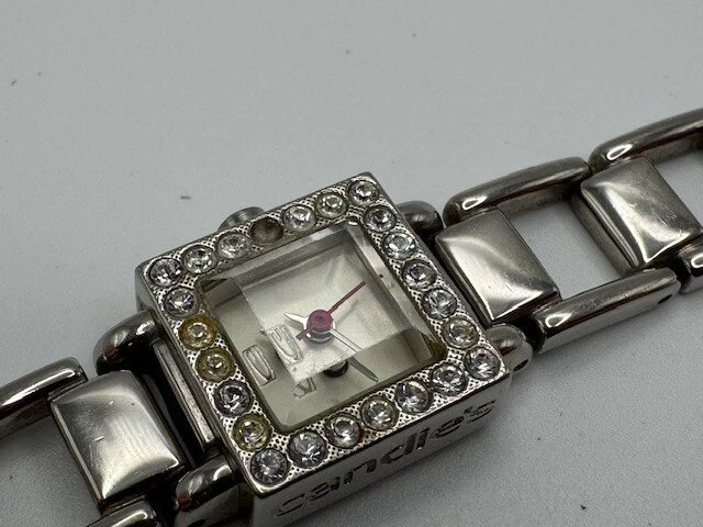 Ladies Candies Raised Crystal Silver Tone Quartz Watch New Battery