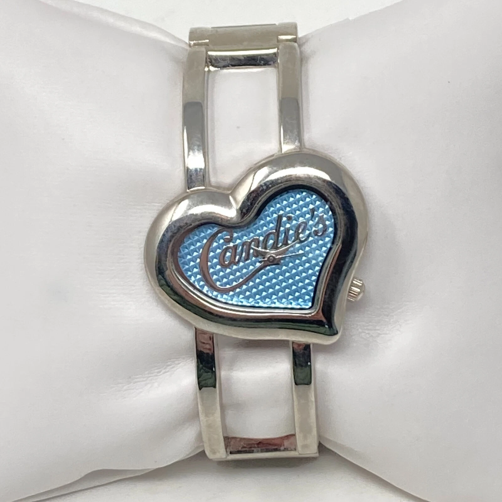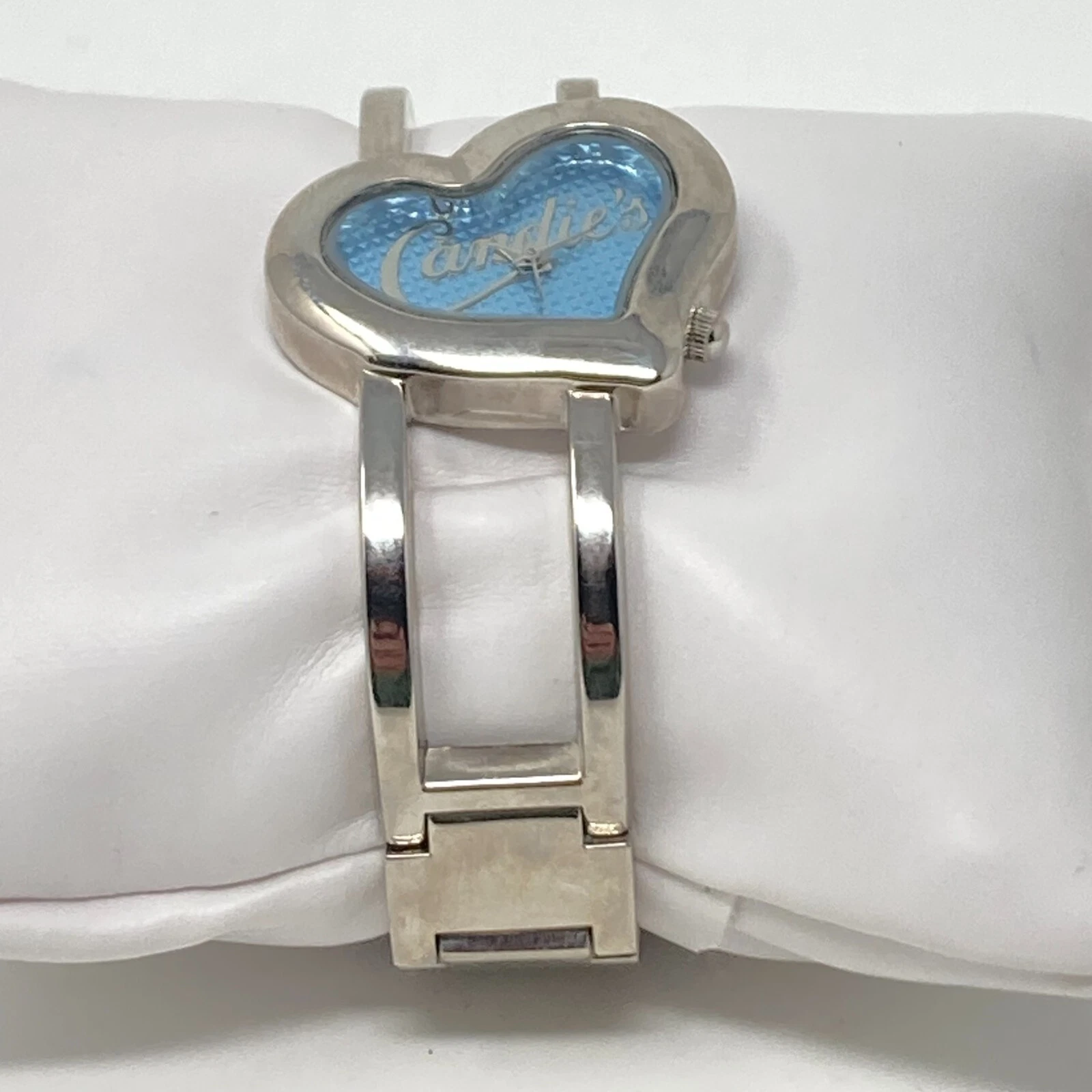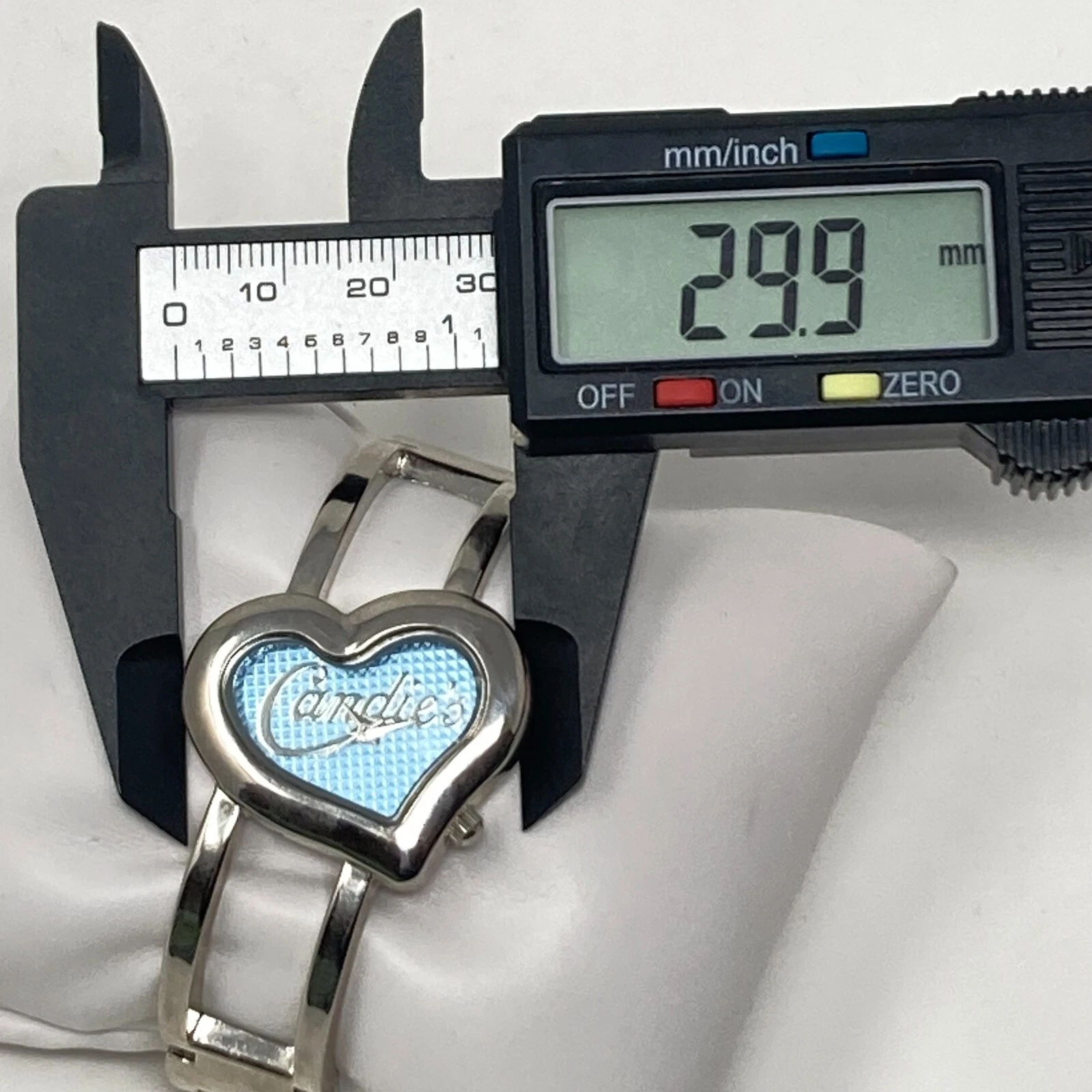 Candie's Heart Watch Women 30mm Silver Tone Blue Grid Dial New Battery 6.5"