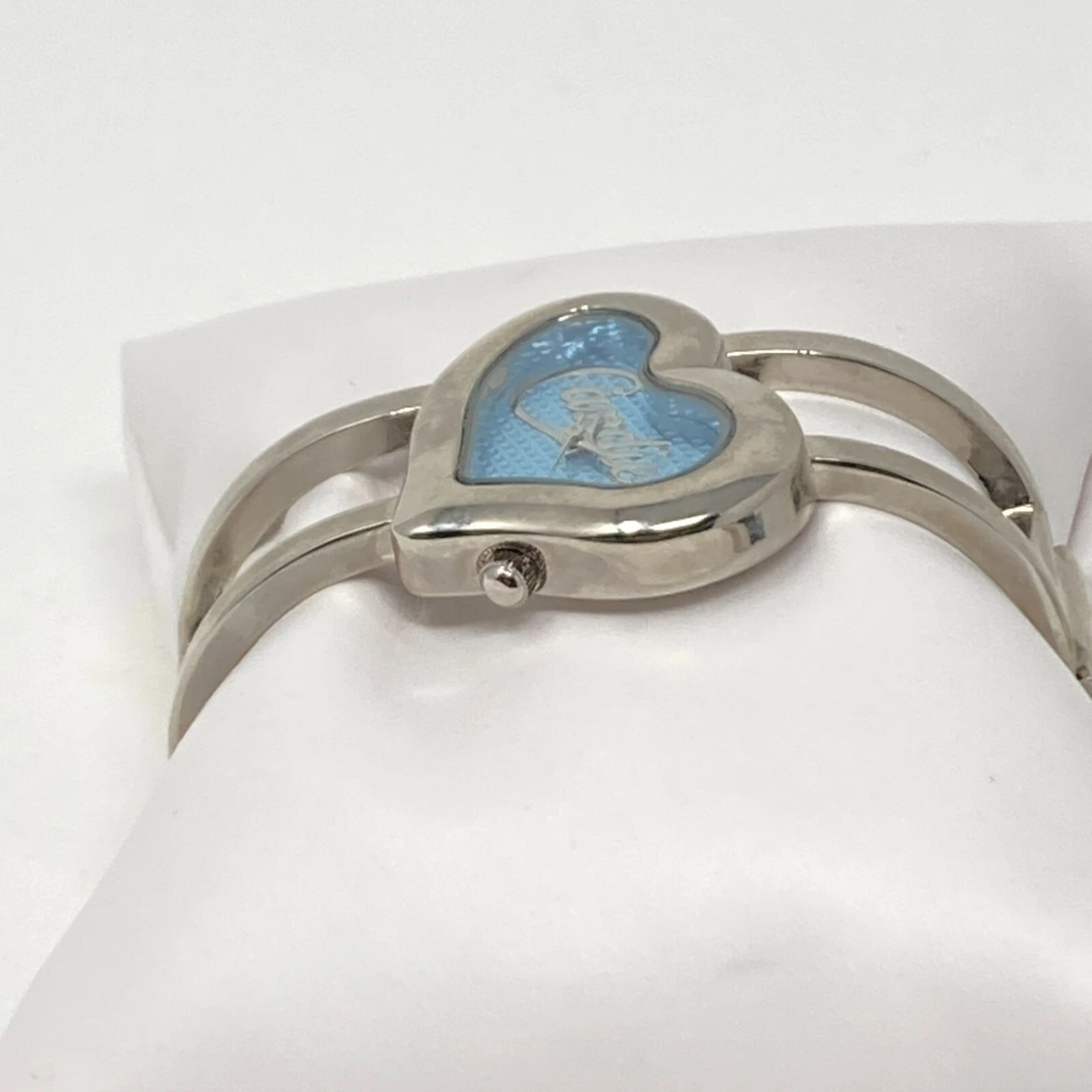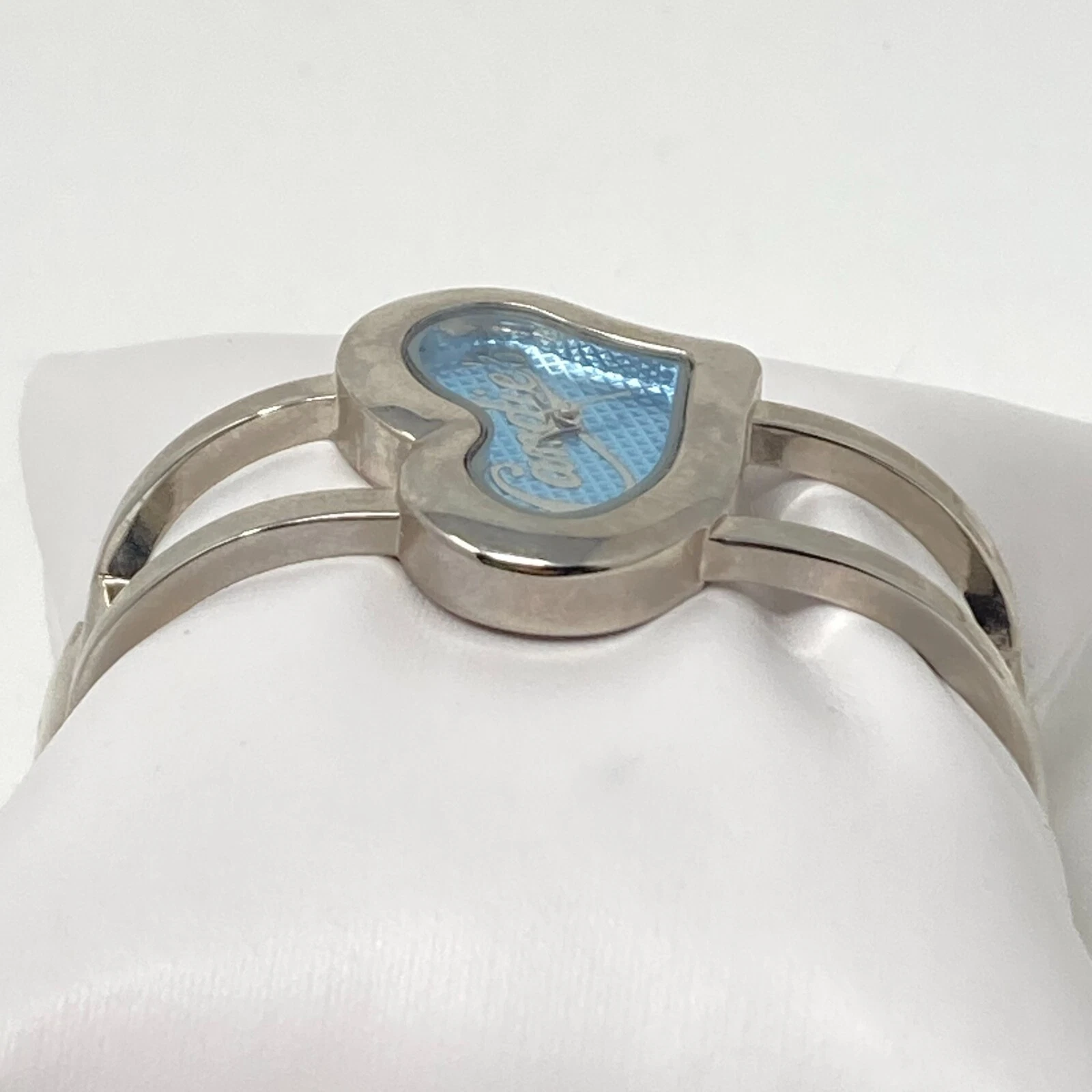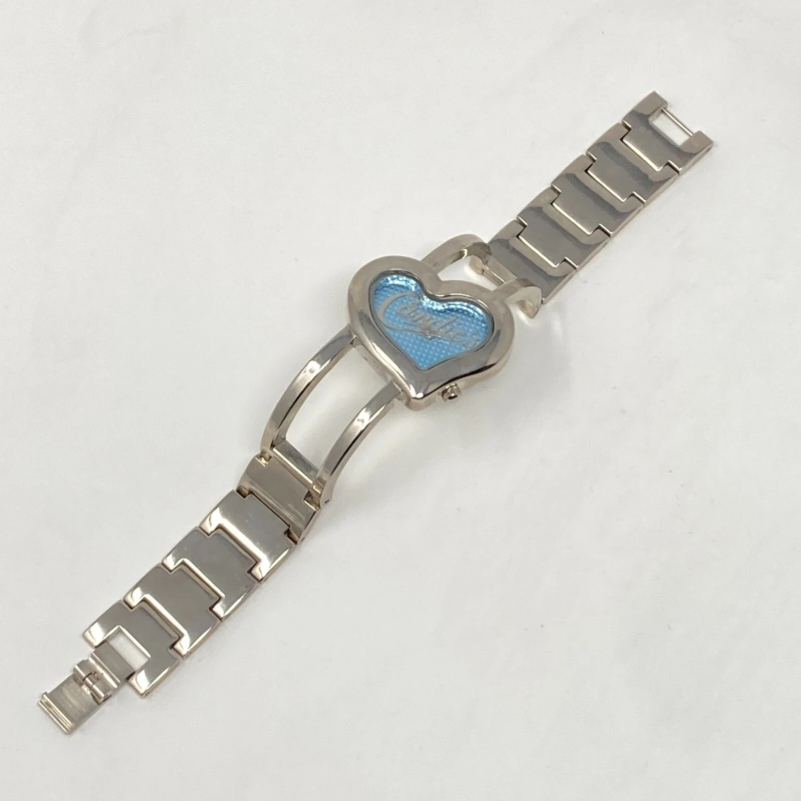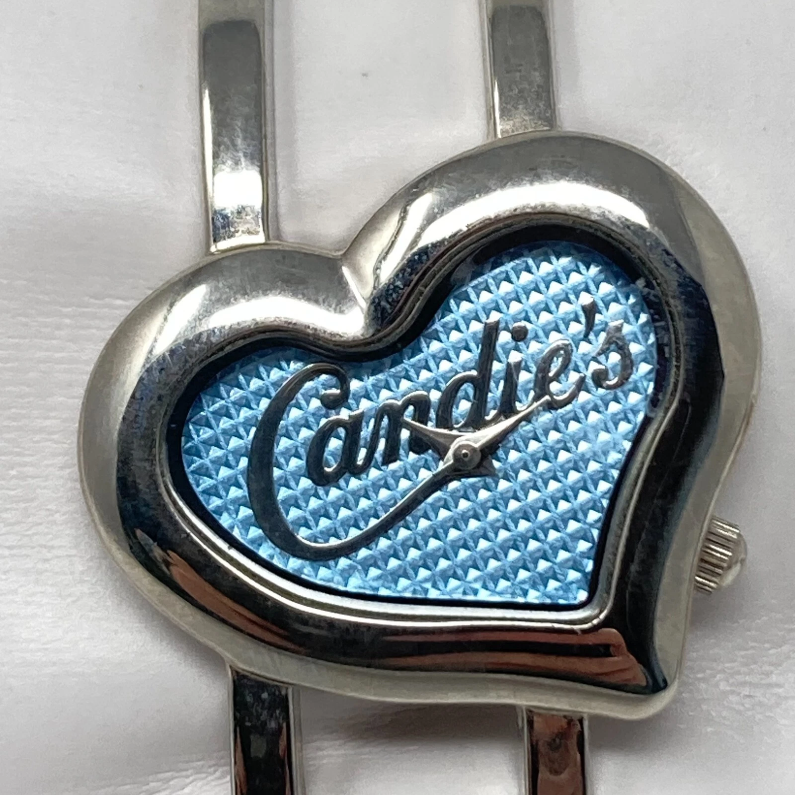 Candie's Heart Watch Women 30mm Silver Tone Blue Grid Dial New Battery 6.5"