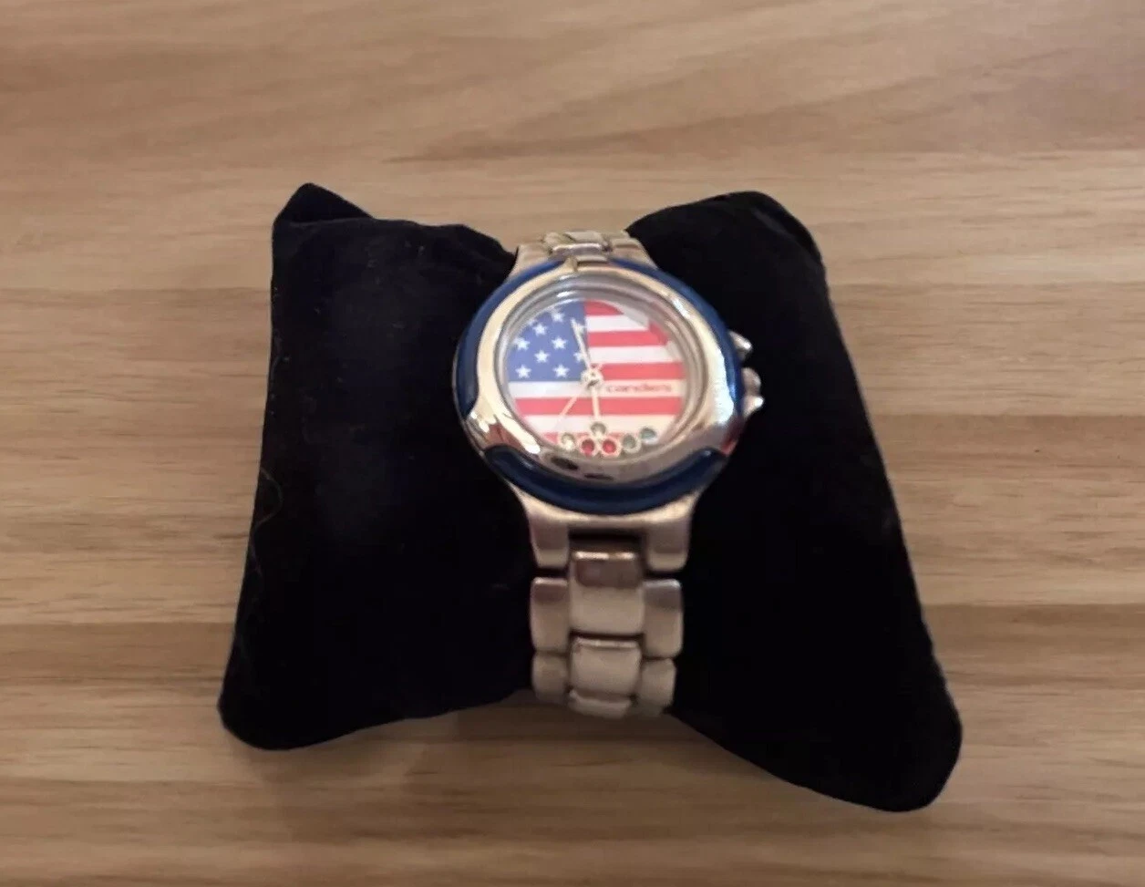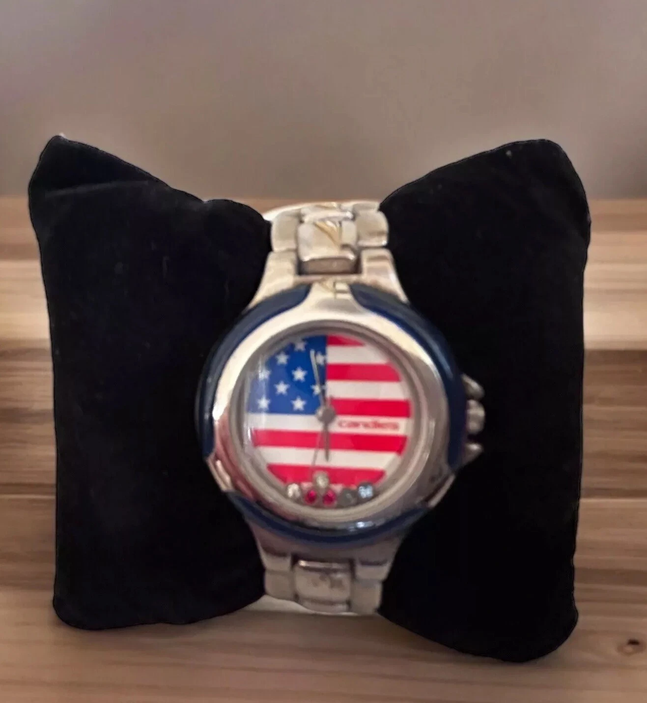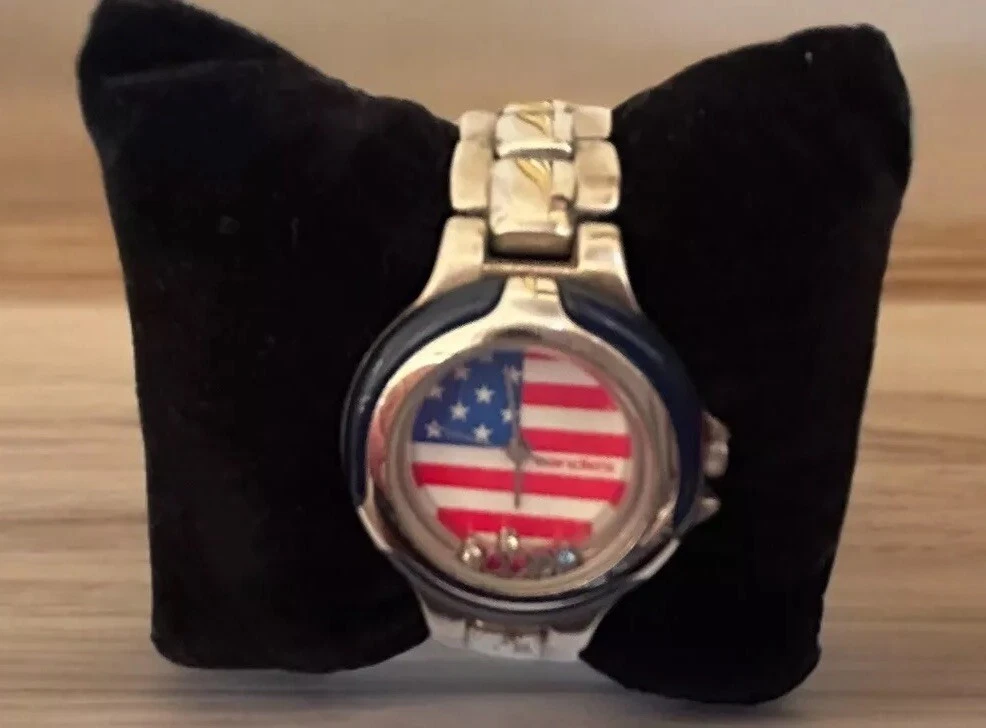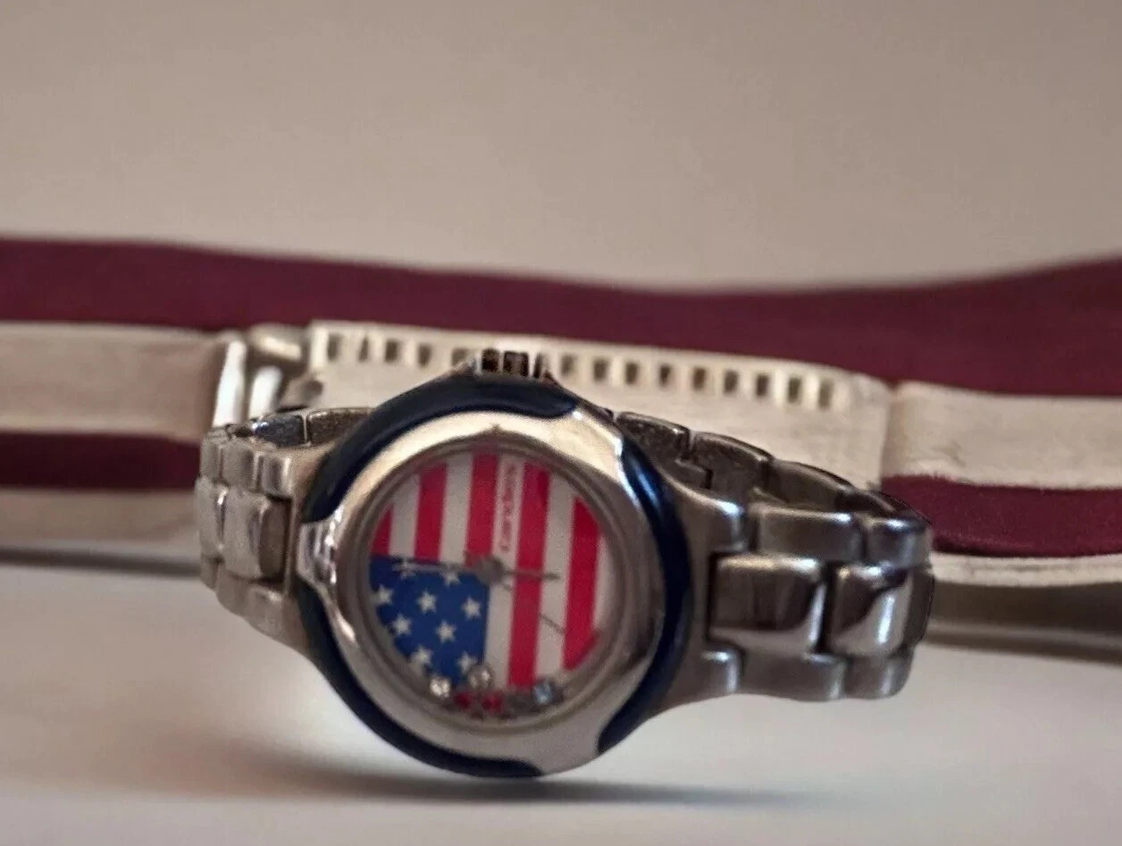 Vintage CANDIES AMERICAN FLAG Rhinestone ACCENTS Watch JAPAN NEW BATTERY 6.25”