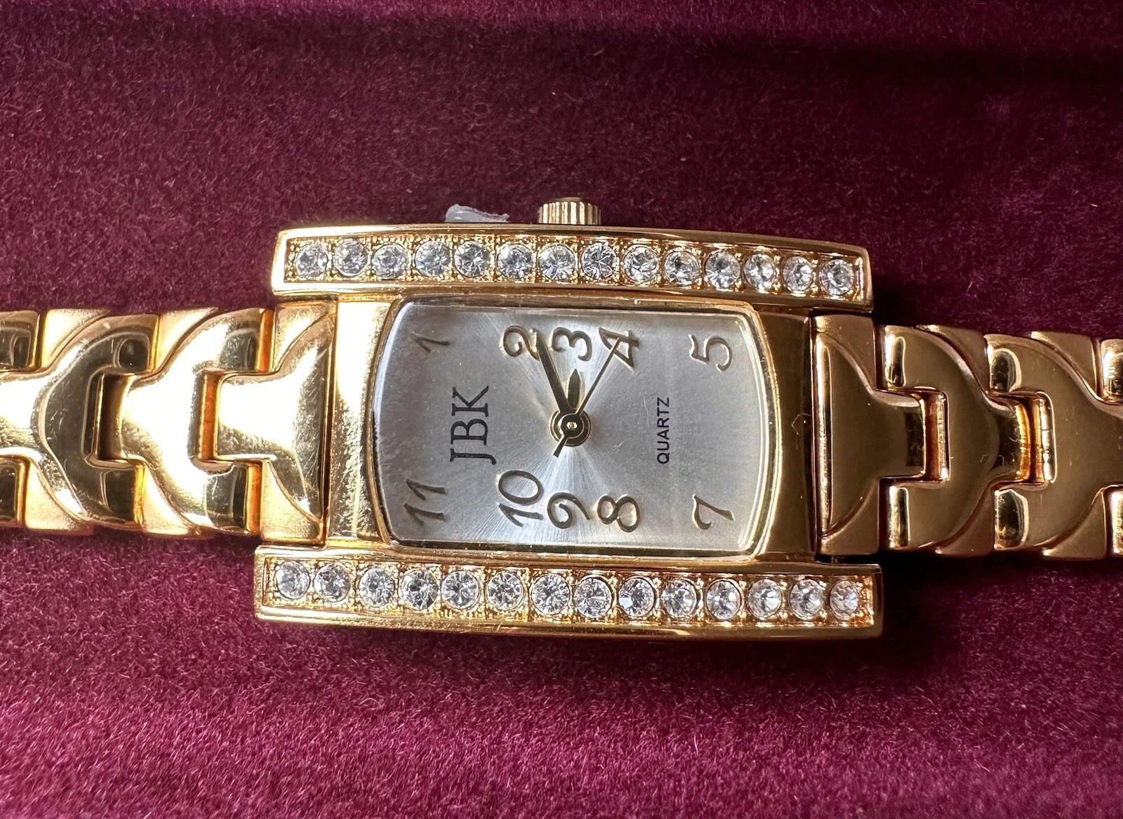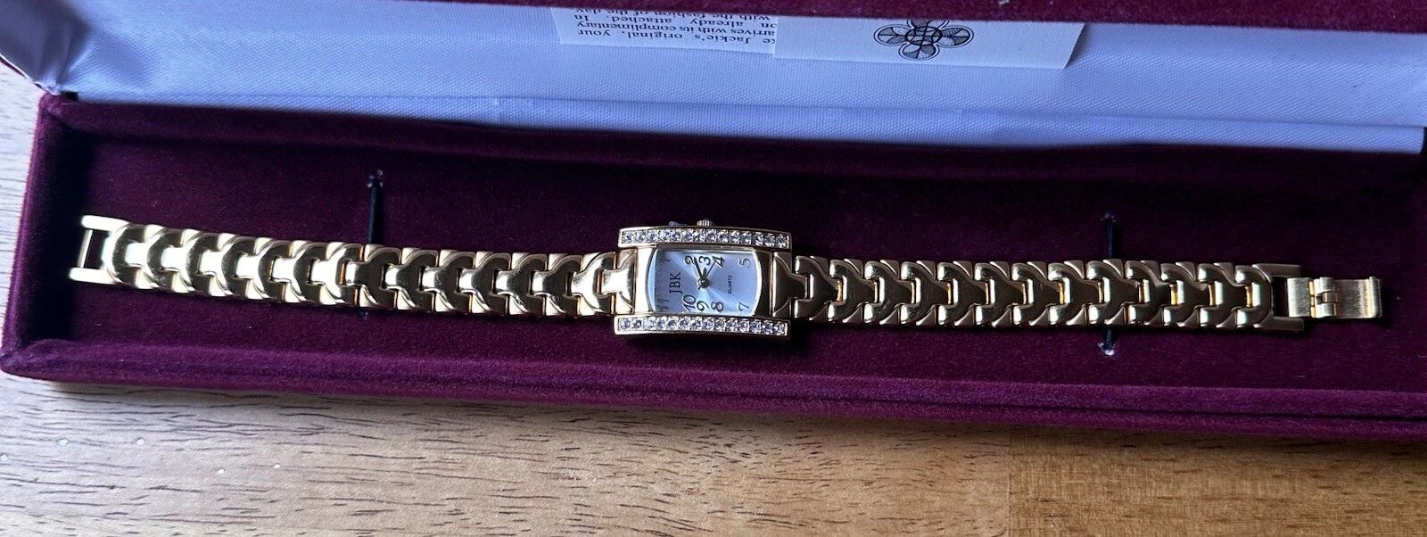 JACQUELINE KENNEDY GOLD TONE WATCH WITH CRYSTALS NEEDS BATTERY CAMROSE KROSS