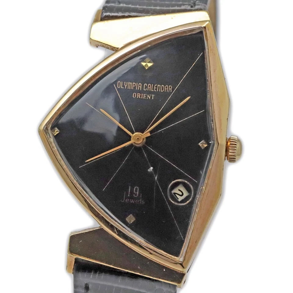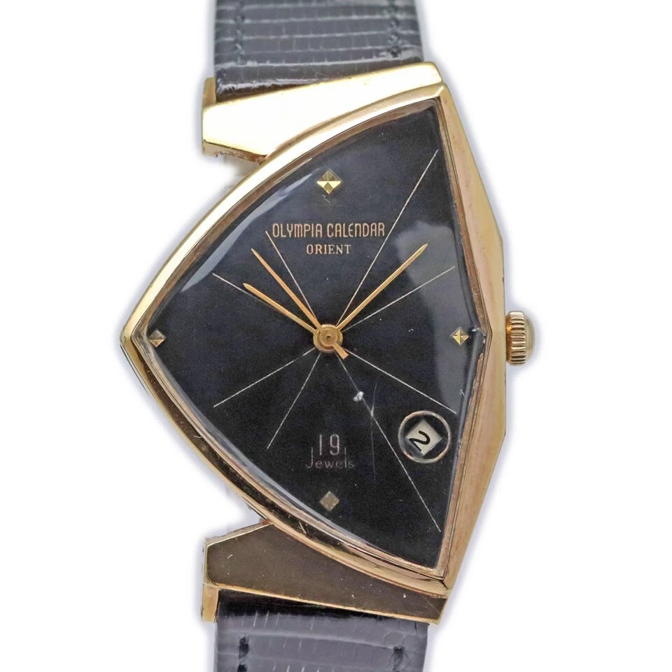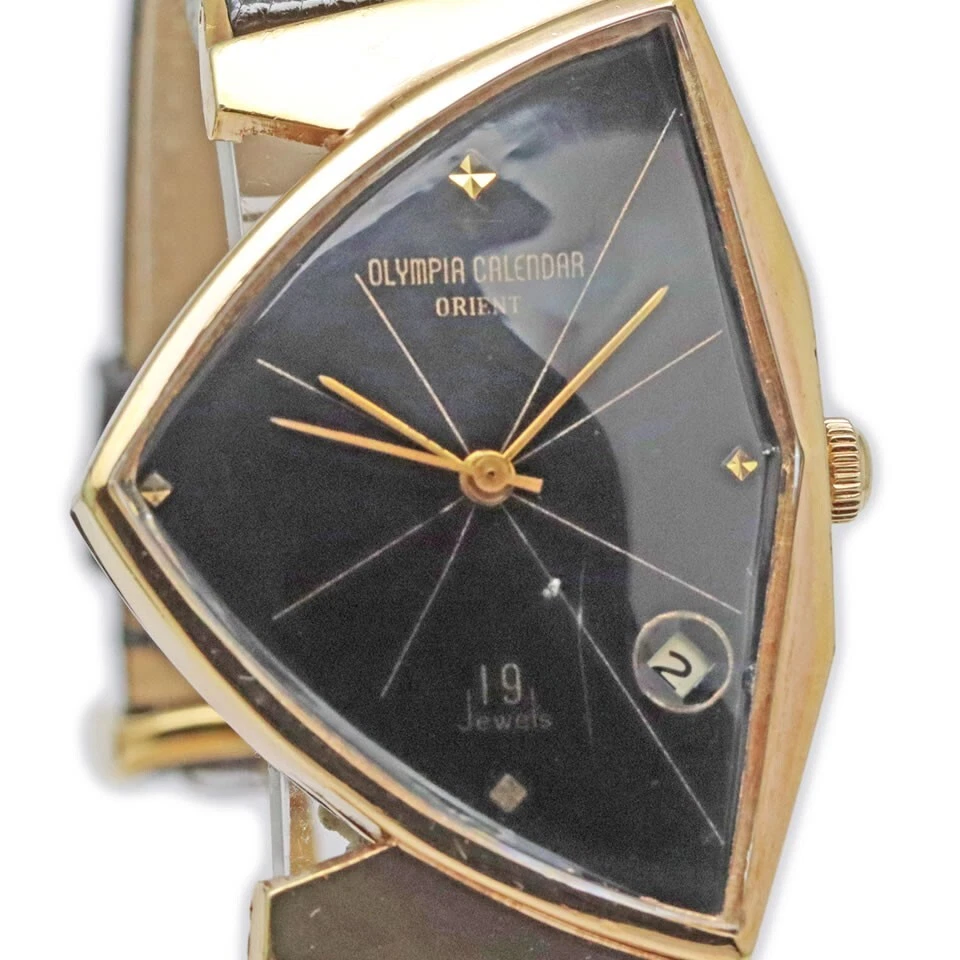 ORIENT Olympia Calendar Triangle Case VINTAGE Manual Winding Black Men's Watch
