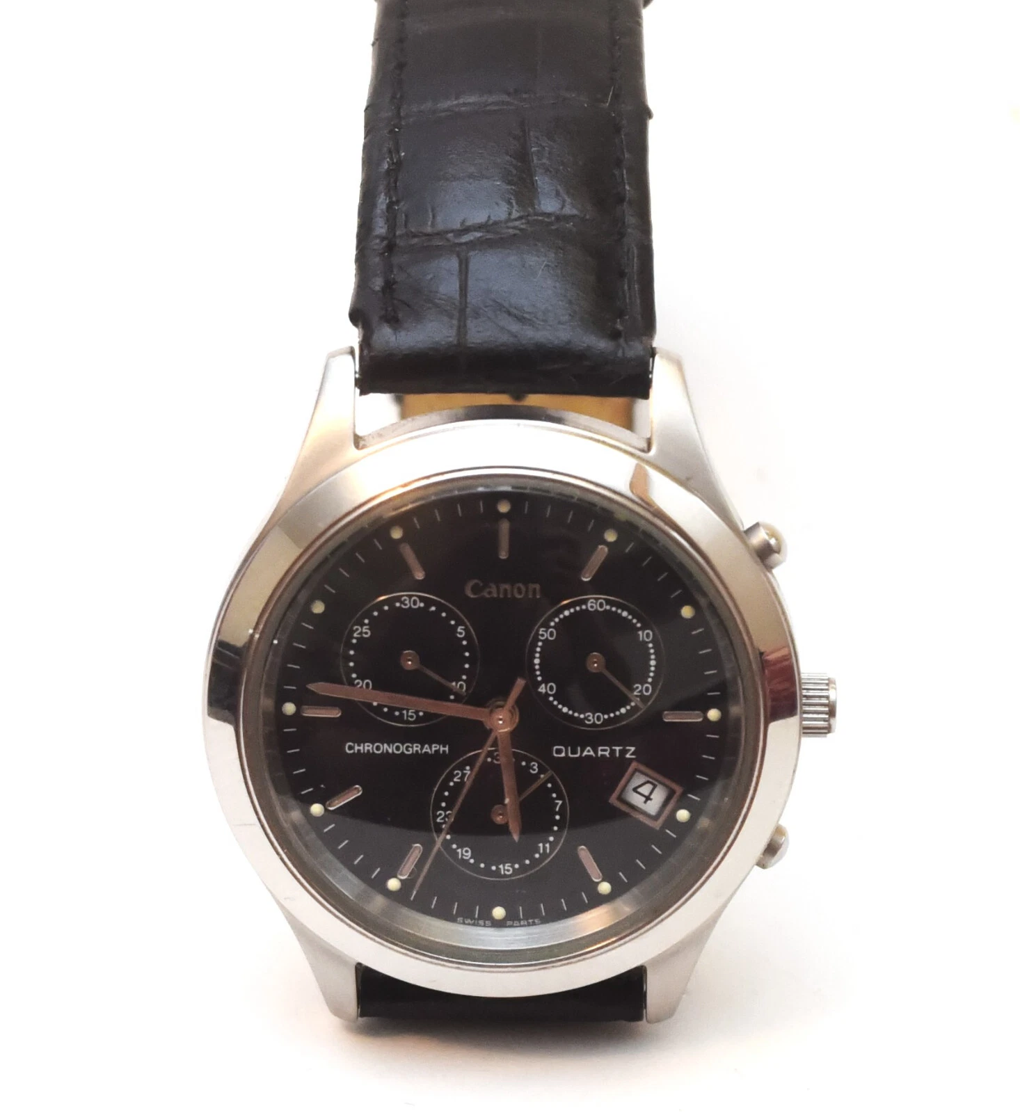 VINTAGE CANON CAMERA PROMOTIONAL CHRONOGRAPH WATCH WORKING QUARTZ SUBDIAL DATE