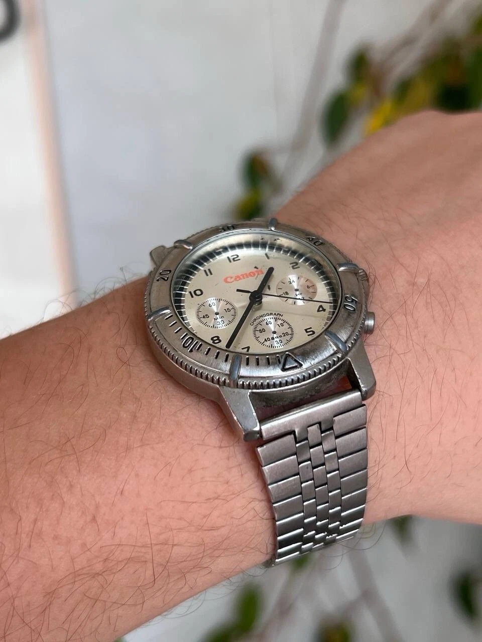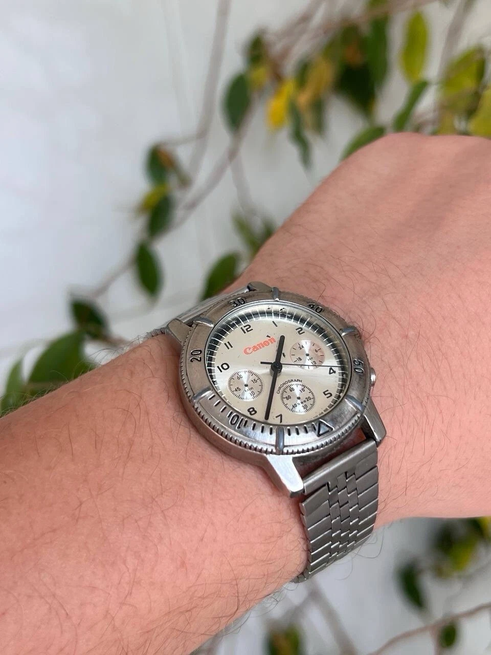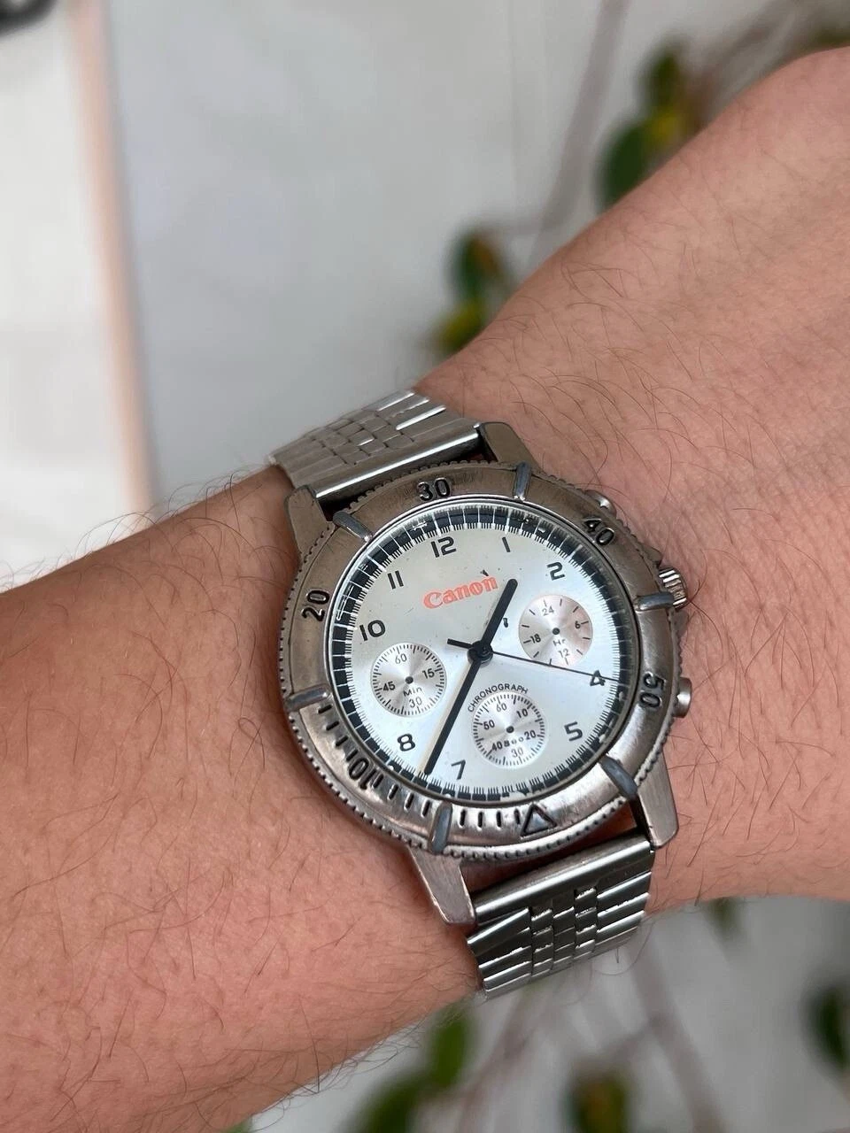 Vintage Canon Steel Metallic Chrome Watch Metal 1990s Working Quartz