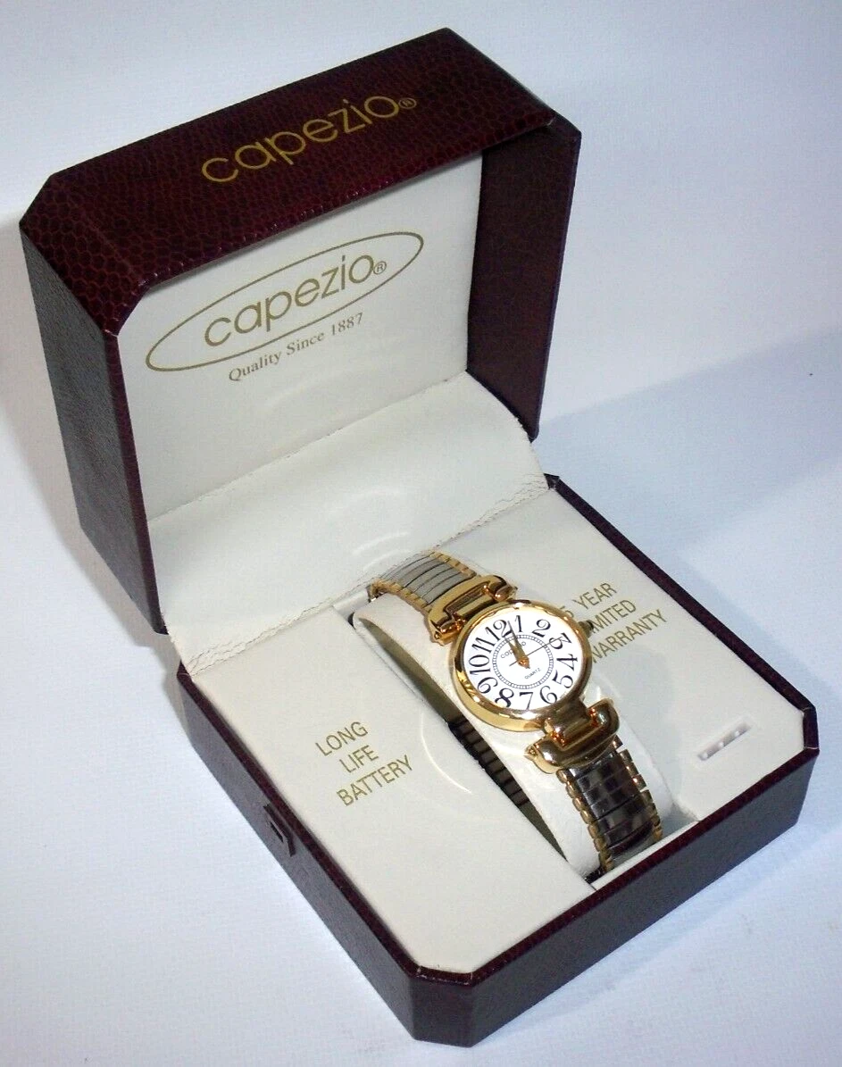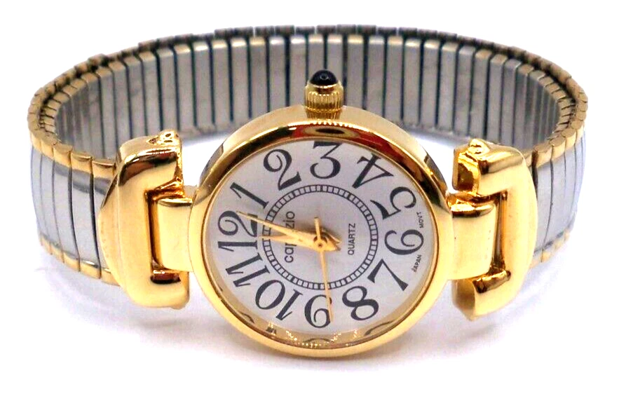 Capezio Ladies Two-Tone "Easy To Read" Quartz Watch Stretch Band New!