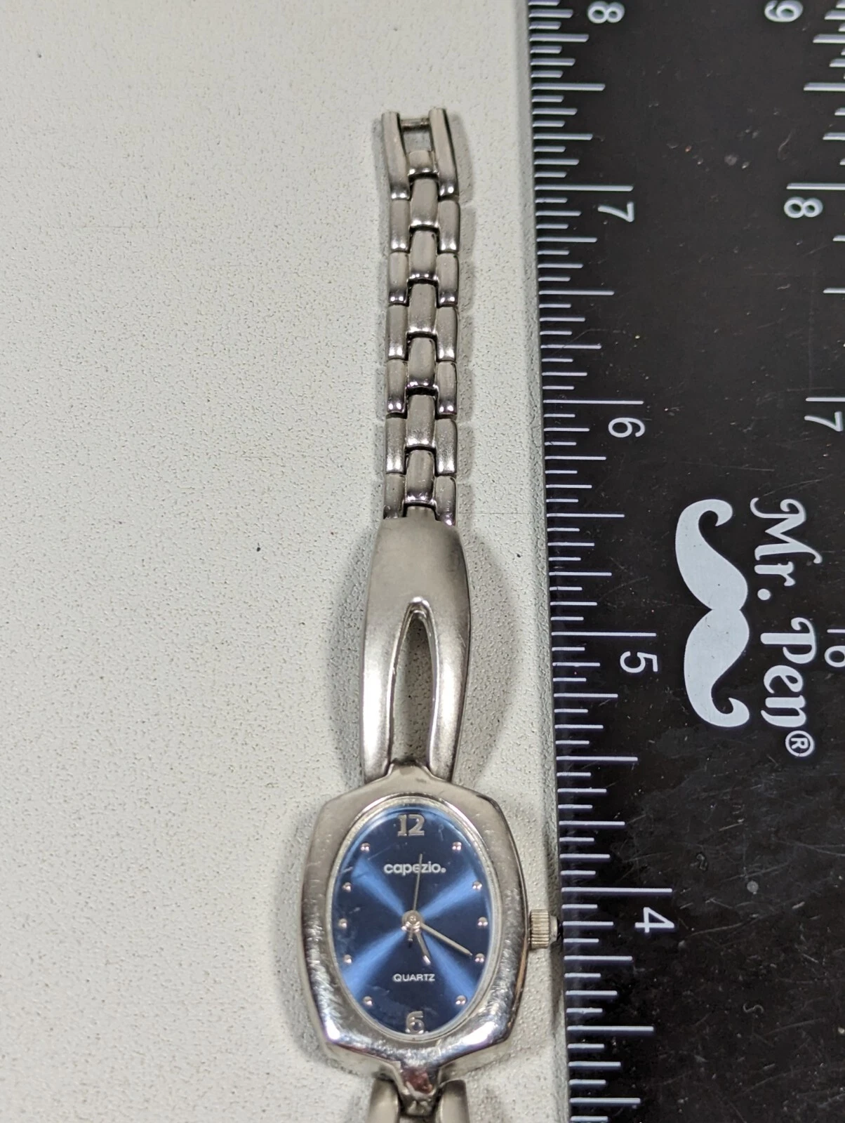 Capezio Blue Dial Silver Tone Rectangle Case Bar Style Bracelet Band Watch