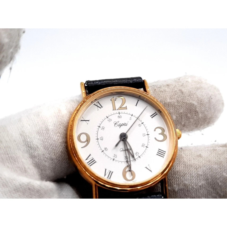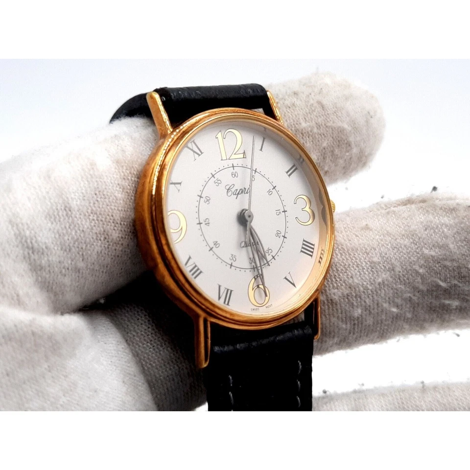Capri Watch Women New Battery 28mm black Leather Band Swiss Movement