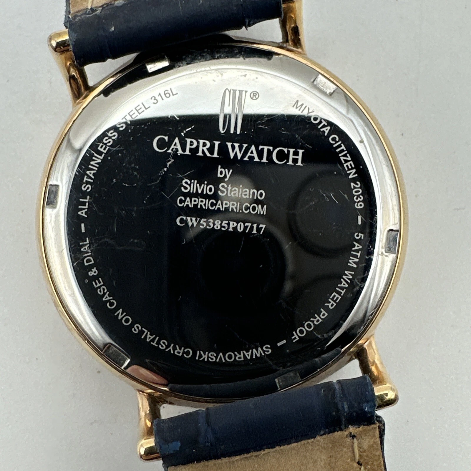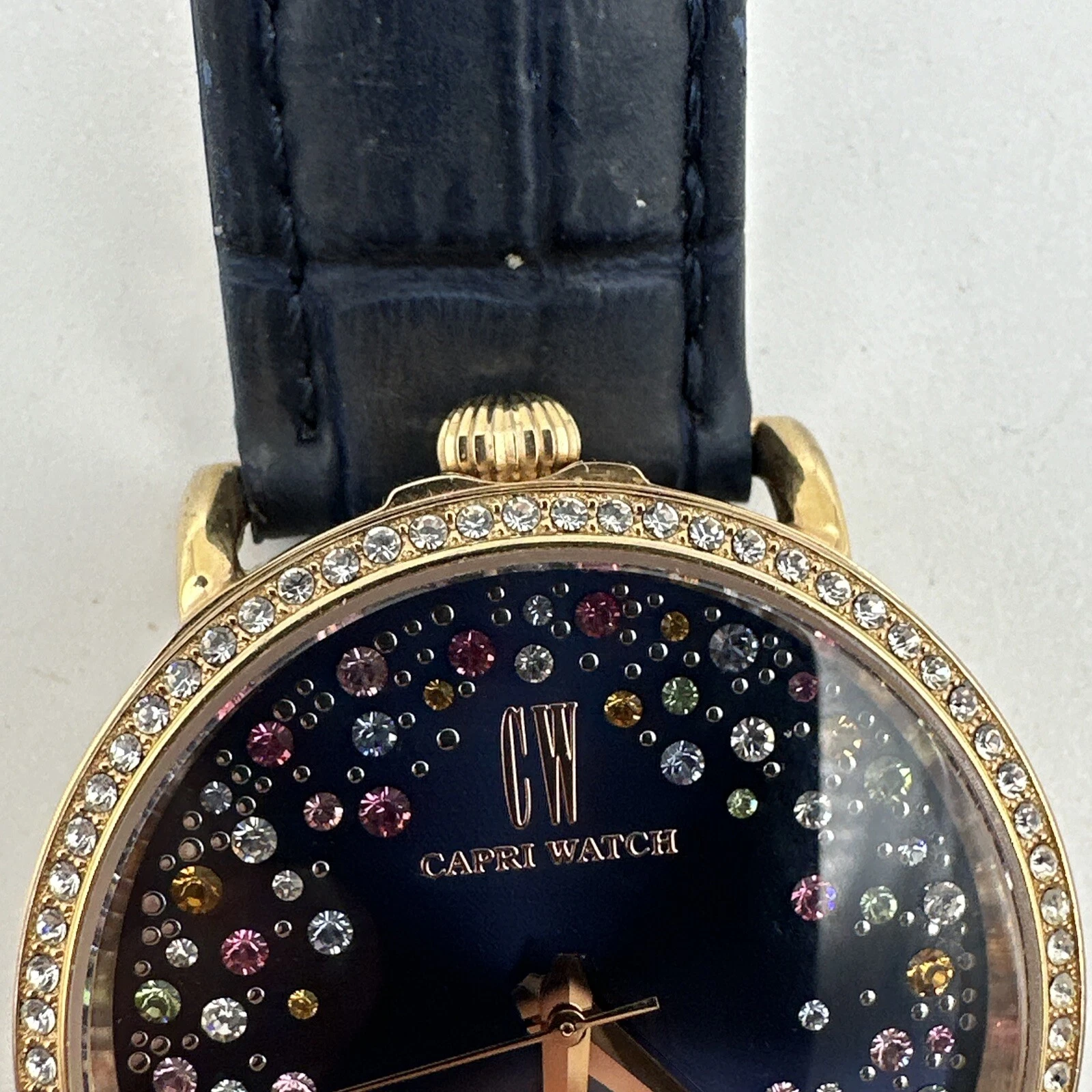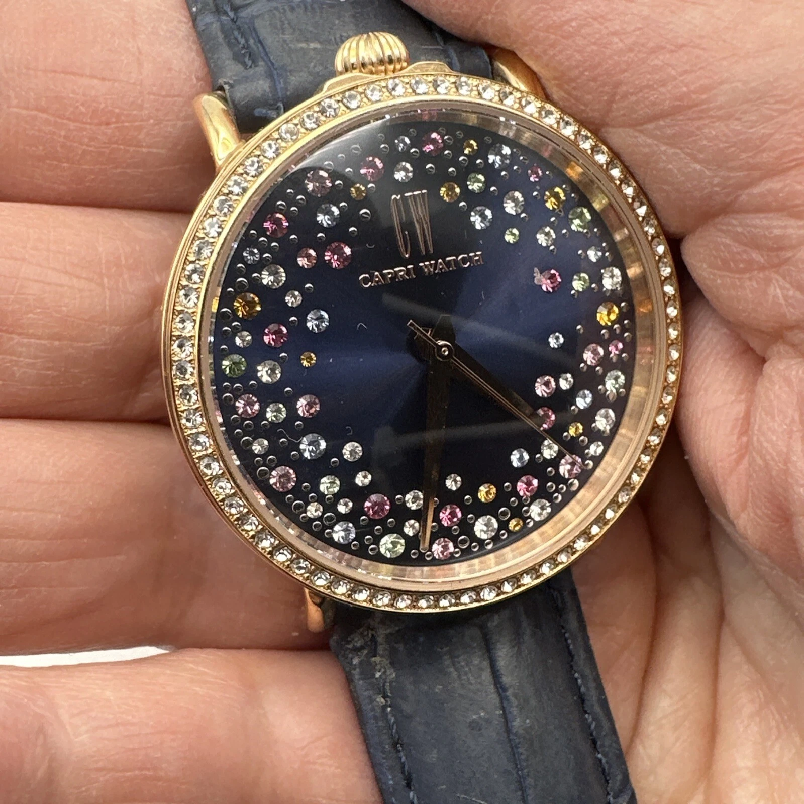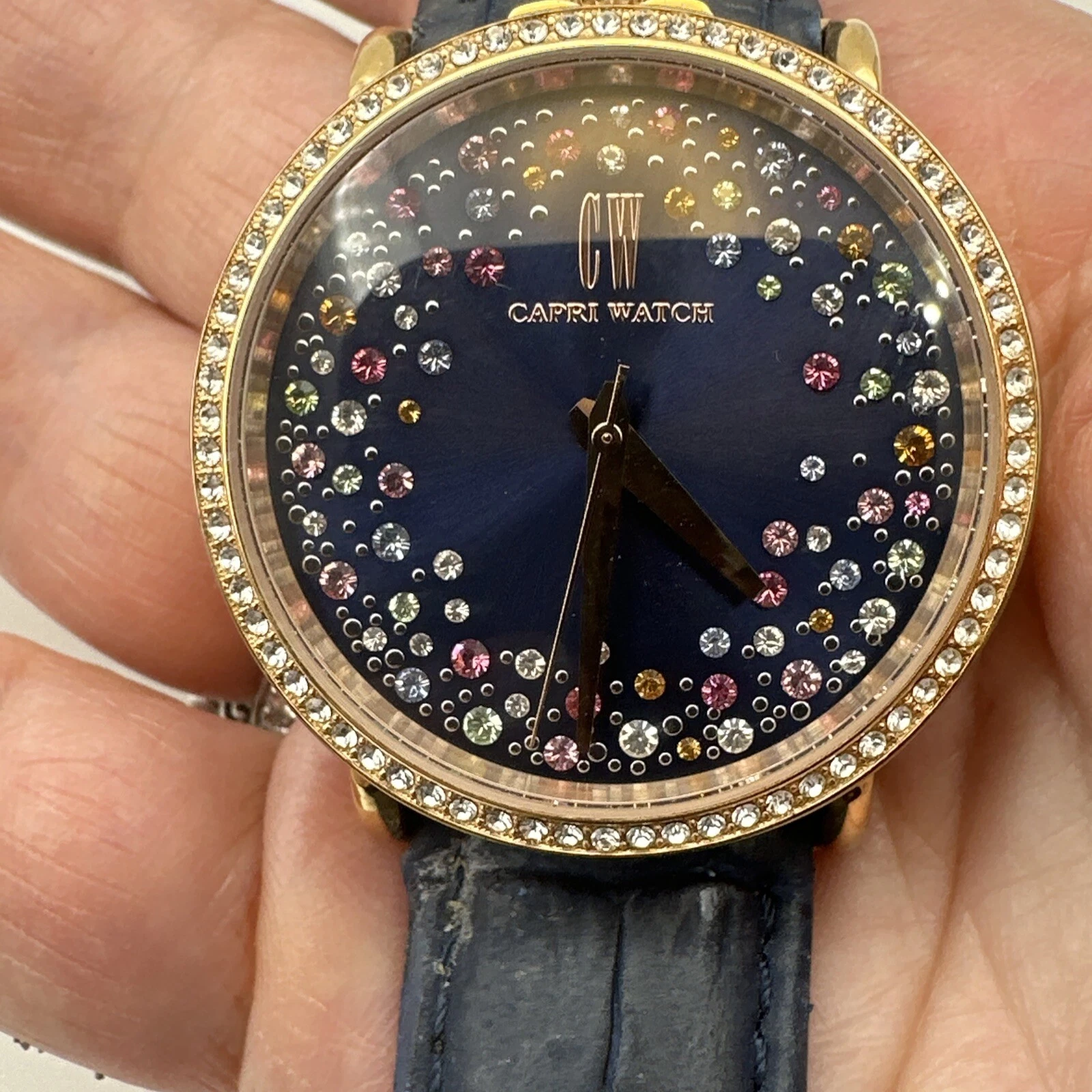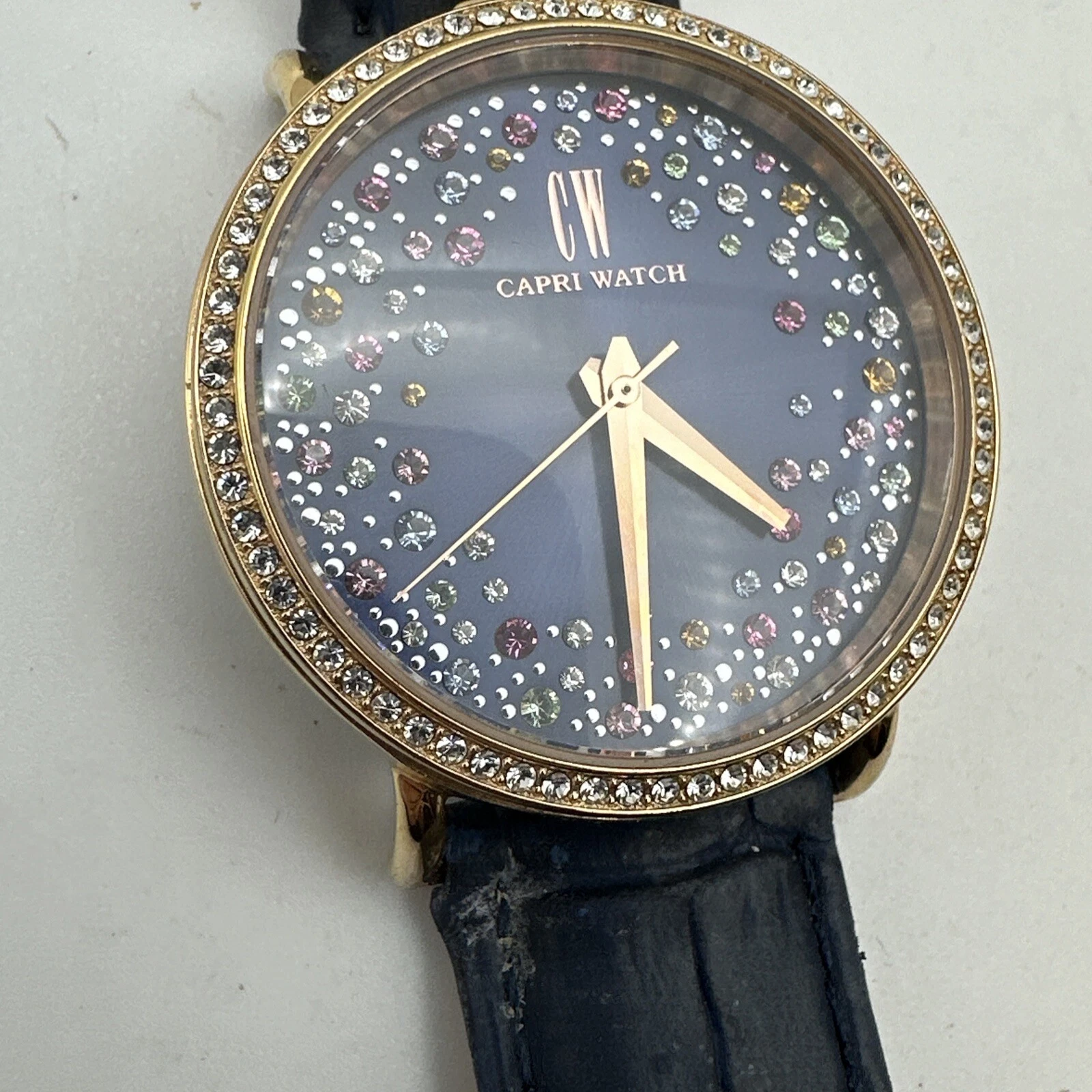 Capri Ladies  Watch 38mm Multicolored Swarovski Crystals Navy Blue Strap Dial