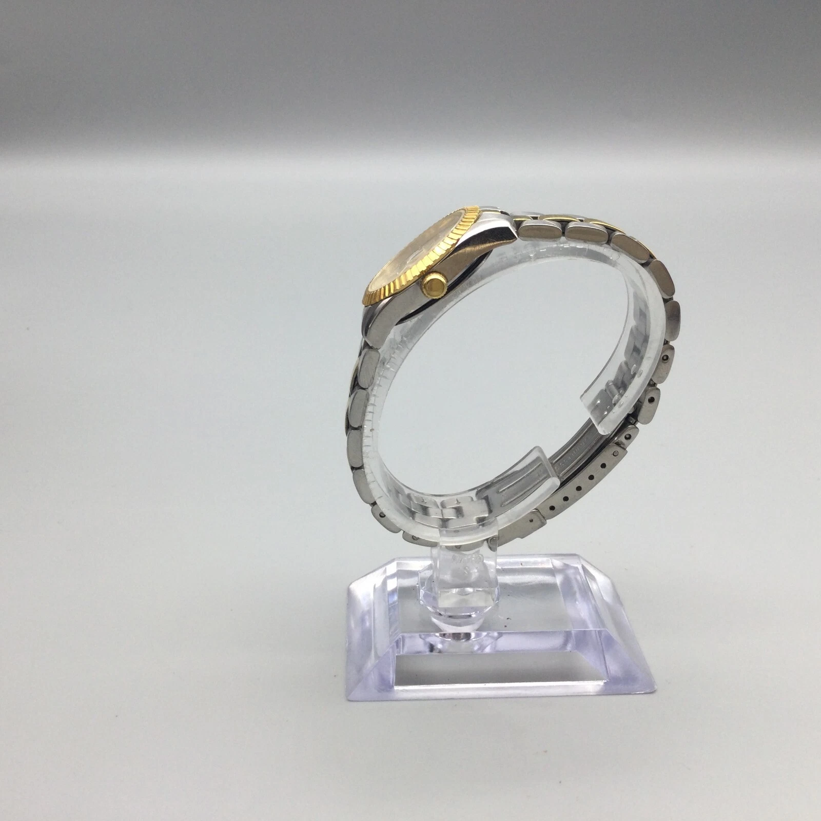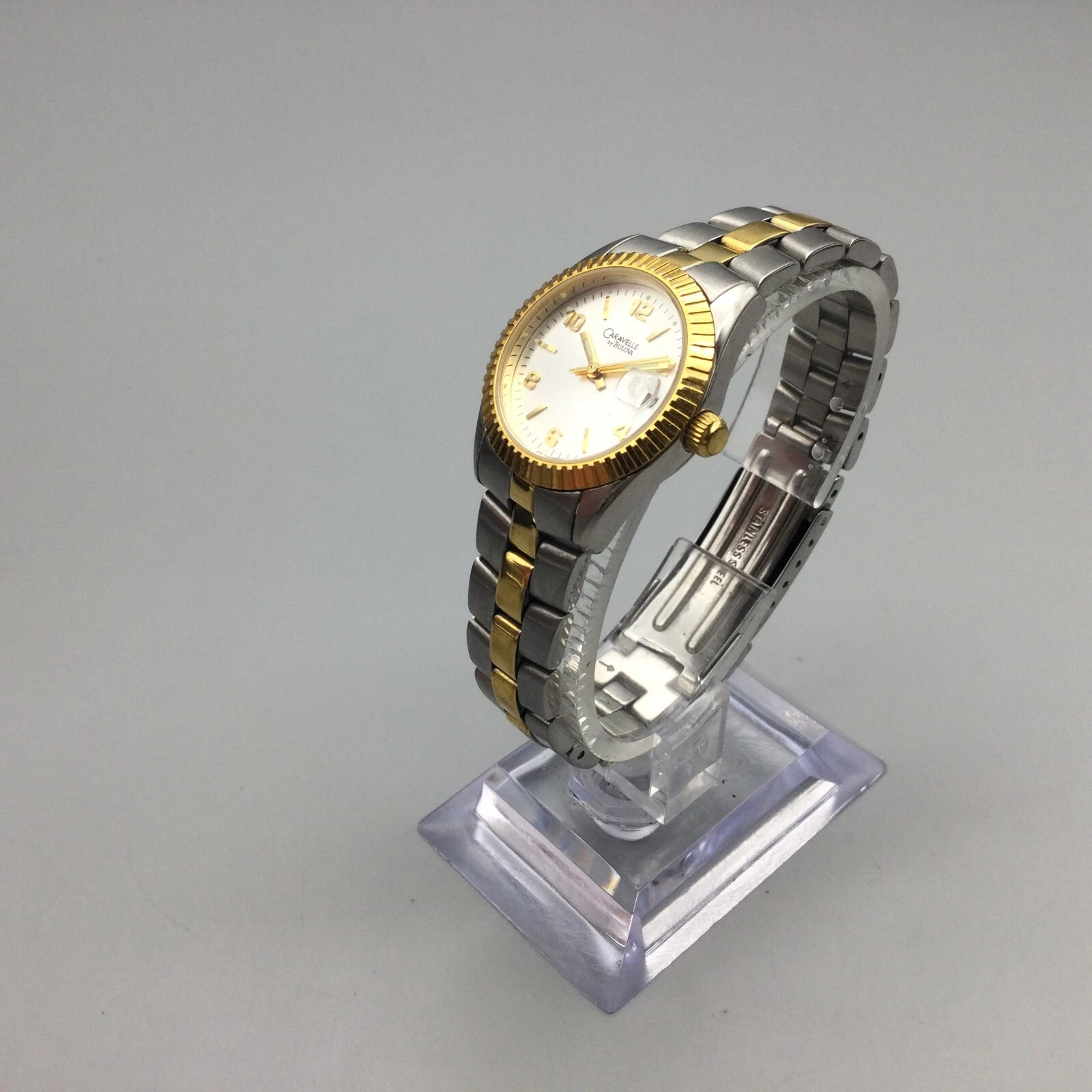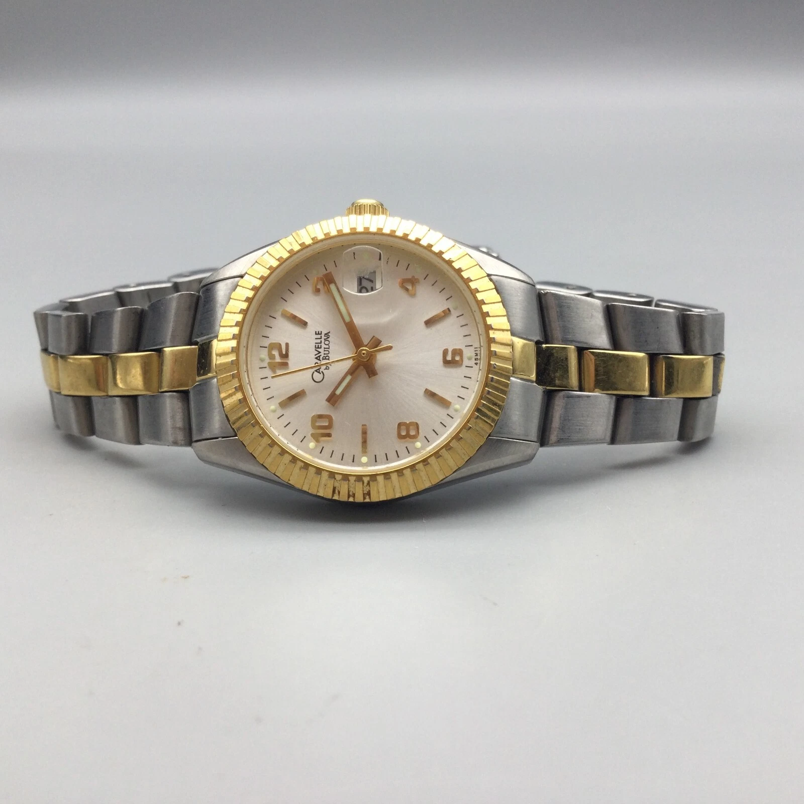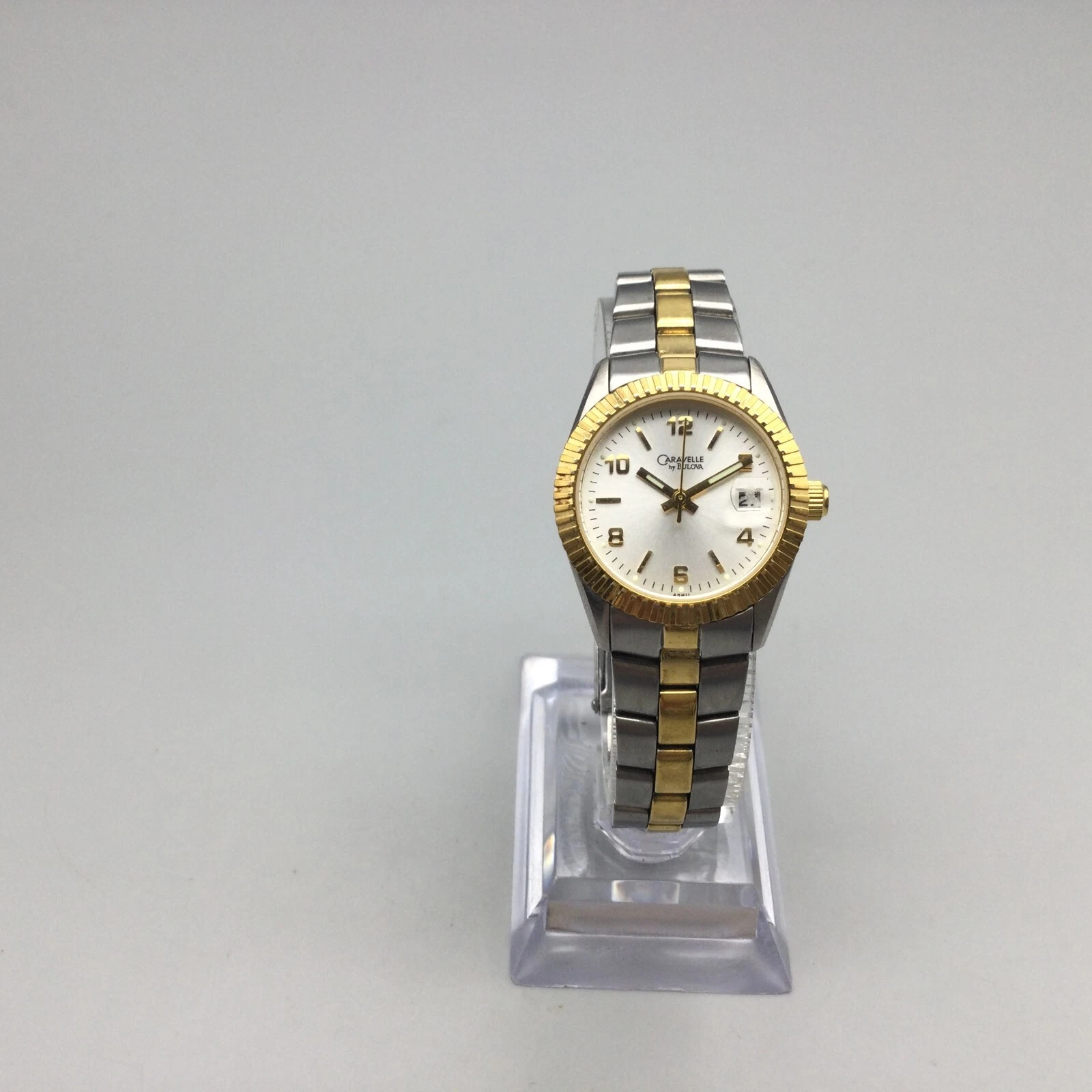 Vtg Caravelle by Bulova Watch Women Gold Silver Tone Date 2004 New Battery 6.25"