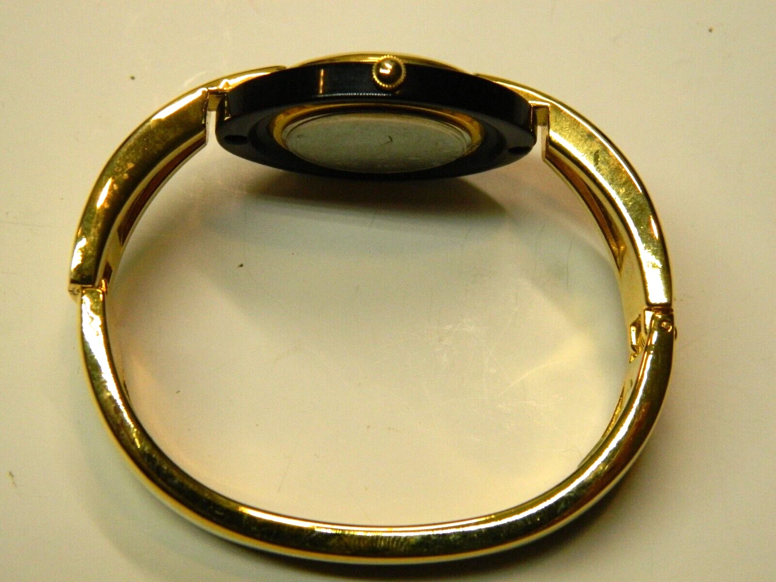 VERY NICE BLACK Lady's cuff/Bangle watch/wristwatch CARDINI GOLD tone MOP face