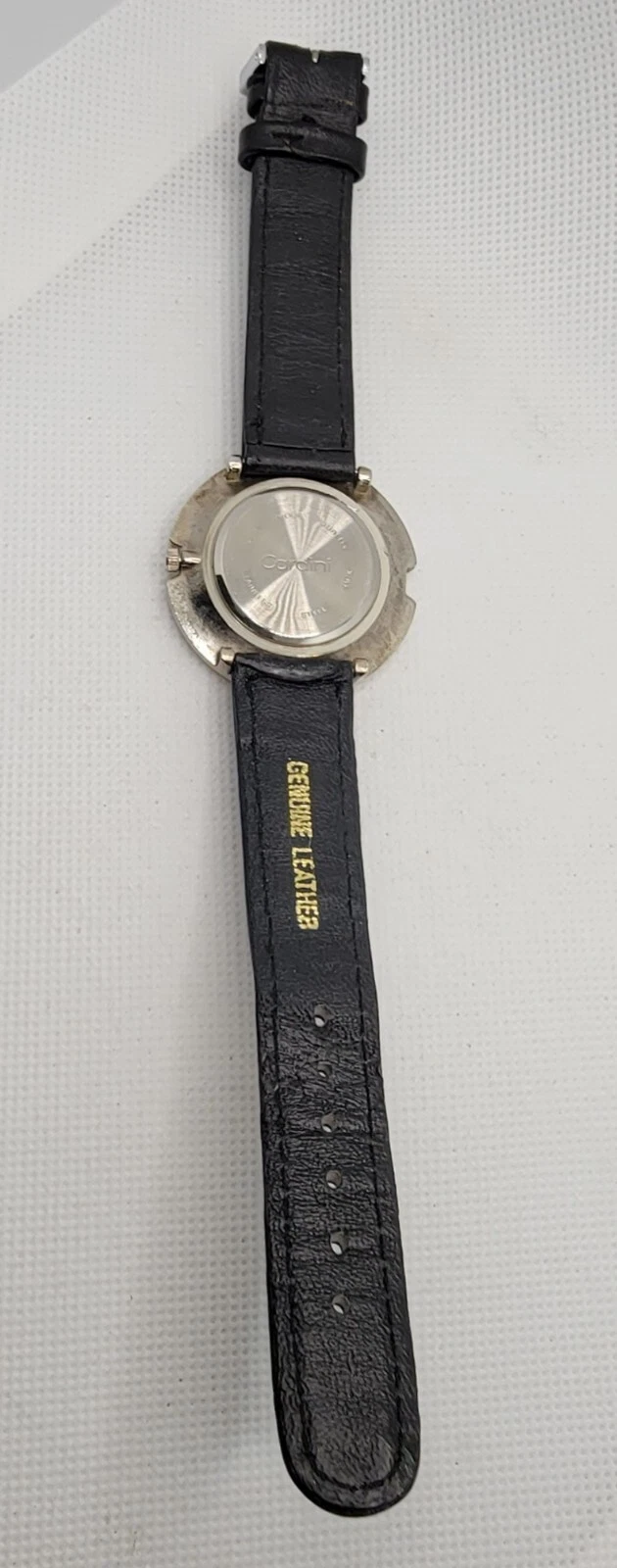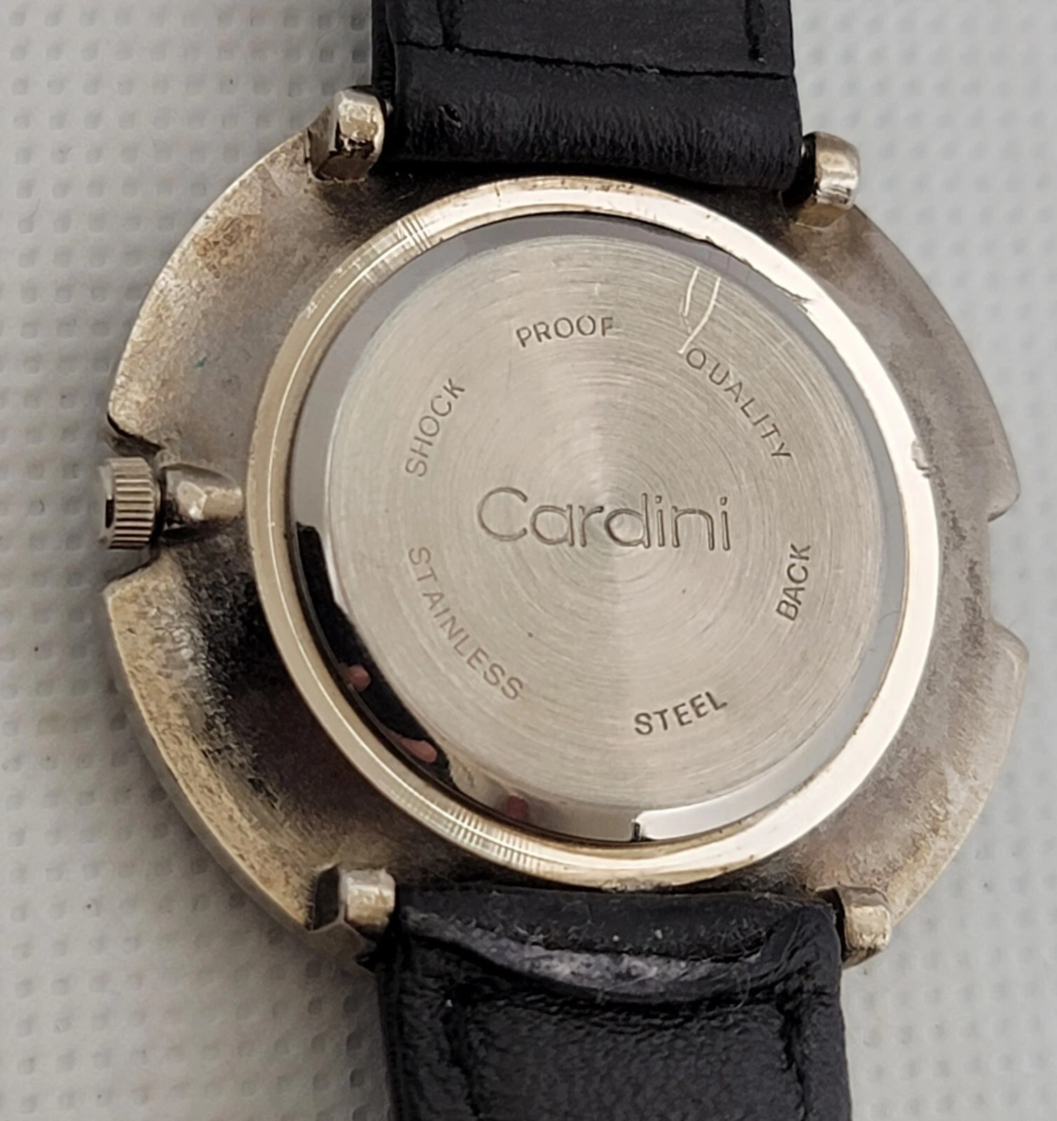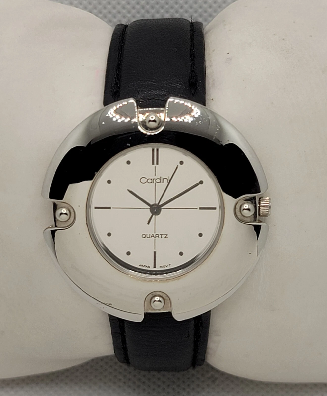 Ladies Cardini Elegant Silve Tone Case Mirror Dial Black Leather Watch J3