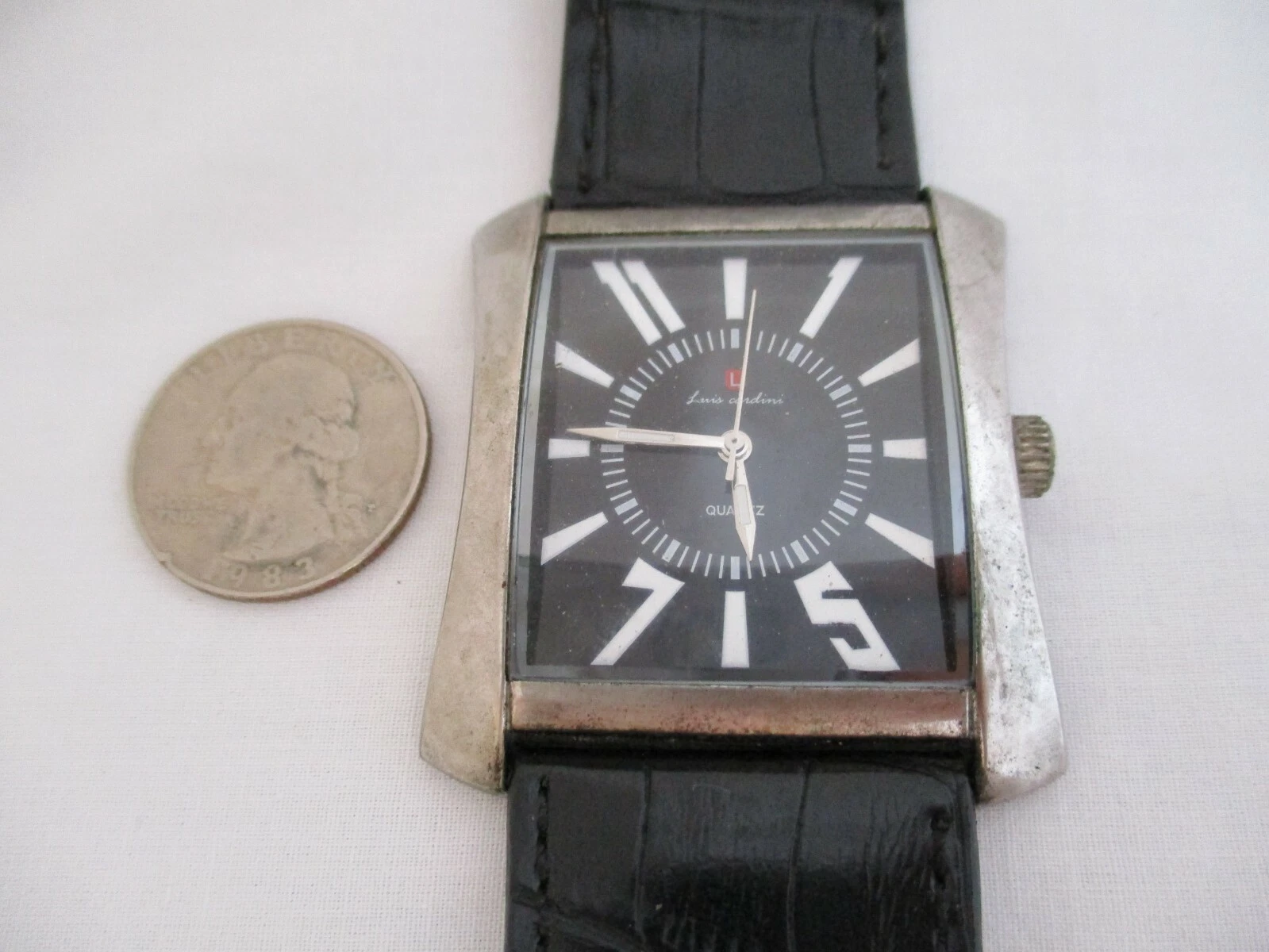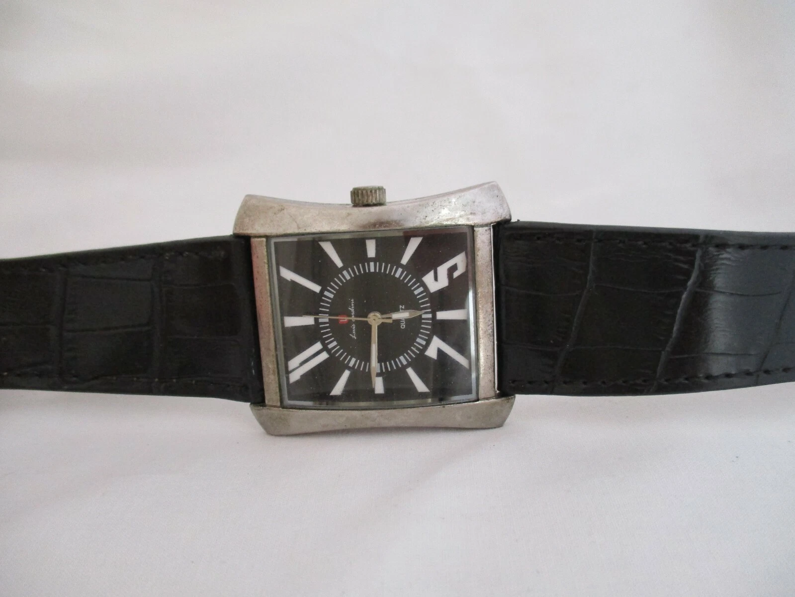 Luis Cardini Men's Black Buckle Band Analog Watch
