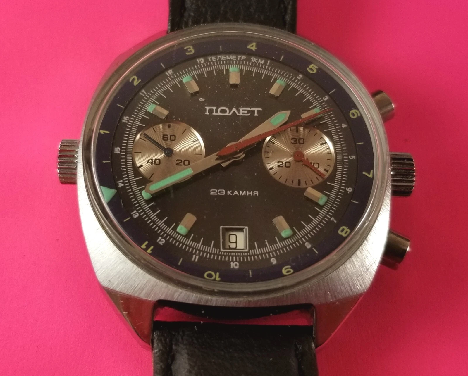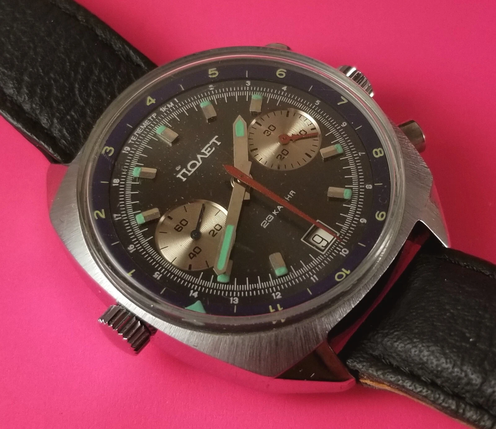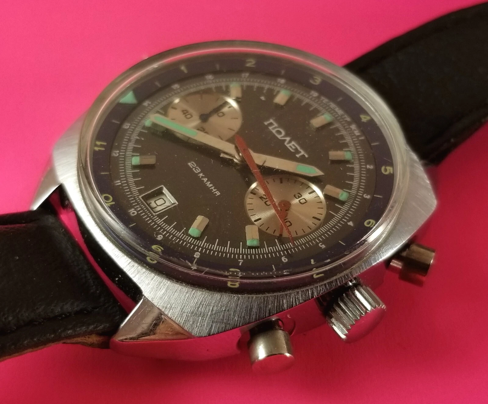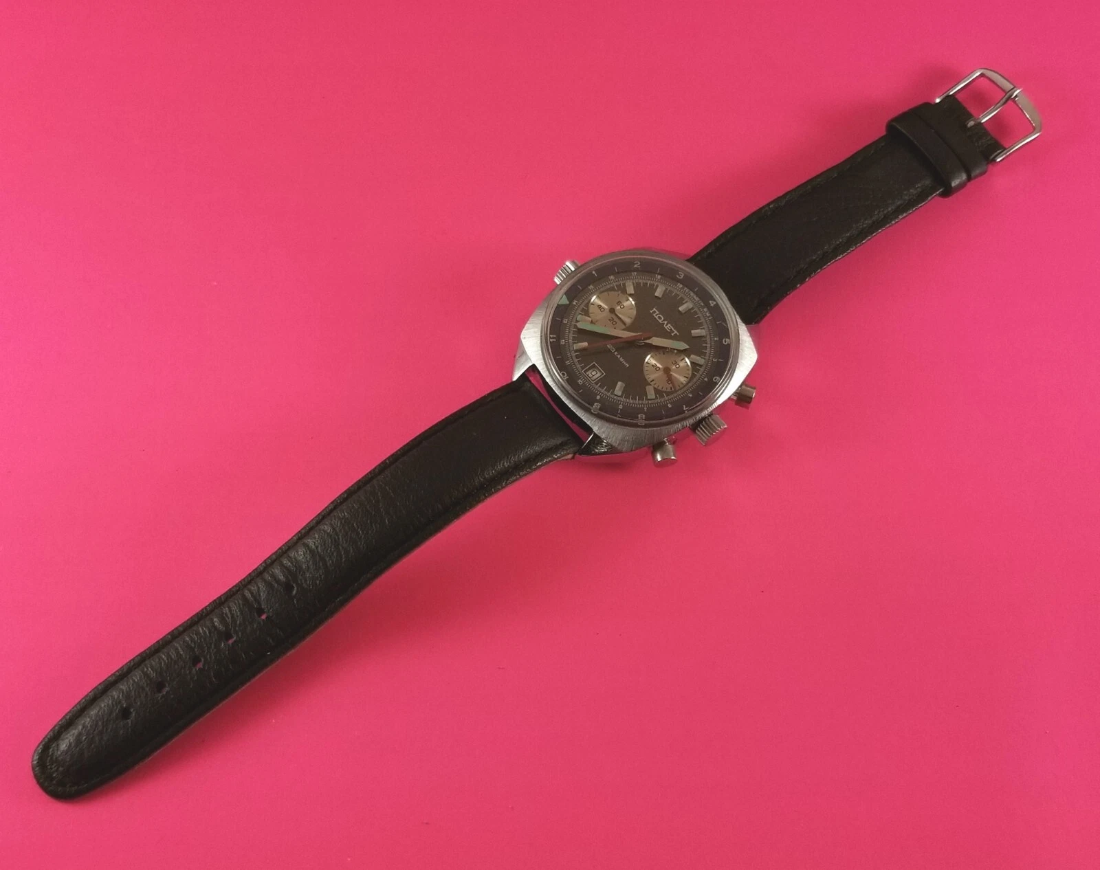 Vintage POLJOT Men's Russia Wrist Watch Chronograph 25 Jewels Wind-Up