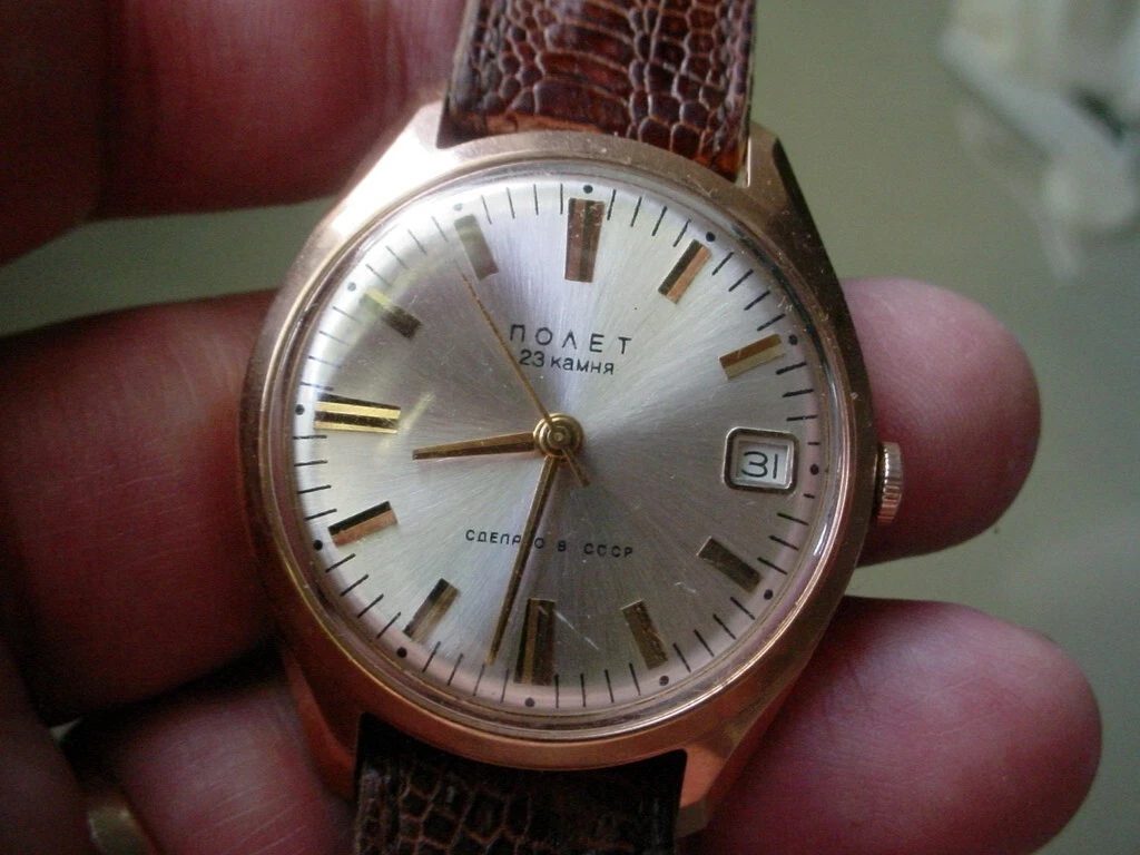 Rare Vintage 14K Pink Gold Poljot, 23 Jewels Auto. USSR Made. UNPOLISHED 36mm