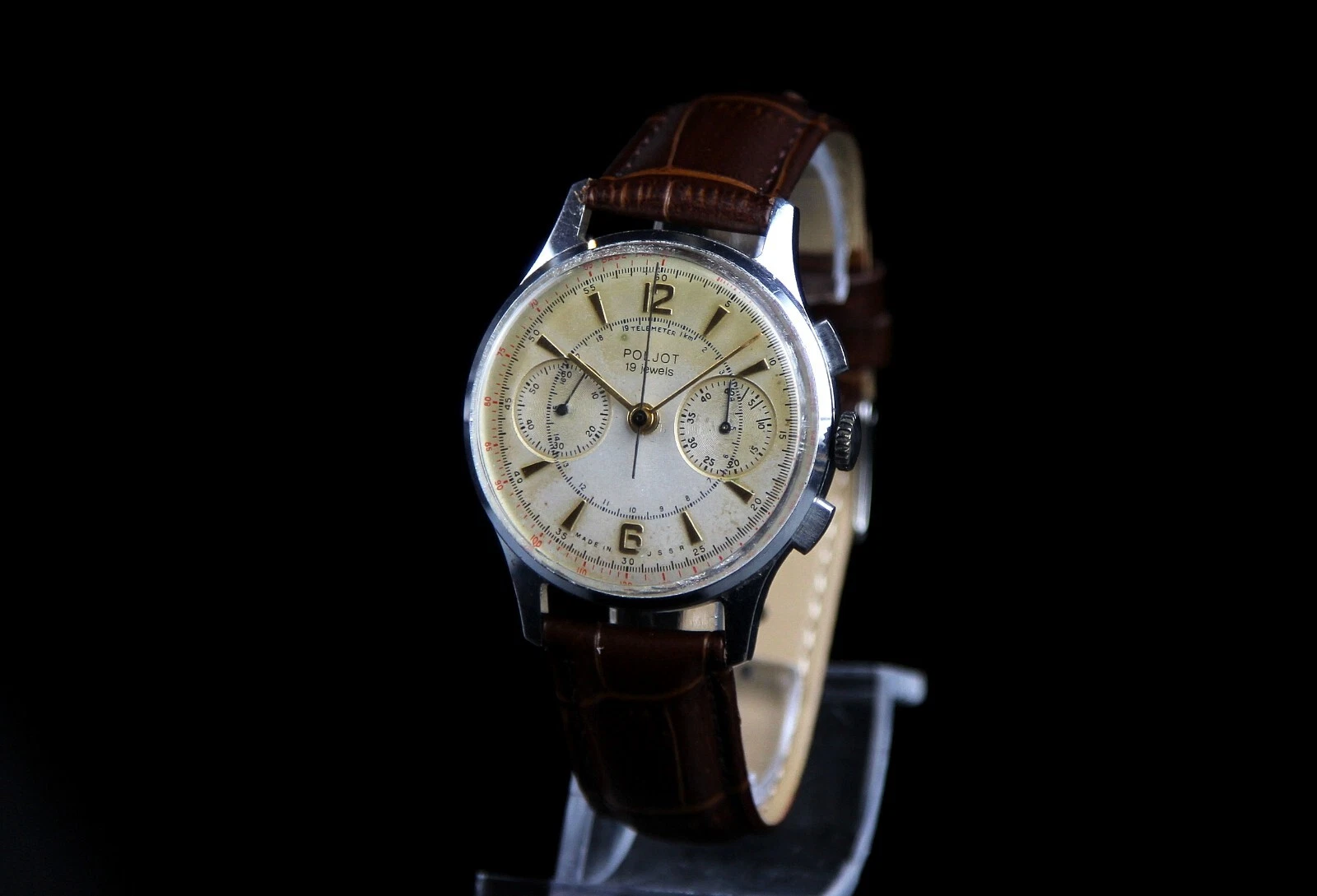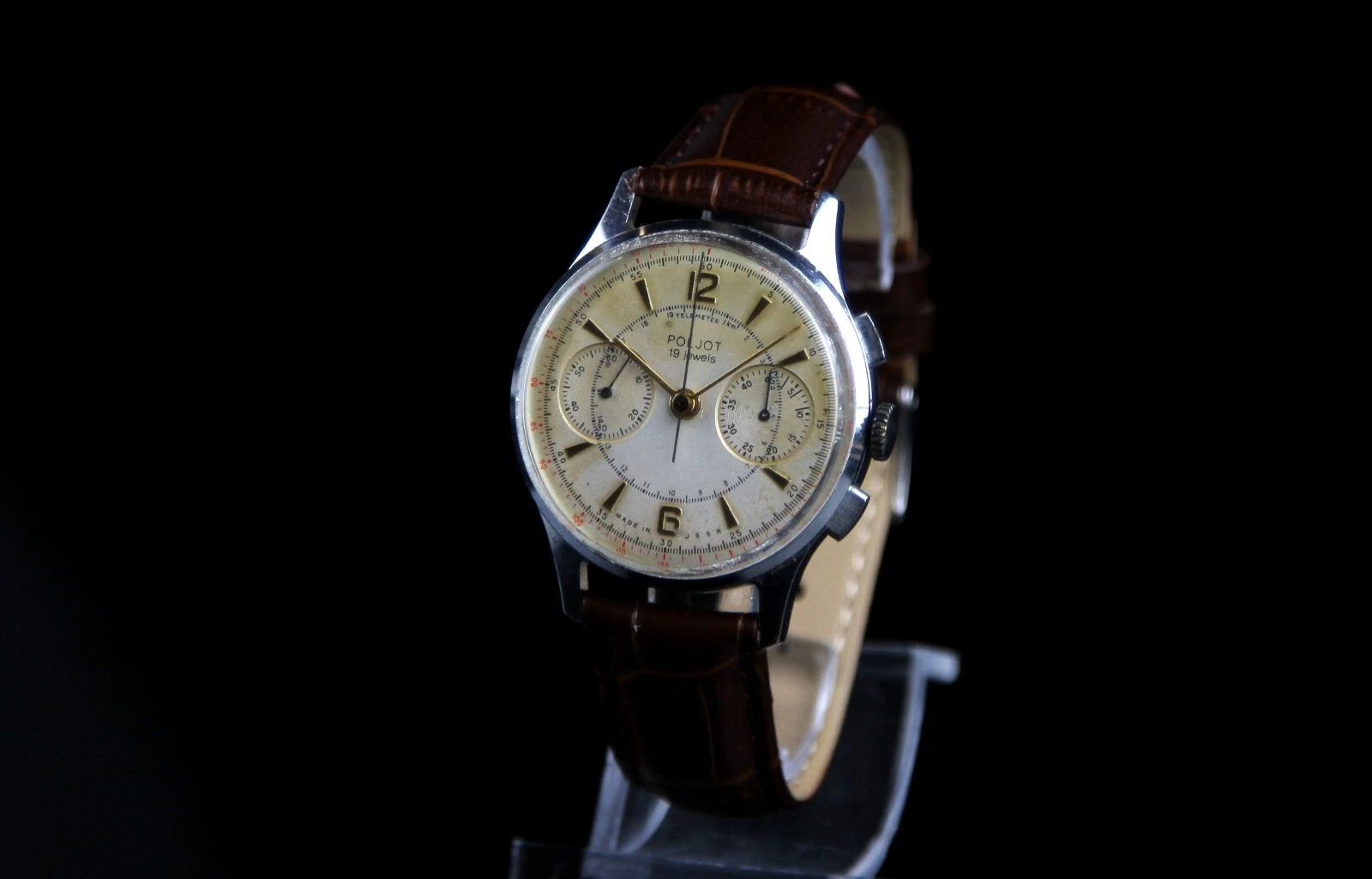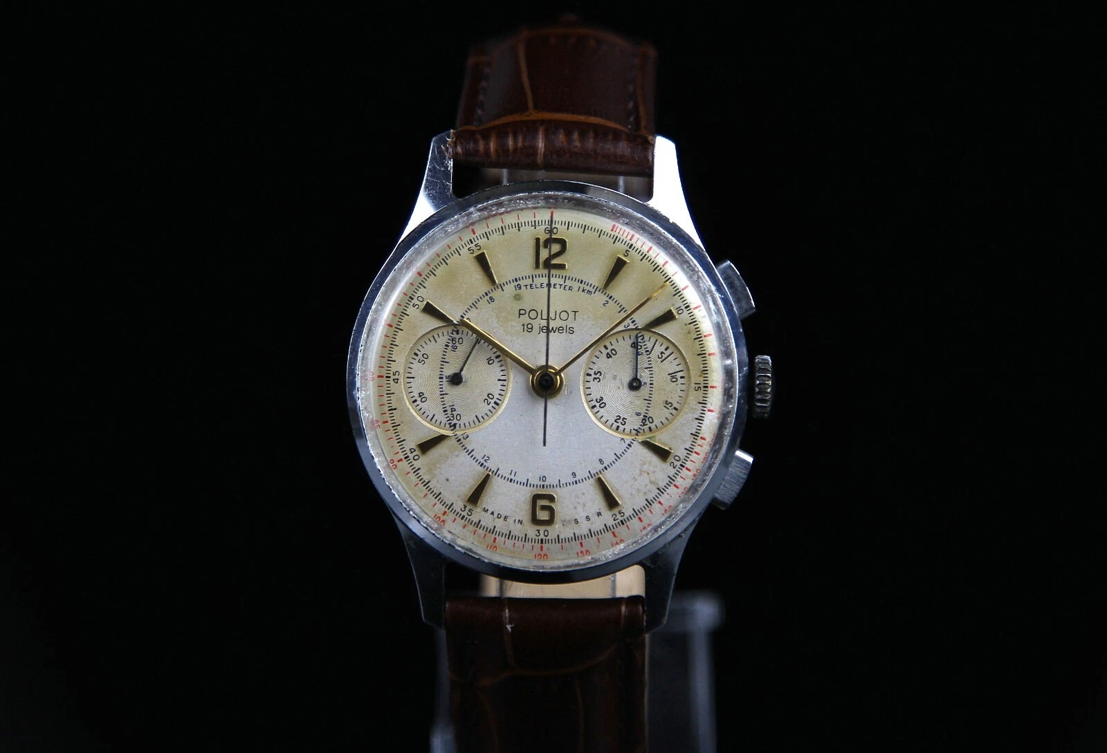 Soviet vintage men's mechanical wristwatch Chronograph POLJOT (1 MCHZ Kirov)
