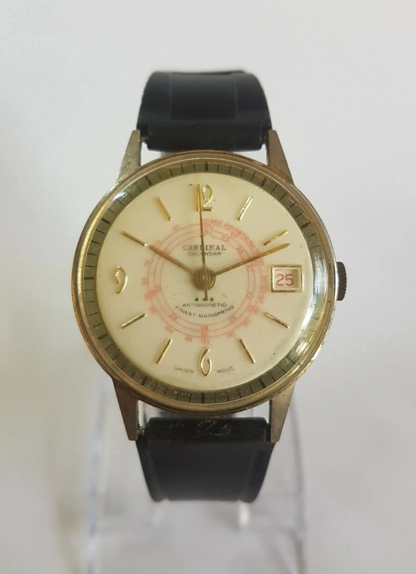 Beautiful Vintage Cardinal Calendar Antimagnetic Finest Mainspring Men's Watch