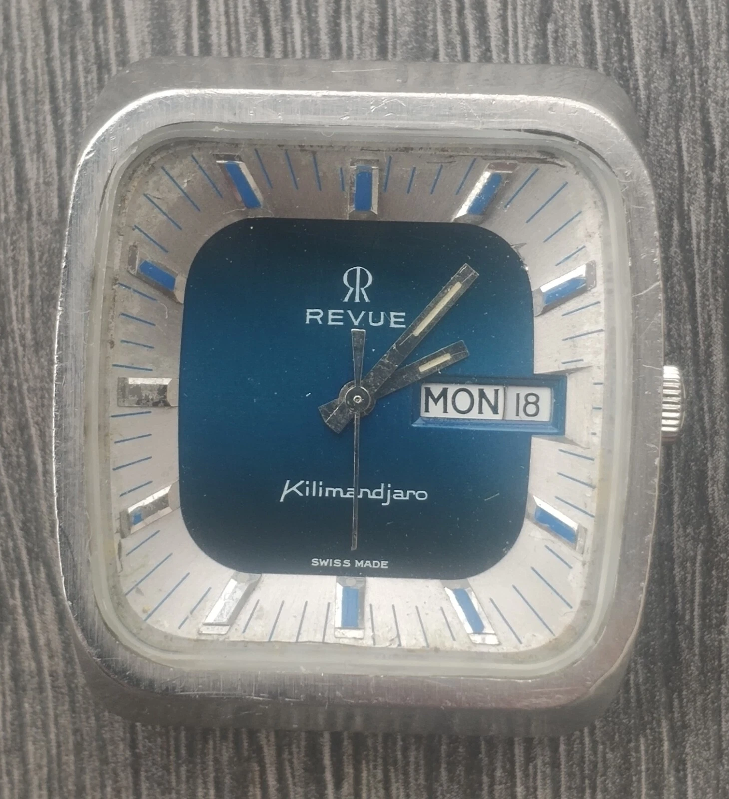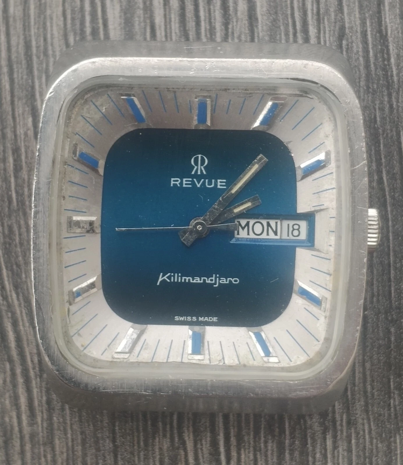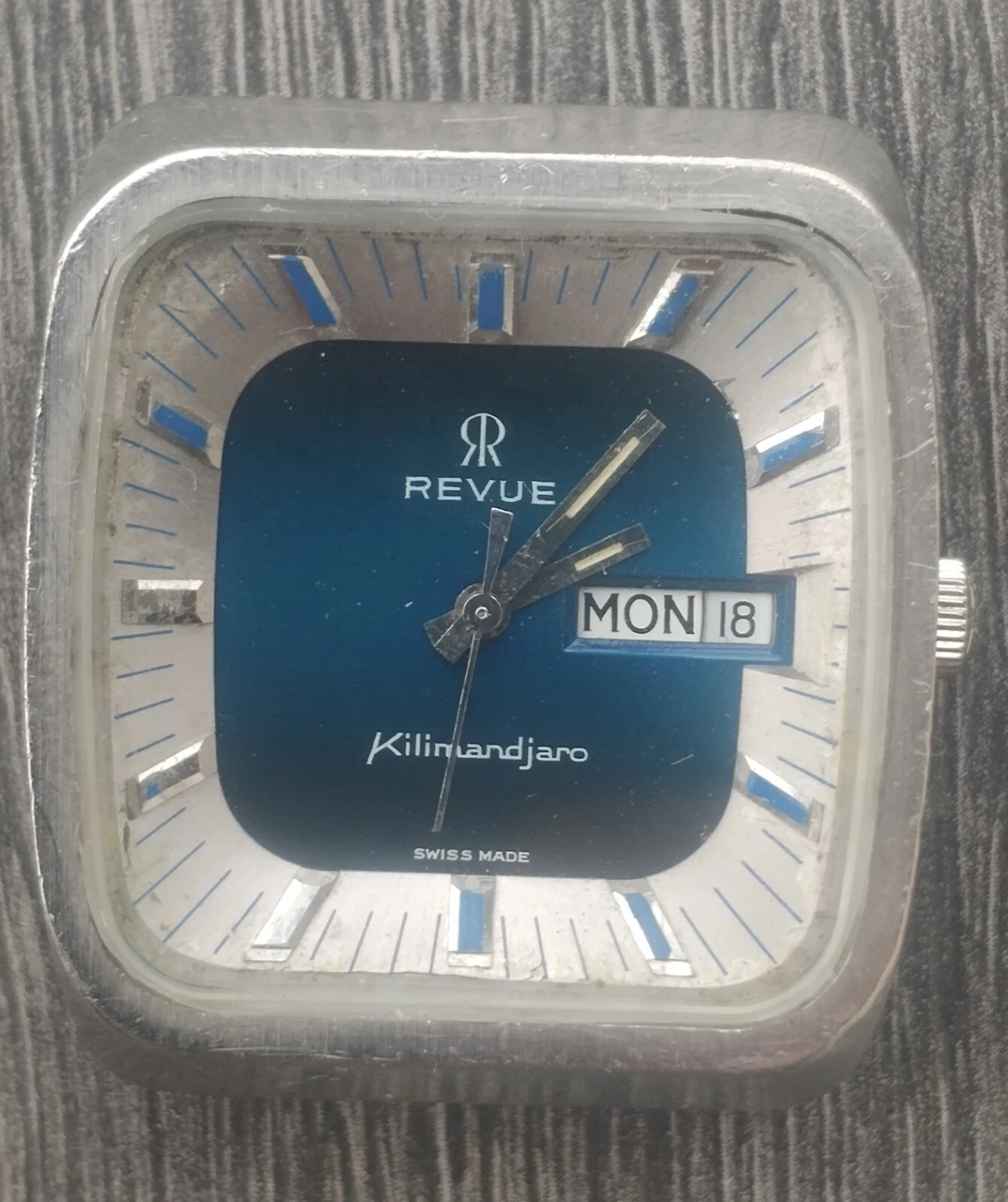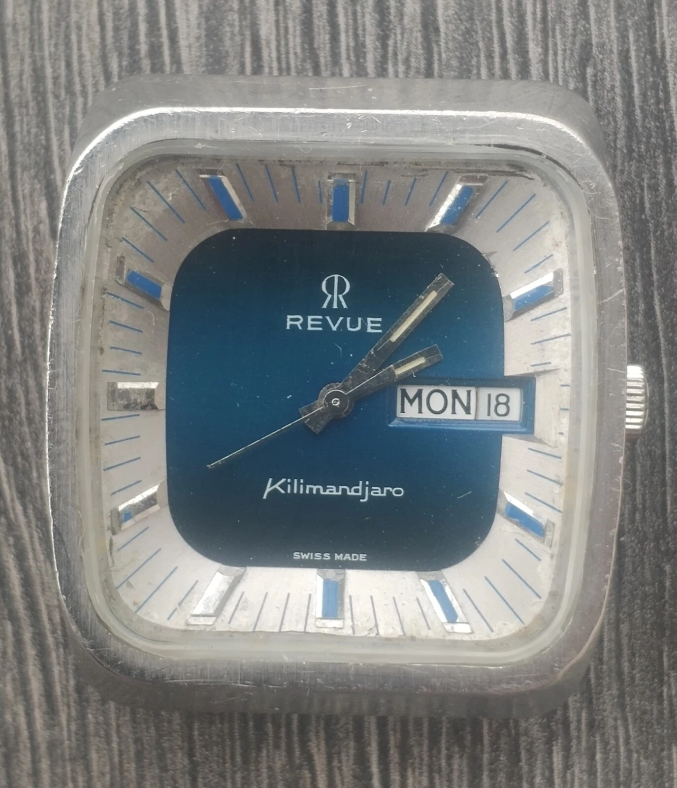 Vintage men's Revue Kilimandjaro automatic watch blue dial MSR 377