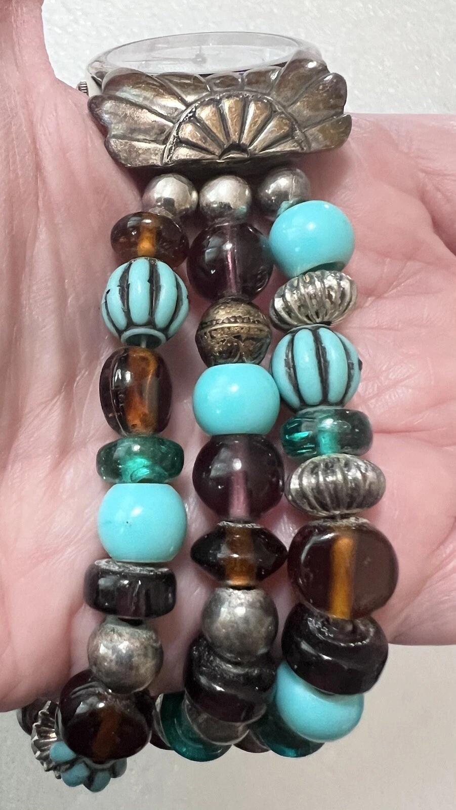 Carolyn Pollack Southwest Tradition Watch 3 Strand Bead Sterling Silver Bracelet